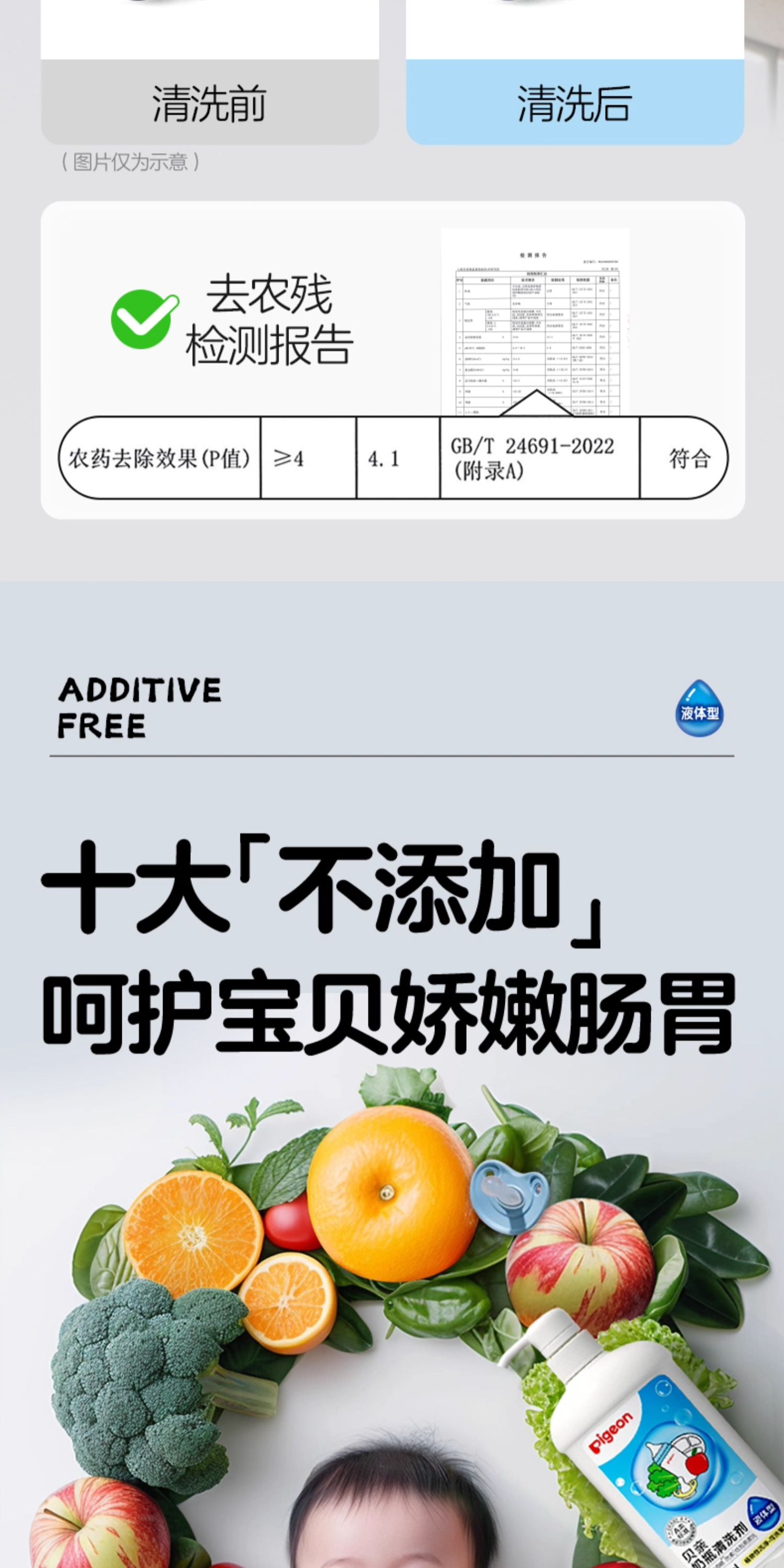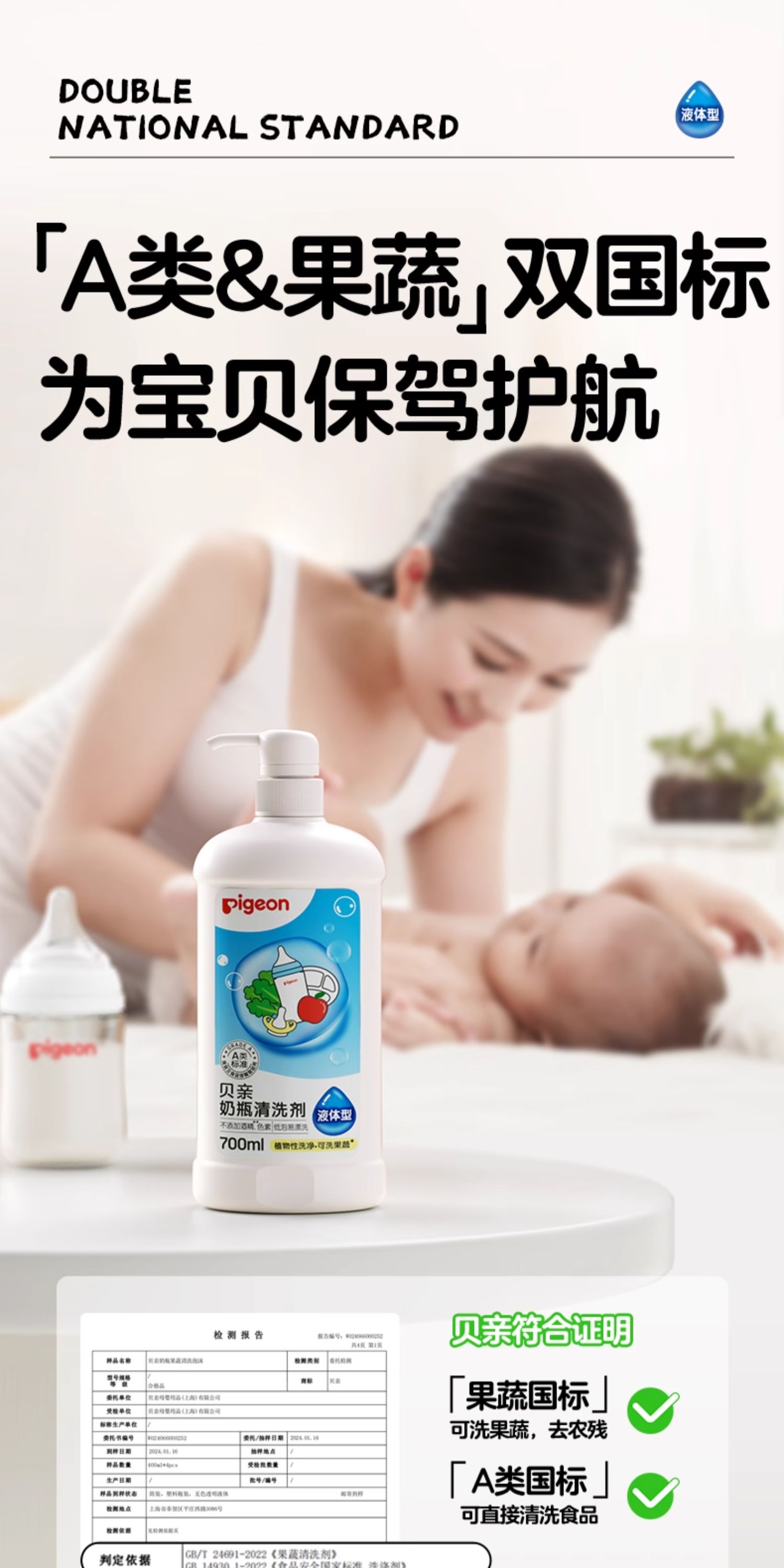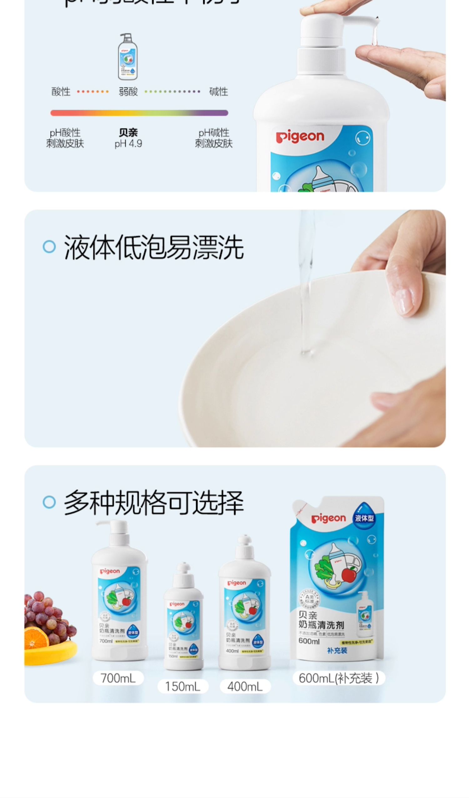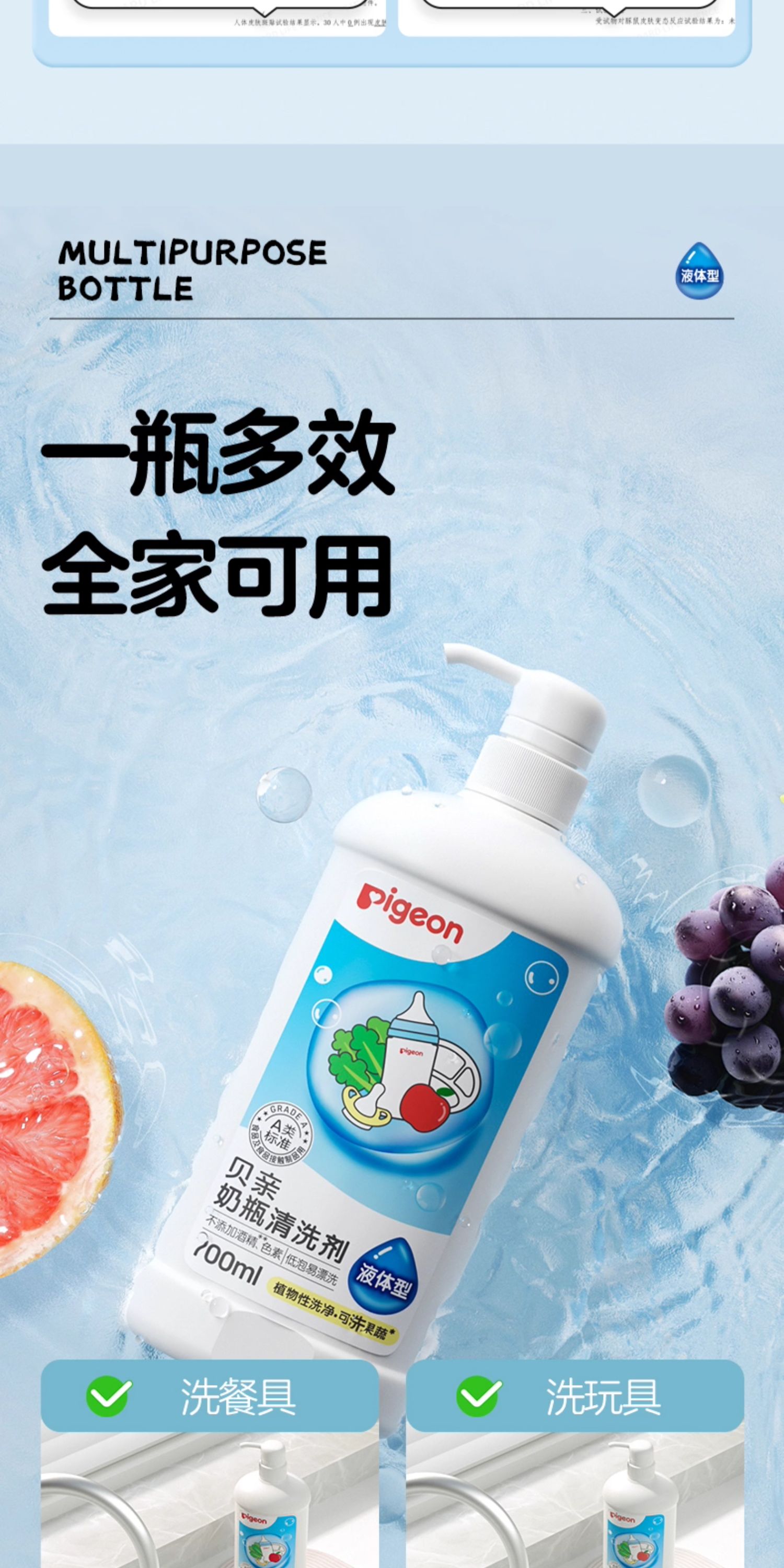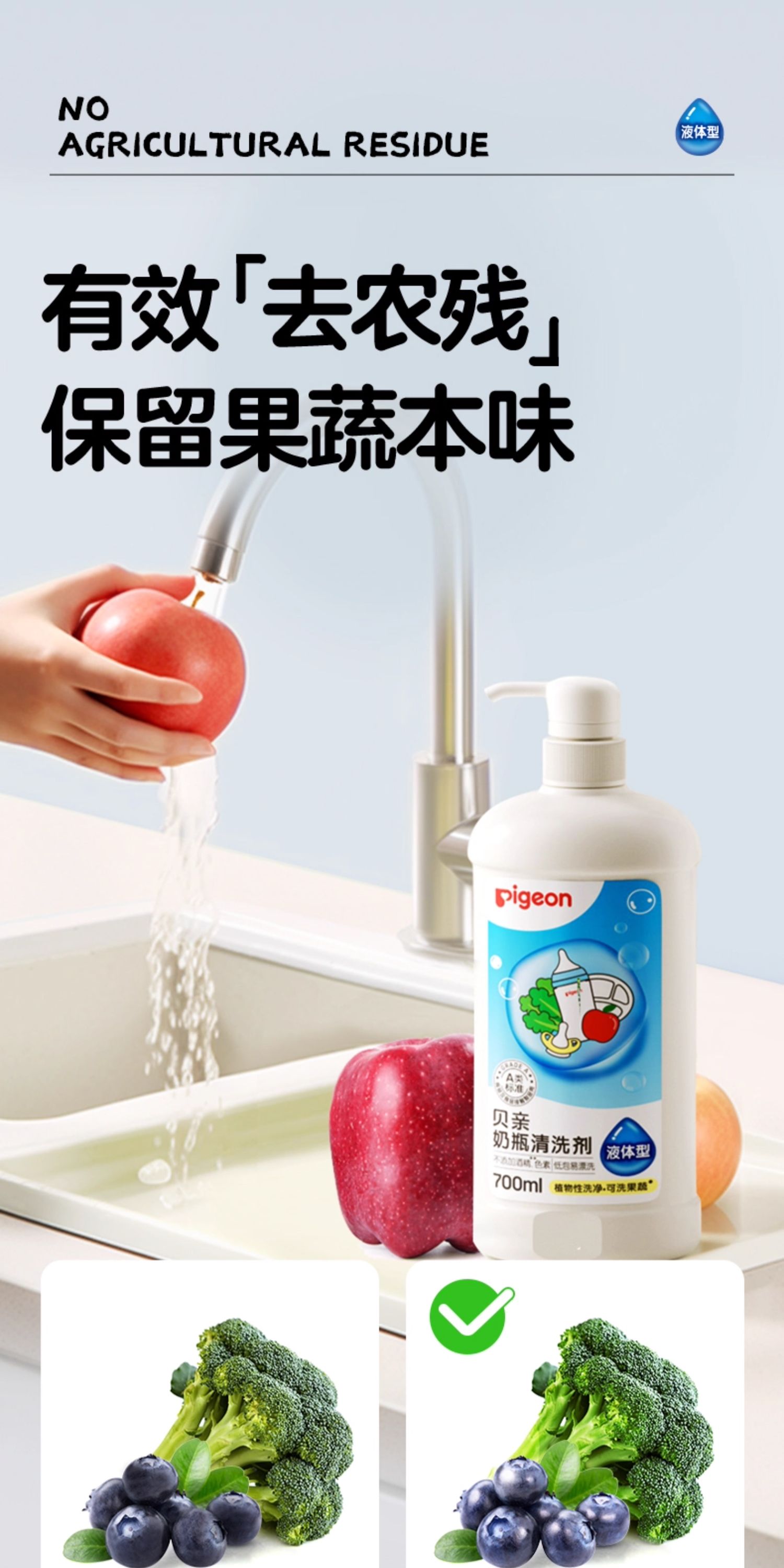 【奶洗&奶瓶刷】PIGEON/贝亲奶瓶清洗剂1.3L+奶瓶奶嘴刷3件套