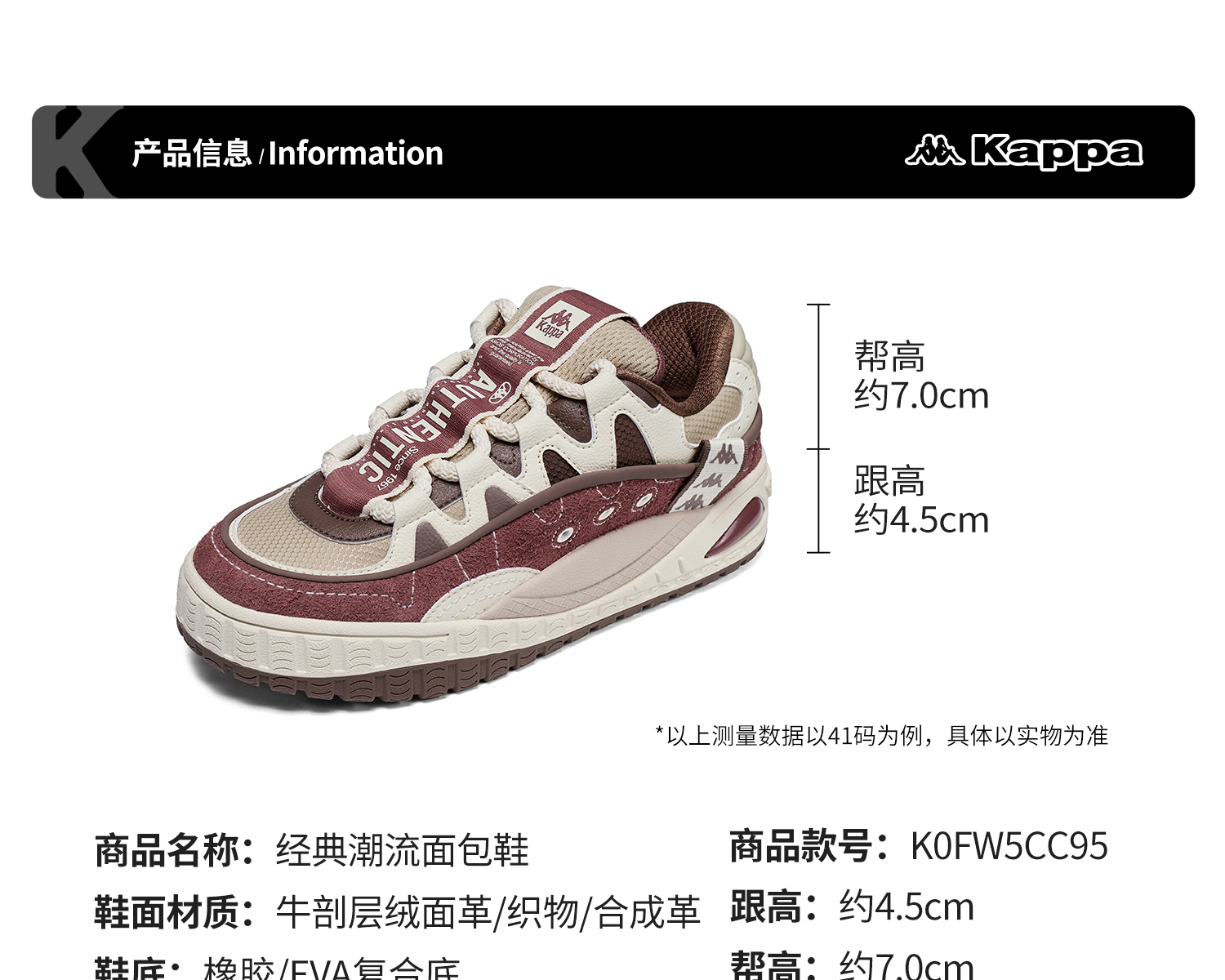Kappa卡帕面包鞋厚底板鞋2024新款秋冬复古休闲百搭运动鞋情侣鞋K0FW5CC95