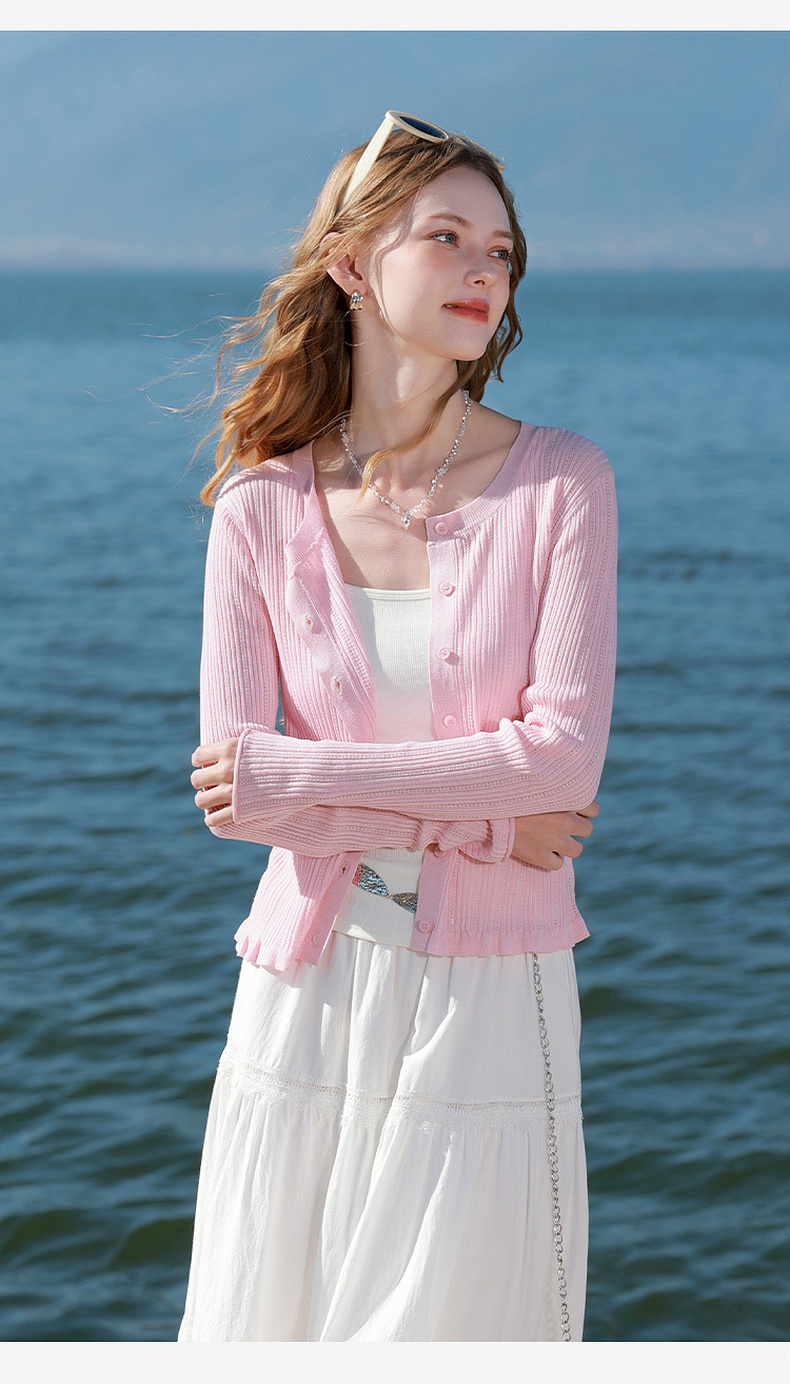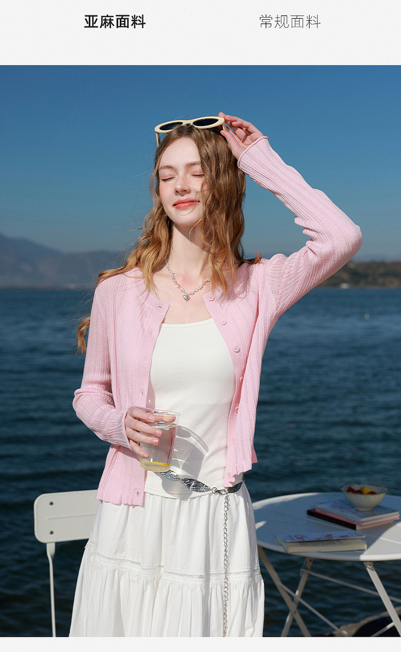 【莱赛尔亚麻】三彩2026春季新款修身针织衫短外套开衫空调衫M