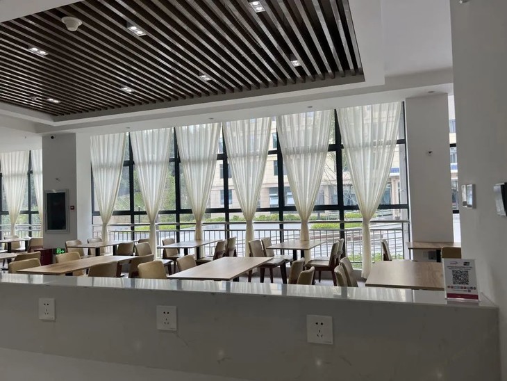 基地一楼设有餐厅,订房默认含早餐。餐厅空间宽敞,可容纳近 200 人同时用餐,能满足旅居期间的用餐需求 。