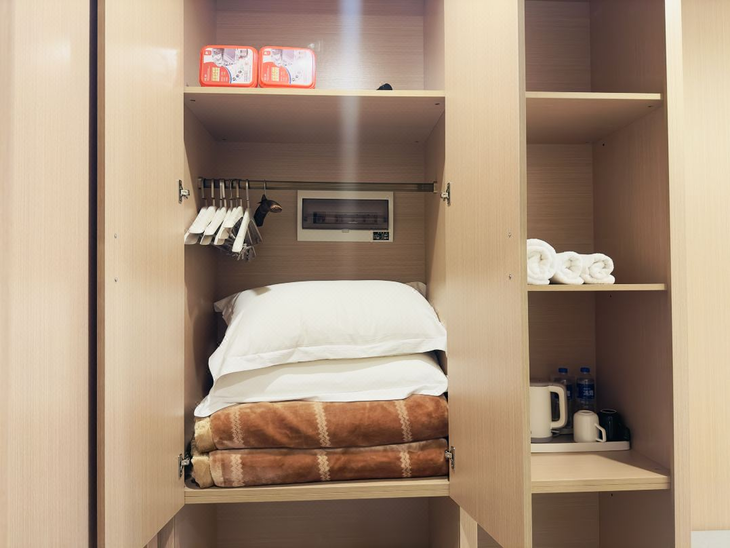 房间配套丰富又贴心,衣柜、床头柜收纳日常,书桌椅方便办公休憩,中央空调 + 挂式空调双保障,液晶电视添乐趣,电热水壶随时供应热水 。