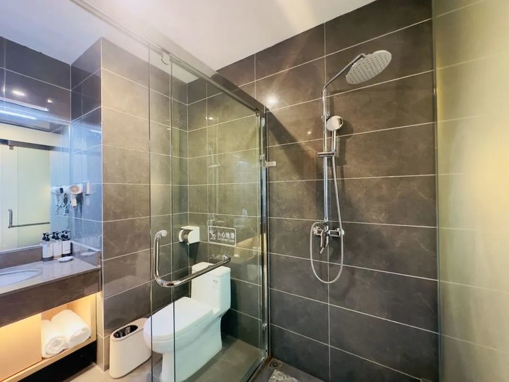 24 小时热水随时畅享,淋浴区与洗漱区干湿分离,抽水马桶洁净实用,吹风机、毛巾、拖鞋等用品一应俱全,细致满足旅居日常所需 。