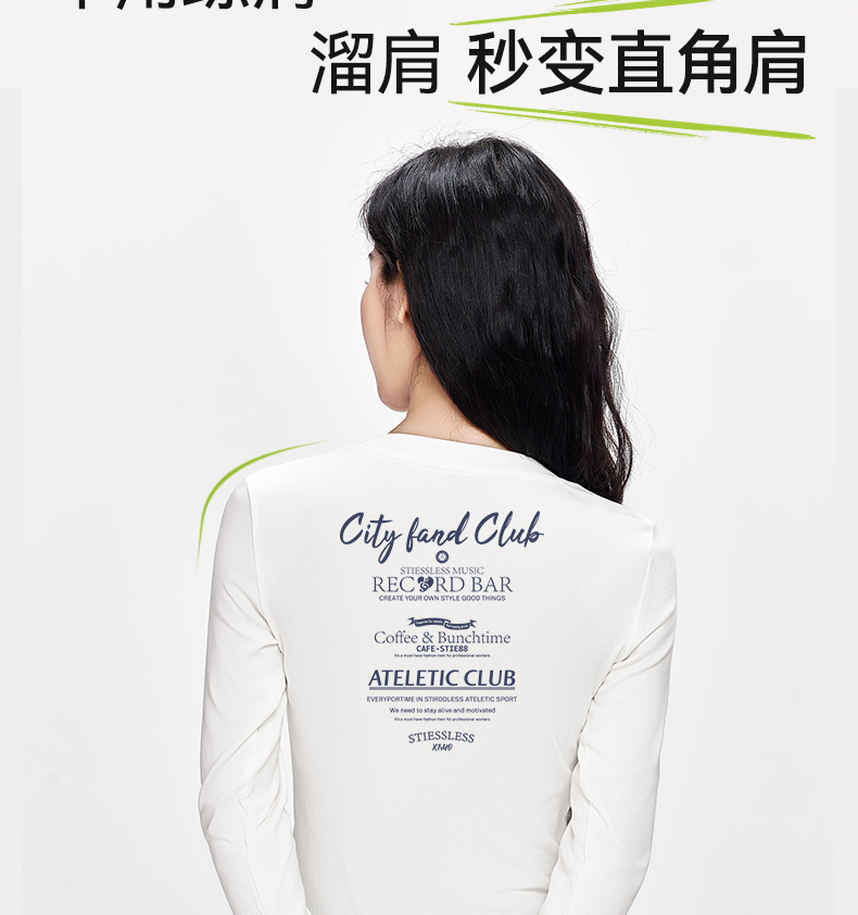 「棉的美学」秋季通勤修身长袖T恤女印花设计感软糯百搭经典上衣