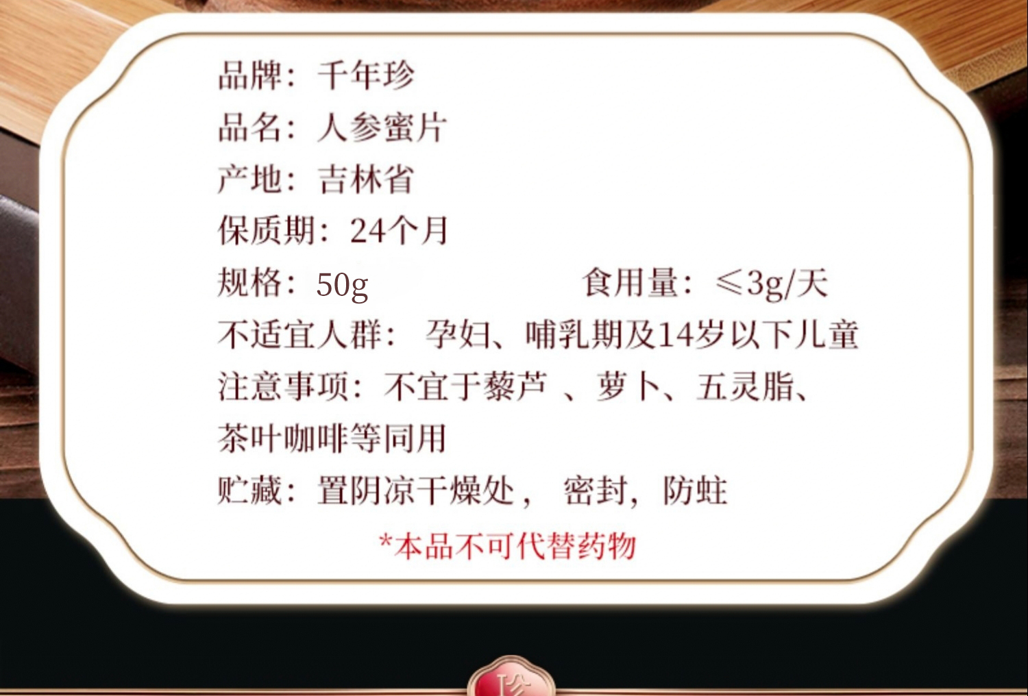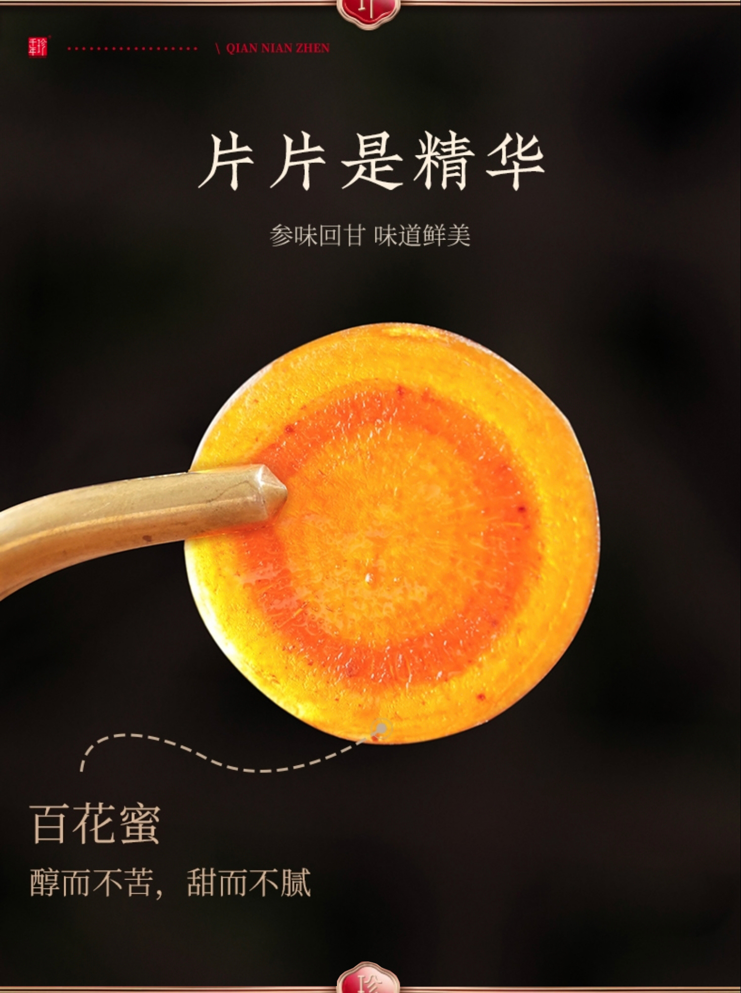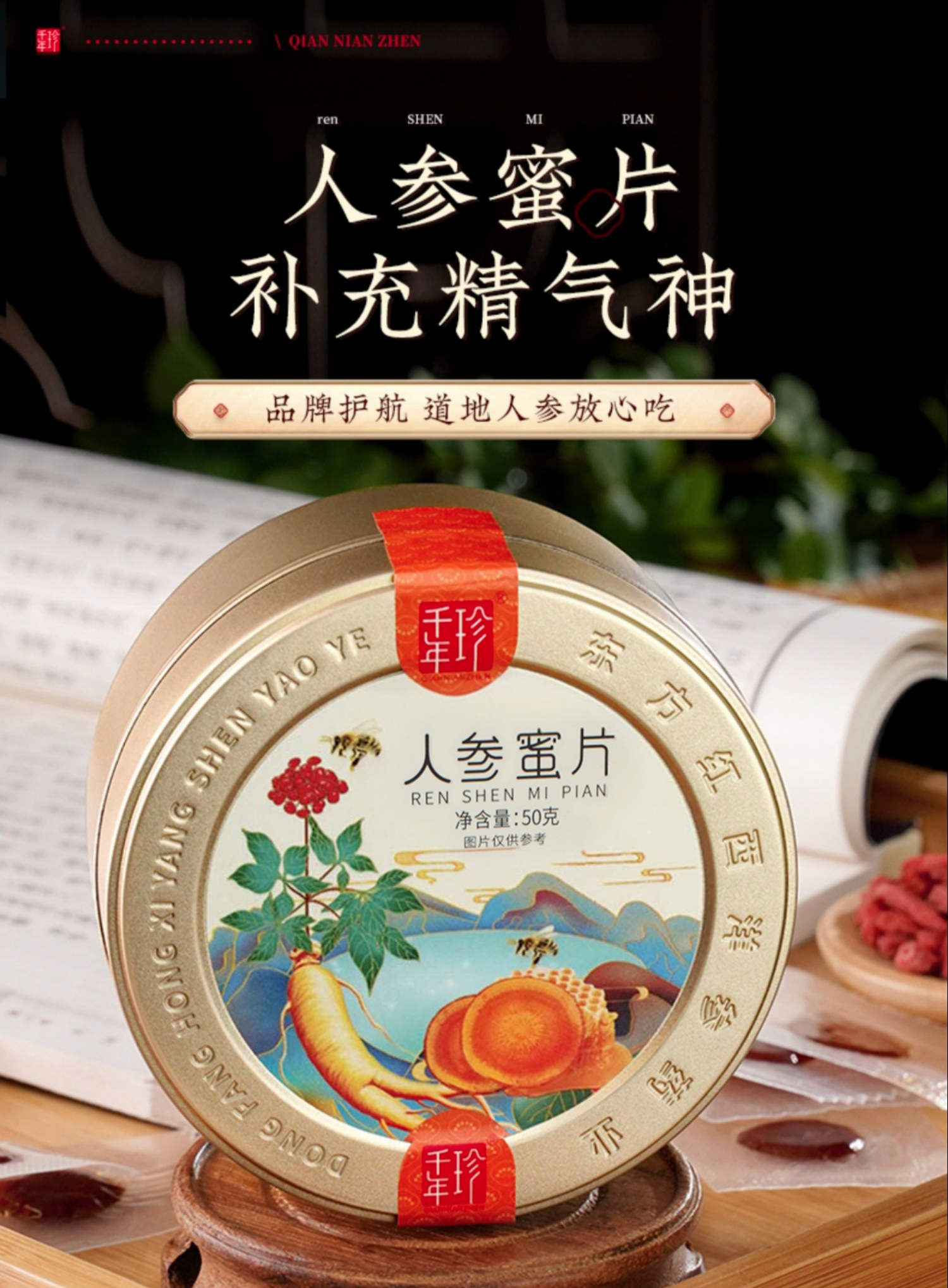 千年珍S级人参蜜片泡水即食鲜参人参切片泡茶煲汤参片50g/盒