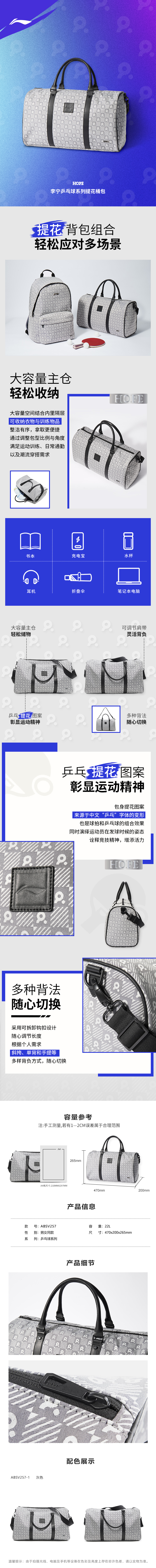 【2025新品】李宁乒乓球系列王楚钦款桶包ABSV257-1 商品图2