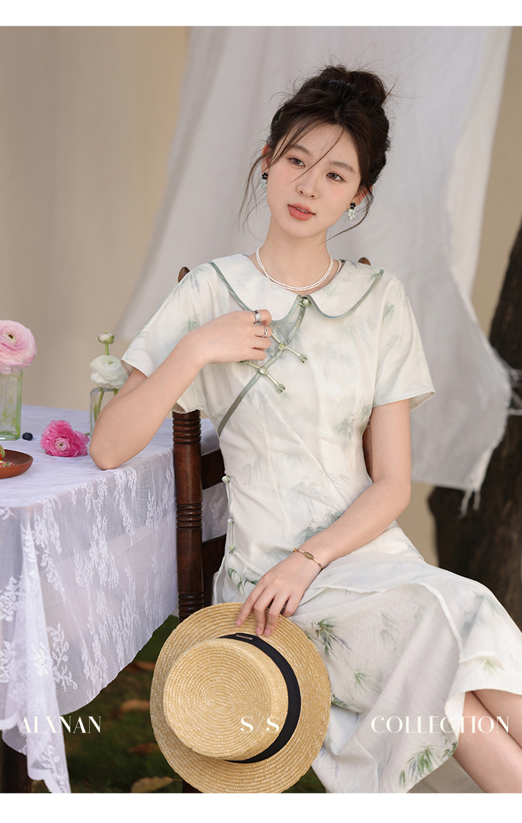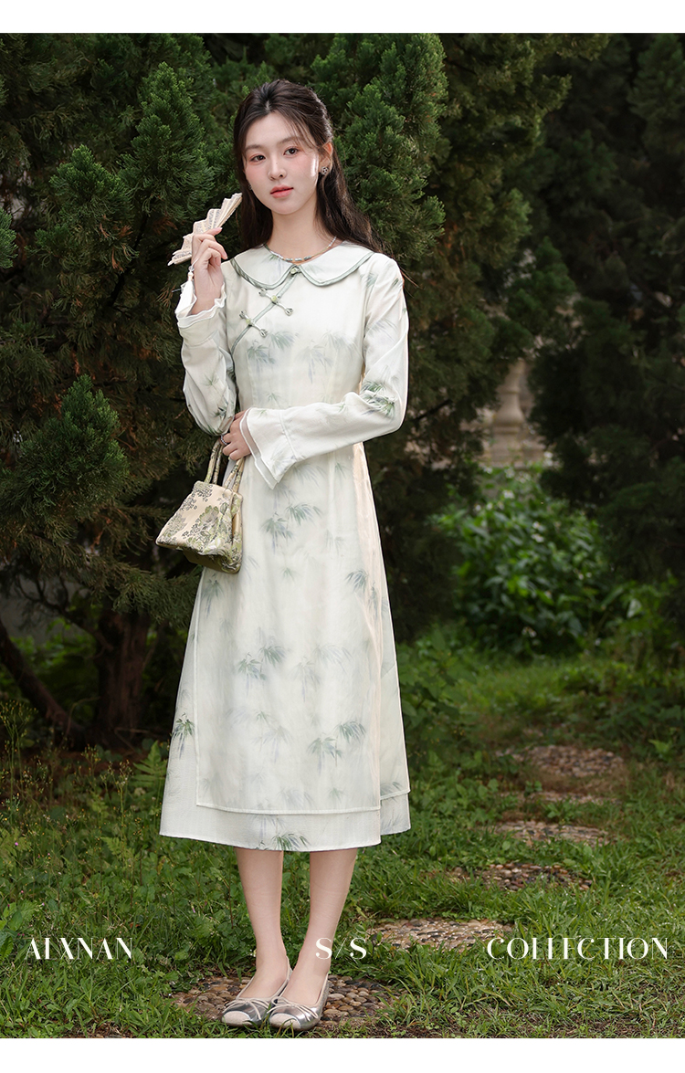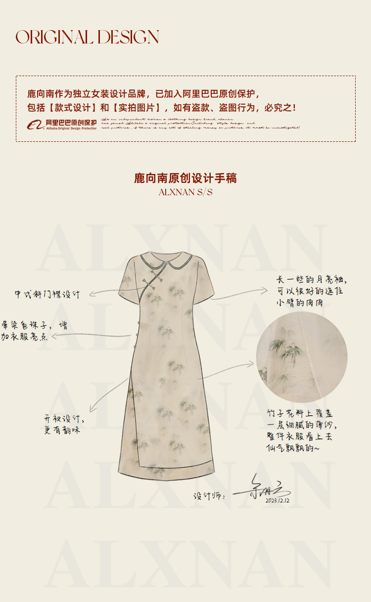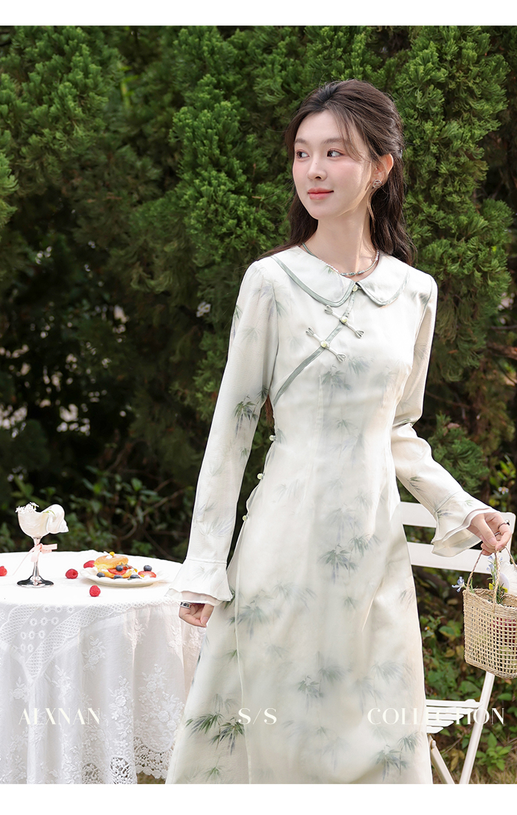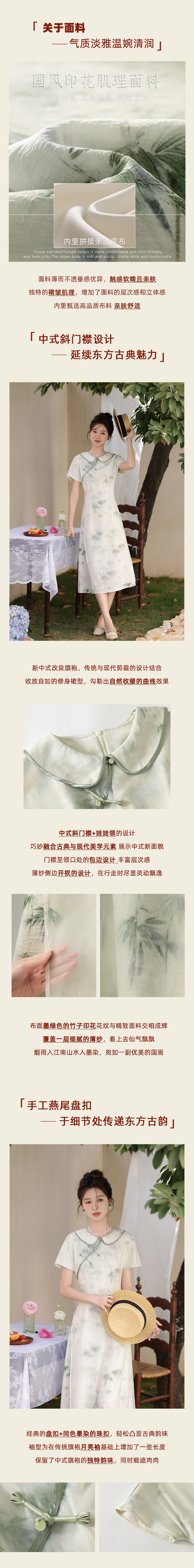 【65折秒杀】鹿向南《松香竹吟》新中式早春新款连衣裙气质绝美显瘦绿色中长裙L33839