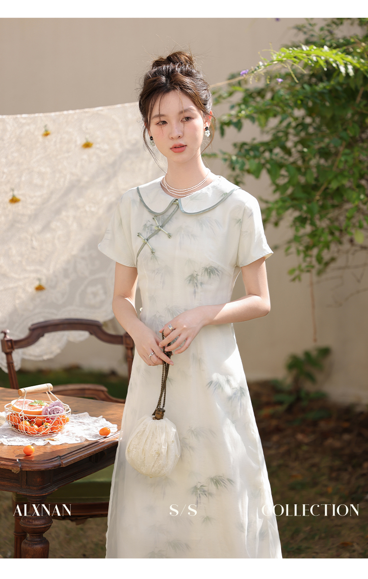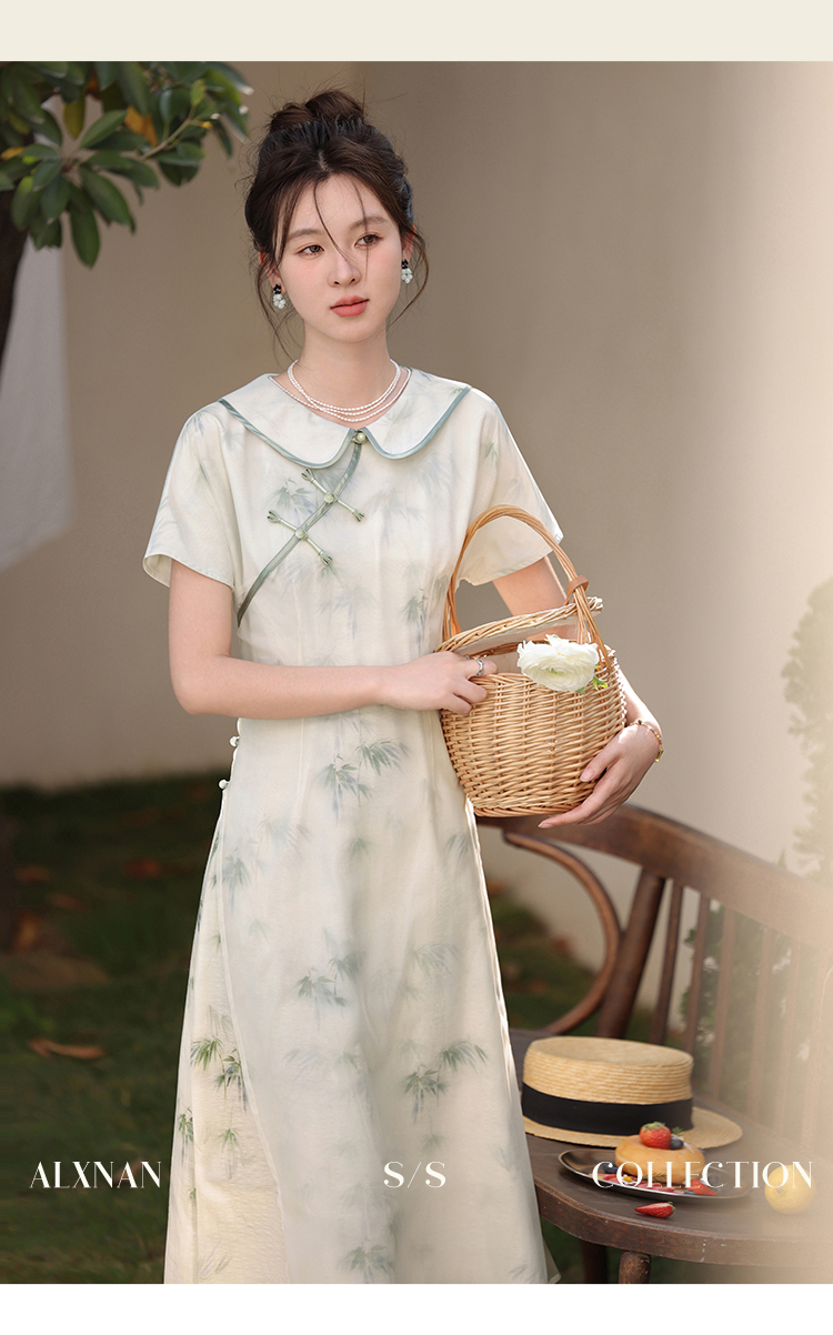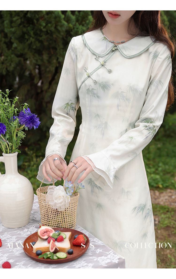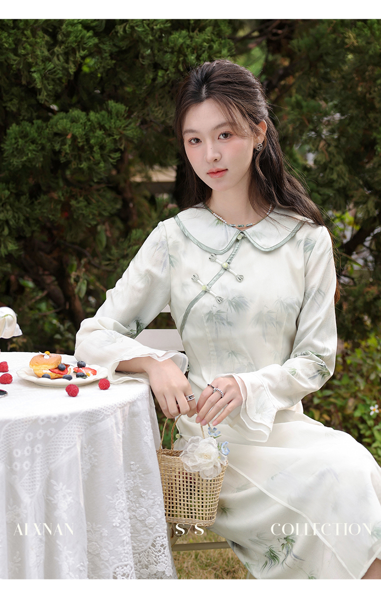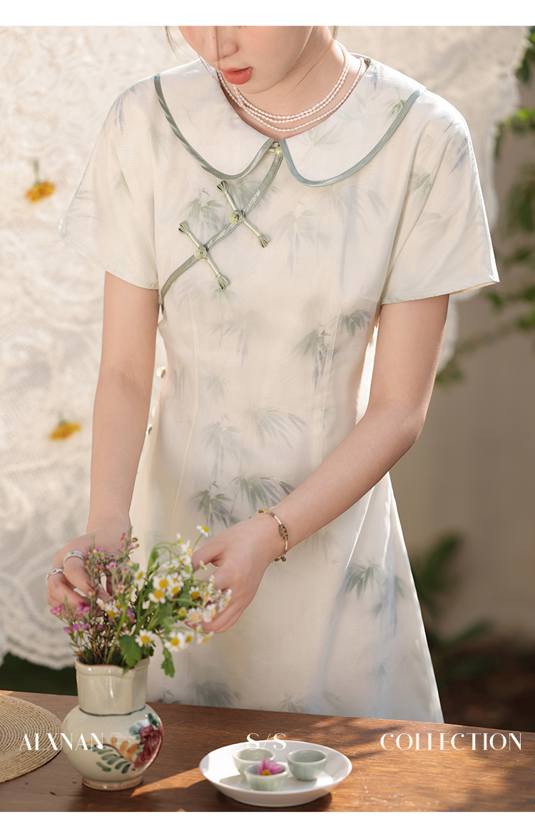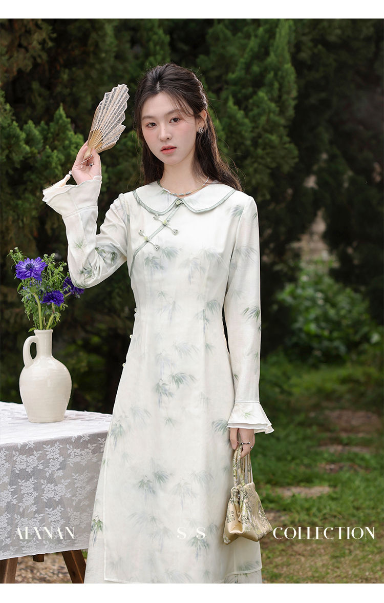 【65折秒杀】鹿向南《松香竹吟》新中式早春新款连衣裙气质绝美显瘦绿色中长裙L33839