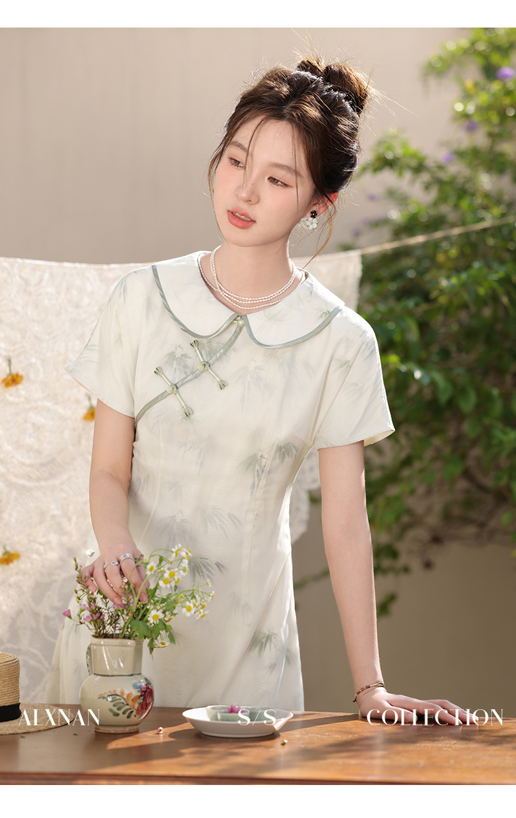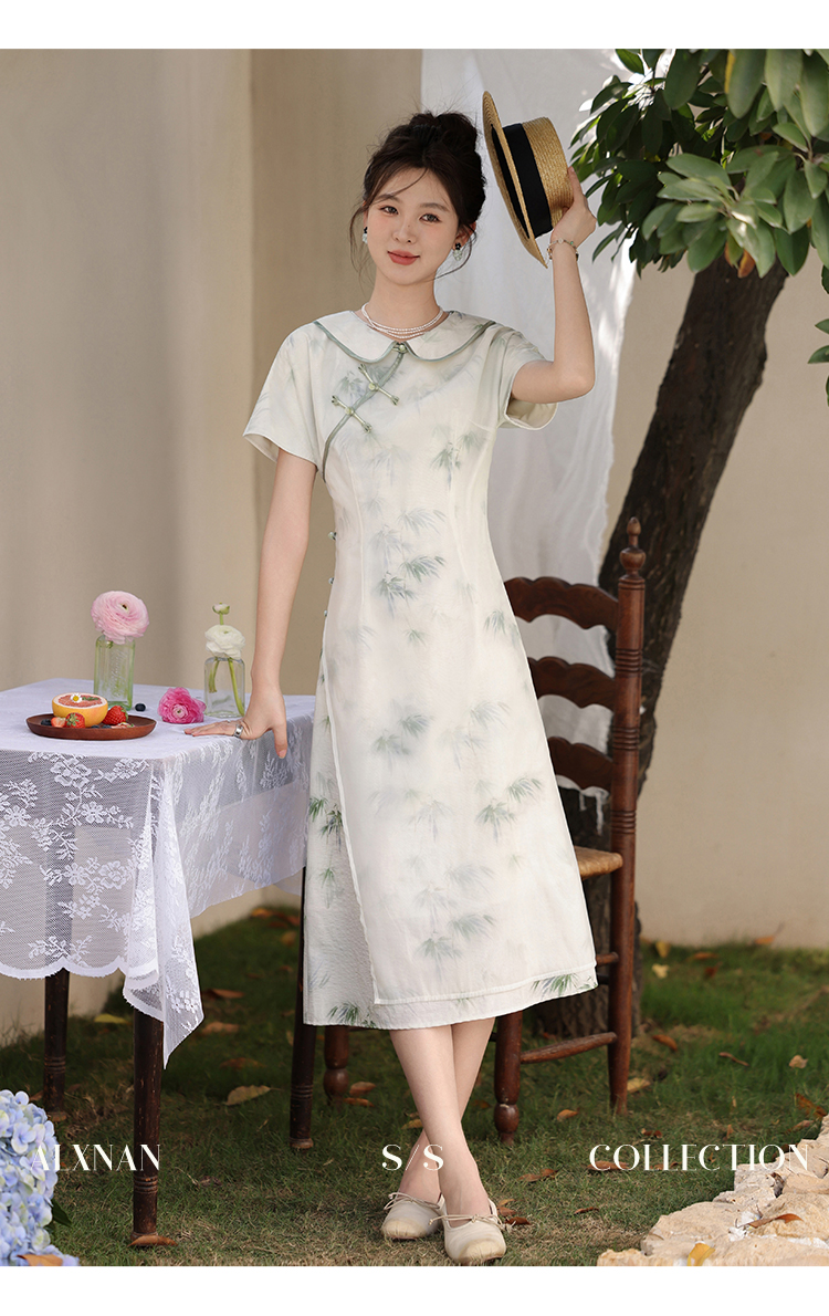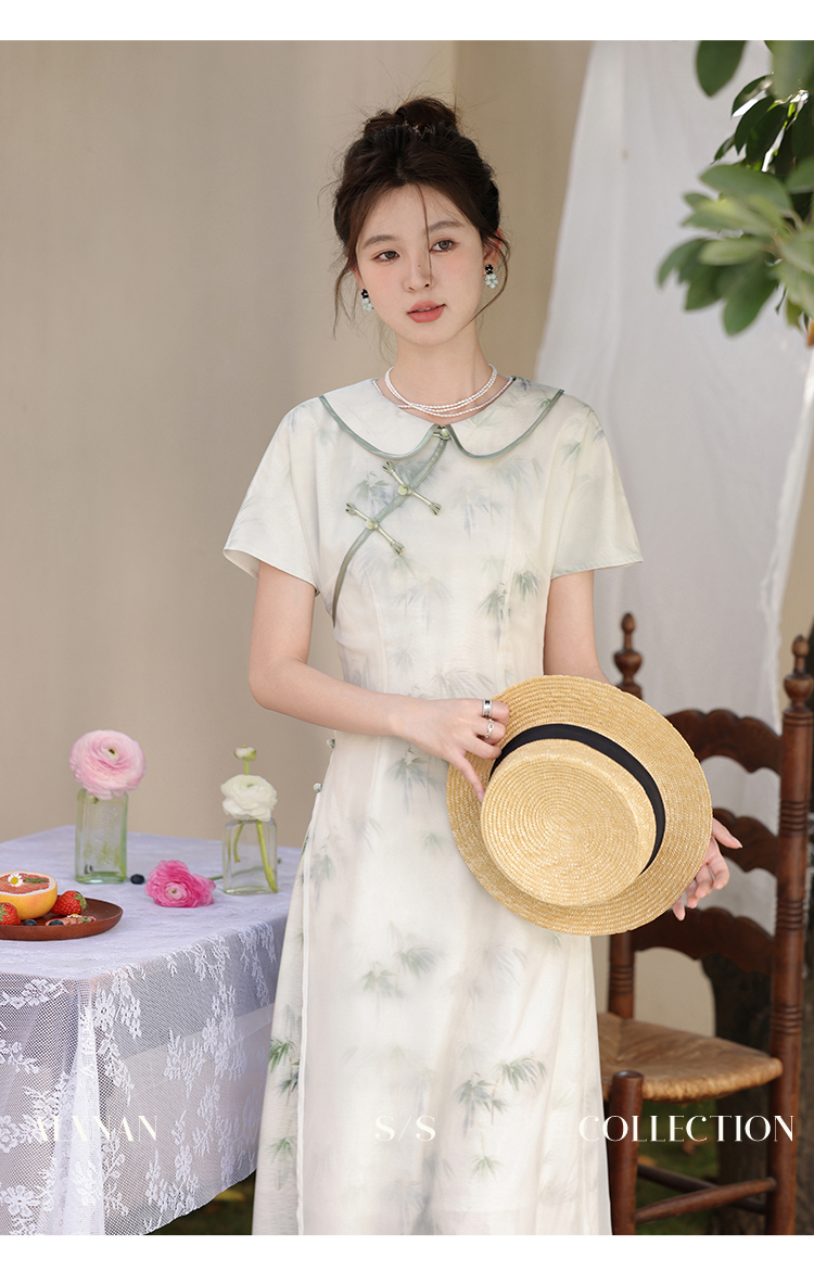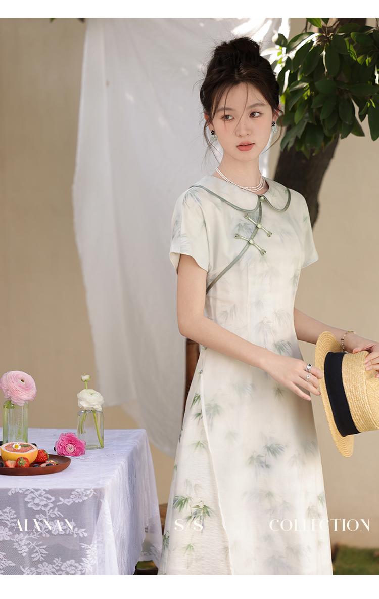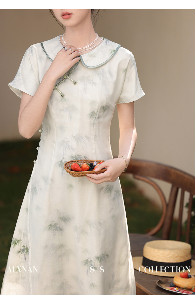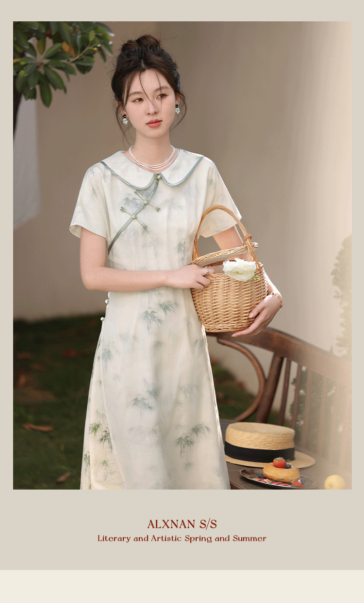 【65折秒杀】鹿向南《松香竹吟》新中式早春新款连衣裙气质绝美显瘦绿色中长裙L33839