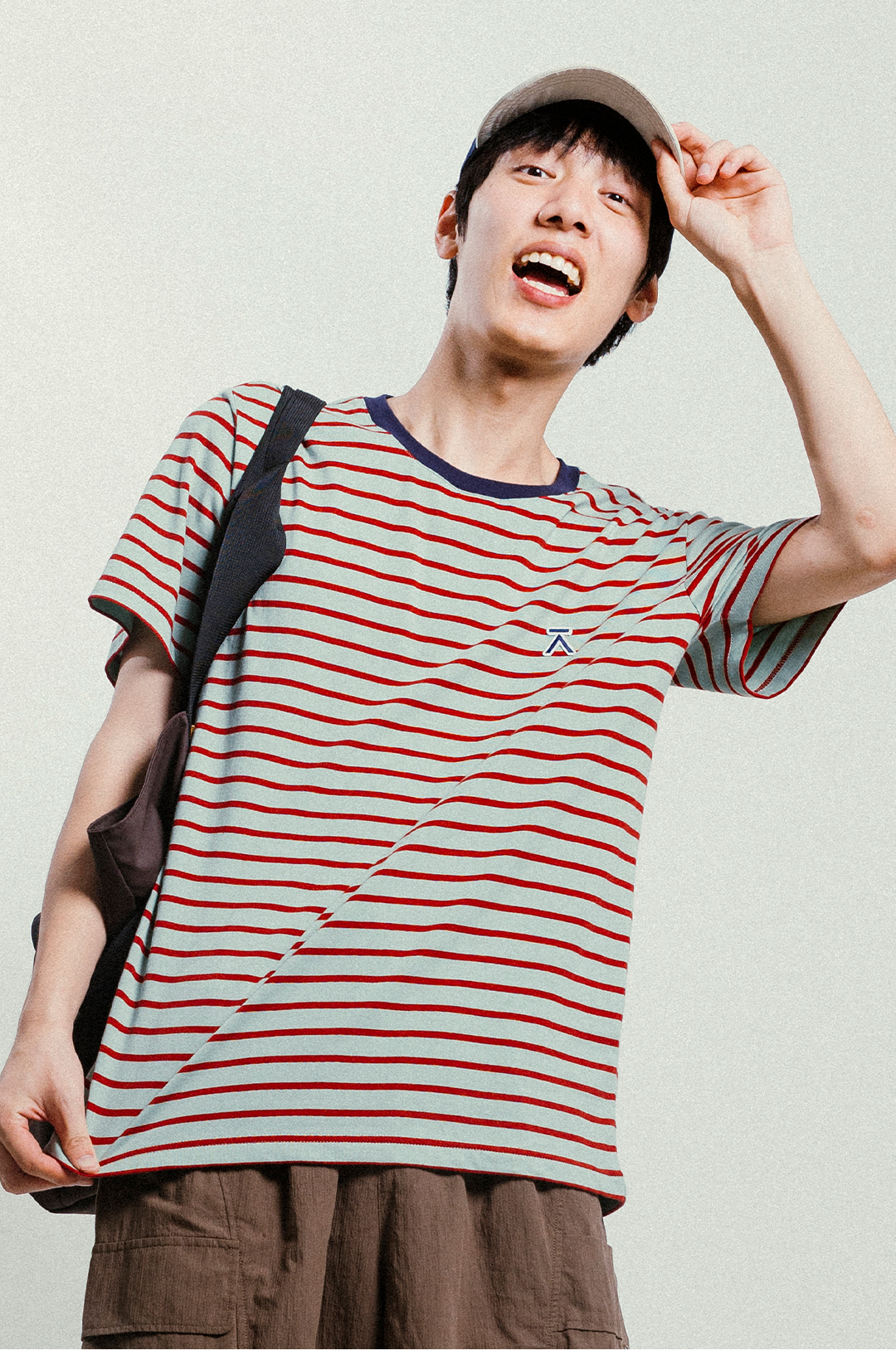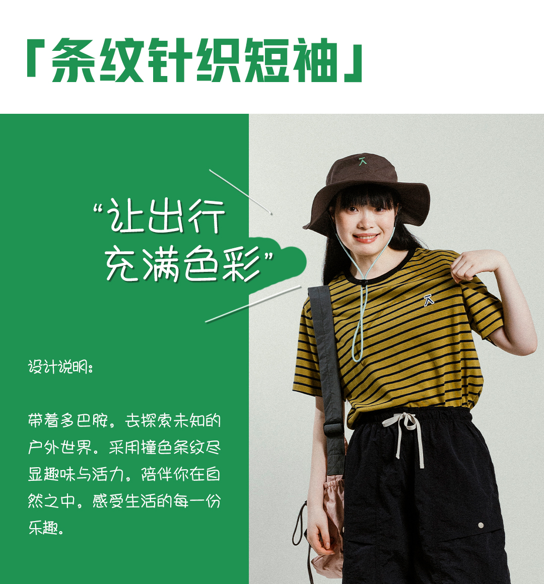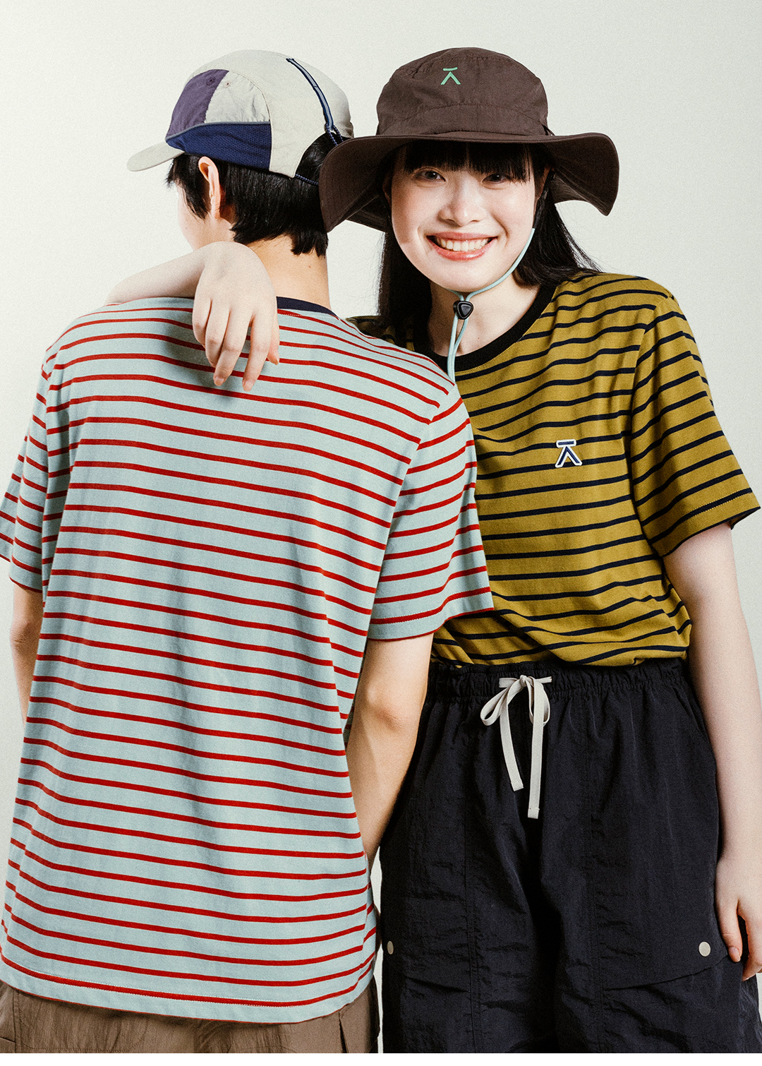 【出游季特惠】ACMEITEM爱棵米户外情侣条纹针织短袖棉感合体圆领体恤上衣男女GAG3440255C