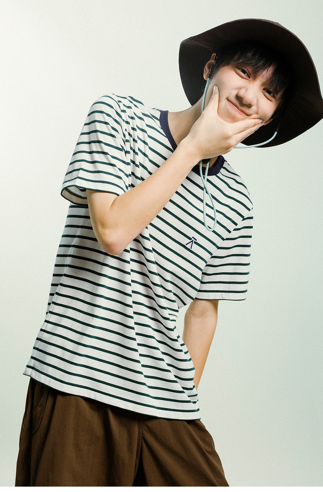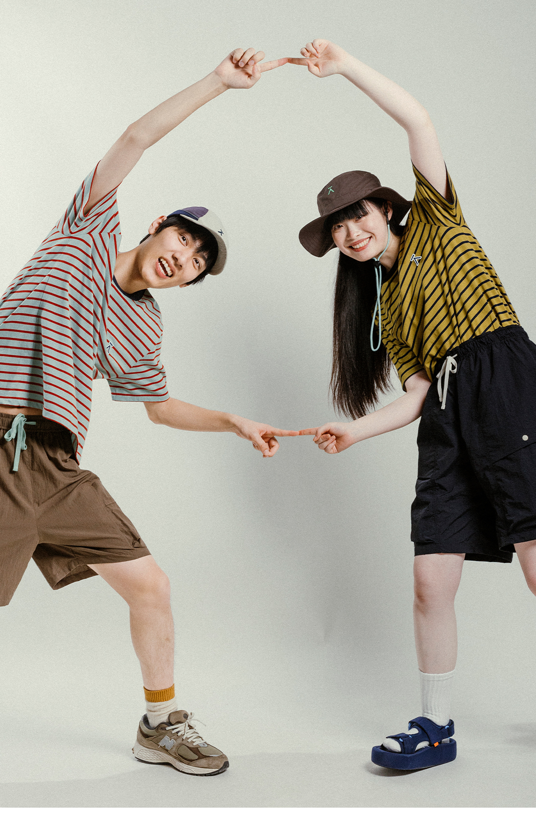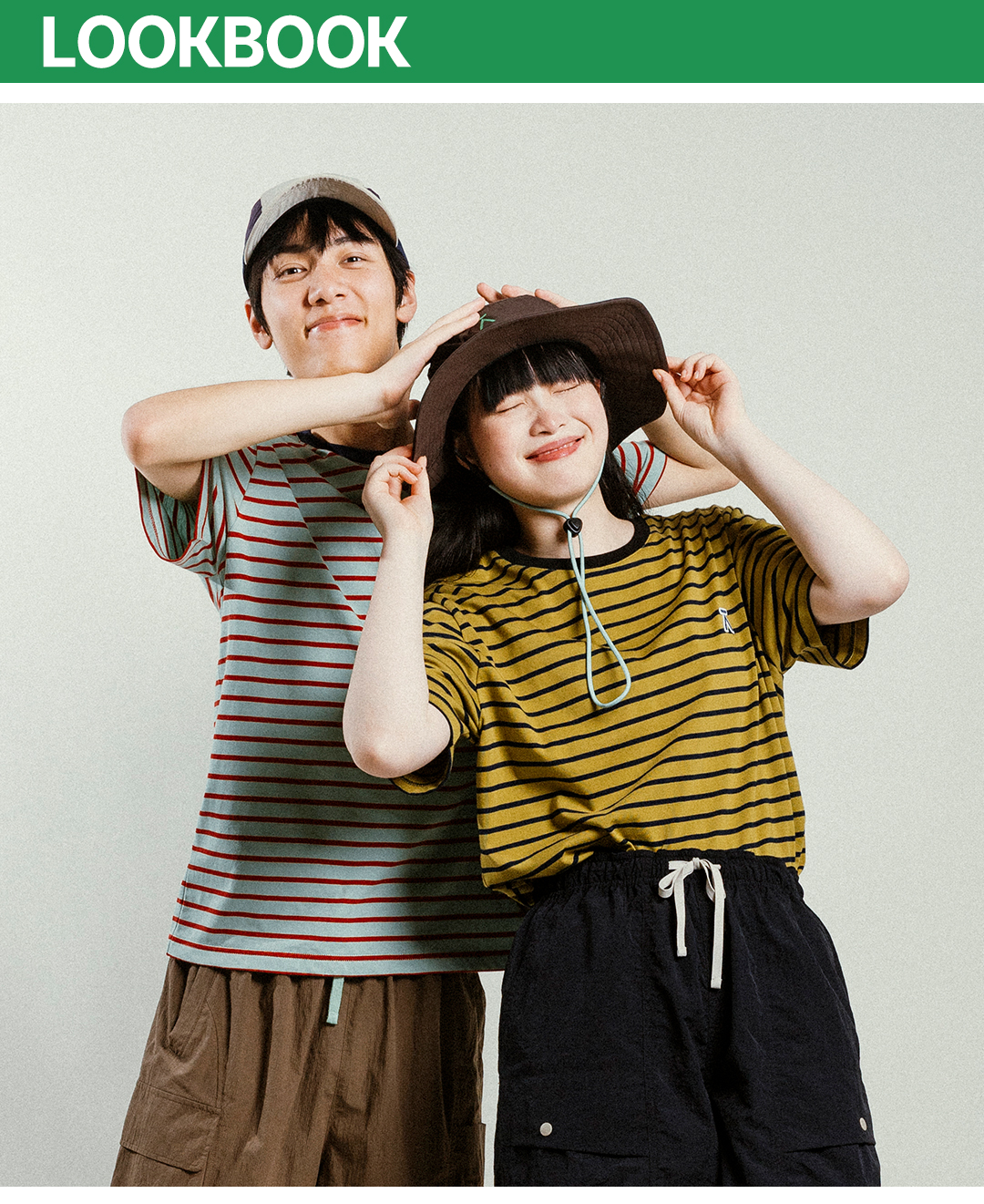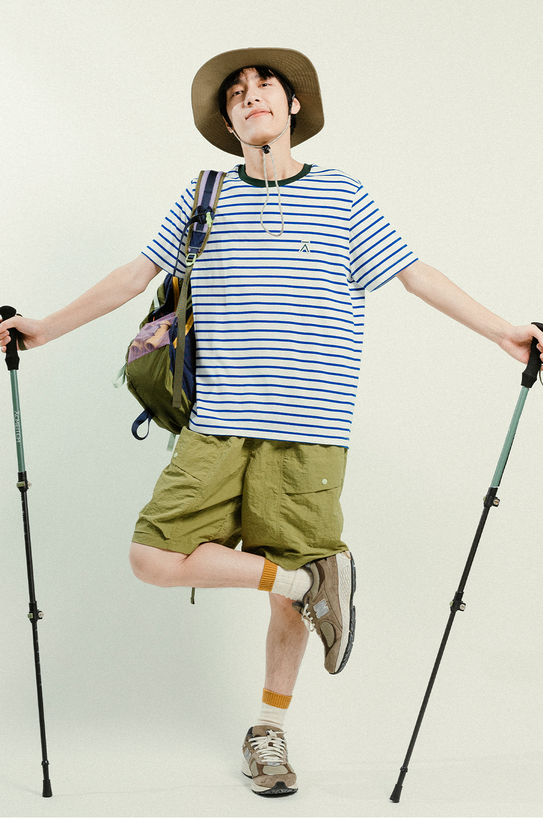 【出游季特惠】ACMEITEM爱棵米户外情侣条纹针织短袖棉感合体圆领体恤上衣男女GAG3440255C