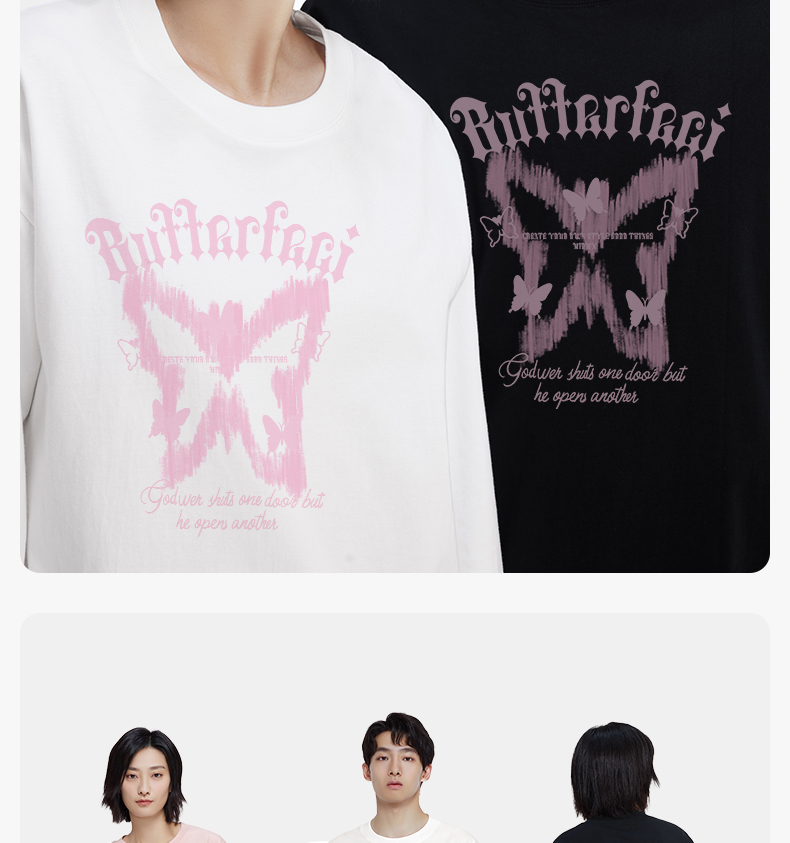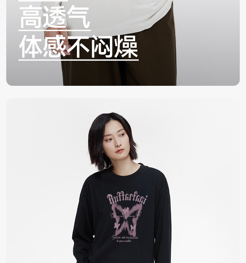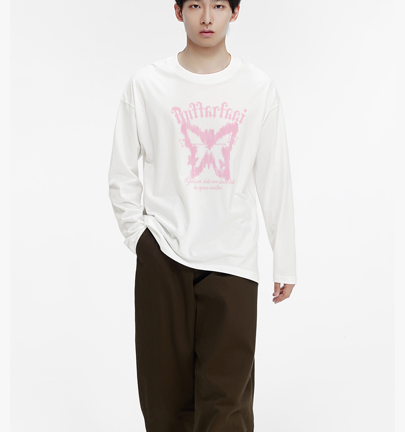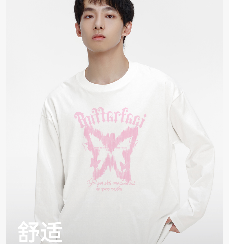 「棉的美学」ins小众蝴蝶印花纯棉长袖T恤女春宽松百搭单穿打底衫