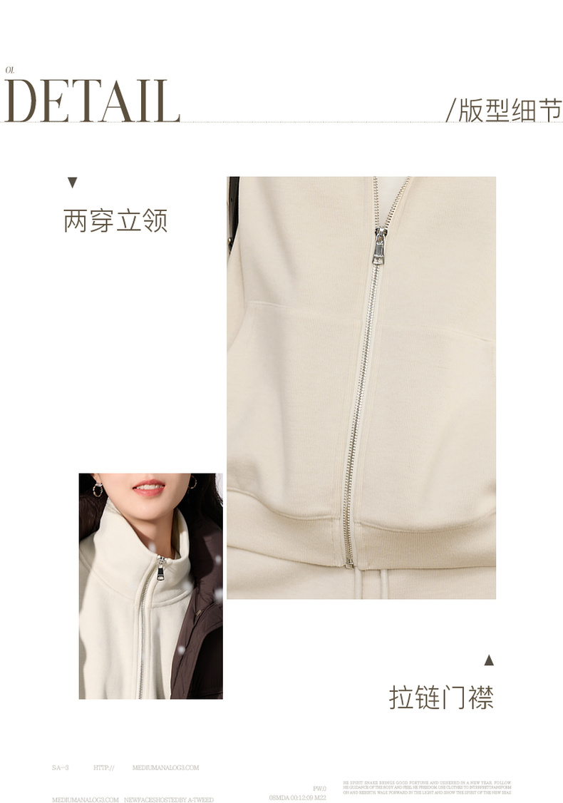 三彩2025冬季新款加绒拉链衫博主卫衣复合奥粒绒外套开衫休闲风S