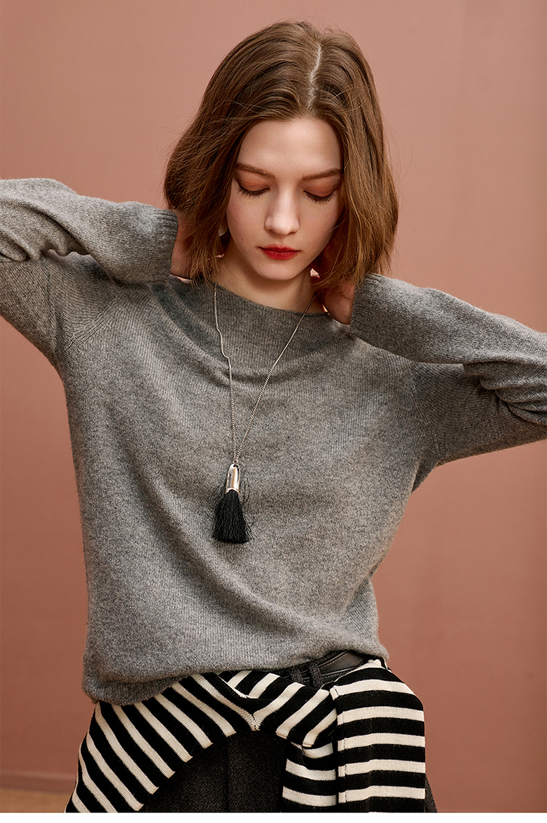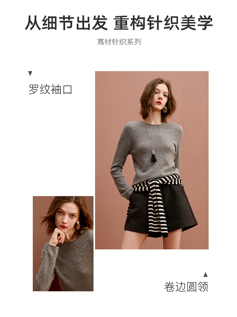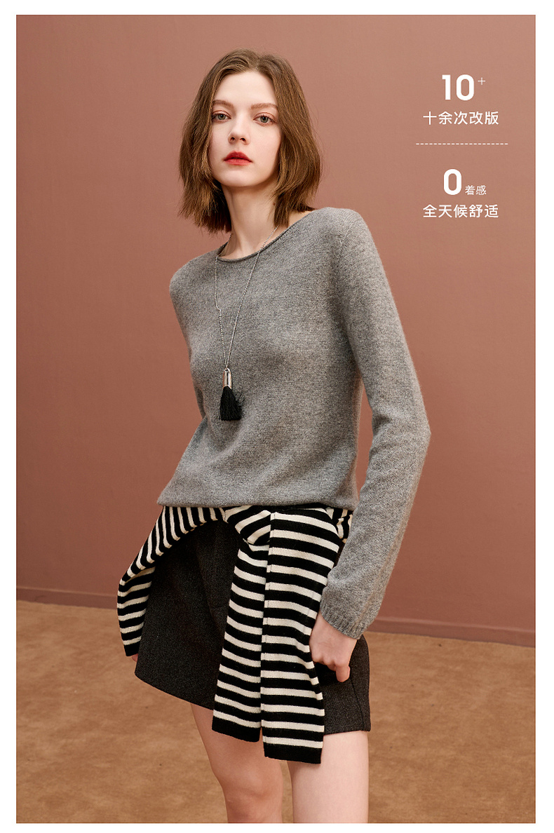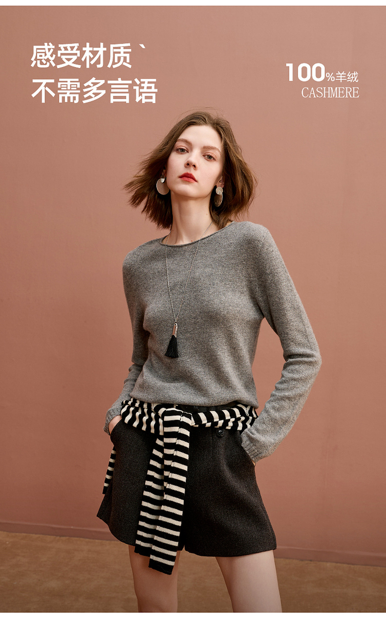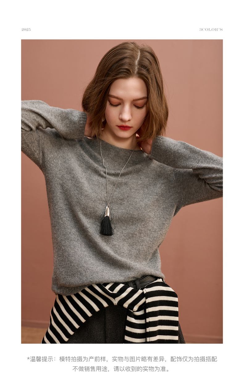 【100羊绒】三彩2025冬季新款圆领针织衫长袖套头打底衫保暖S