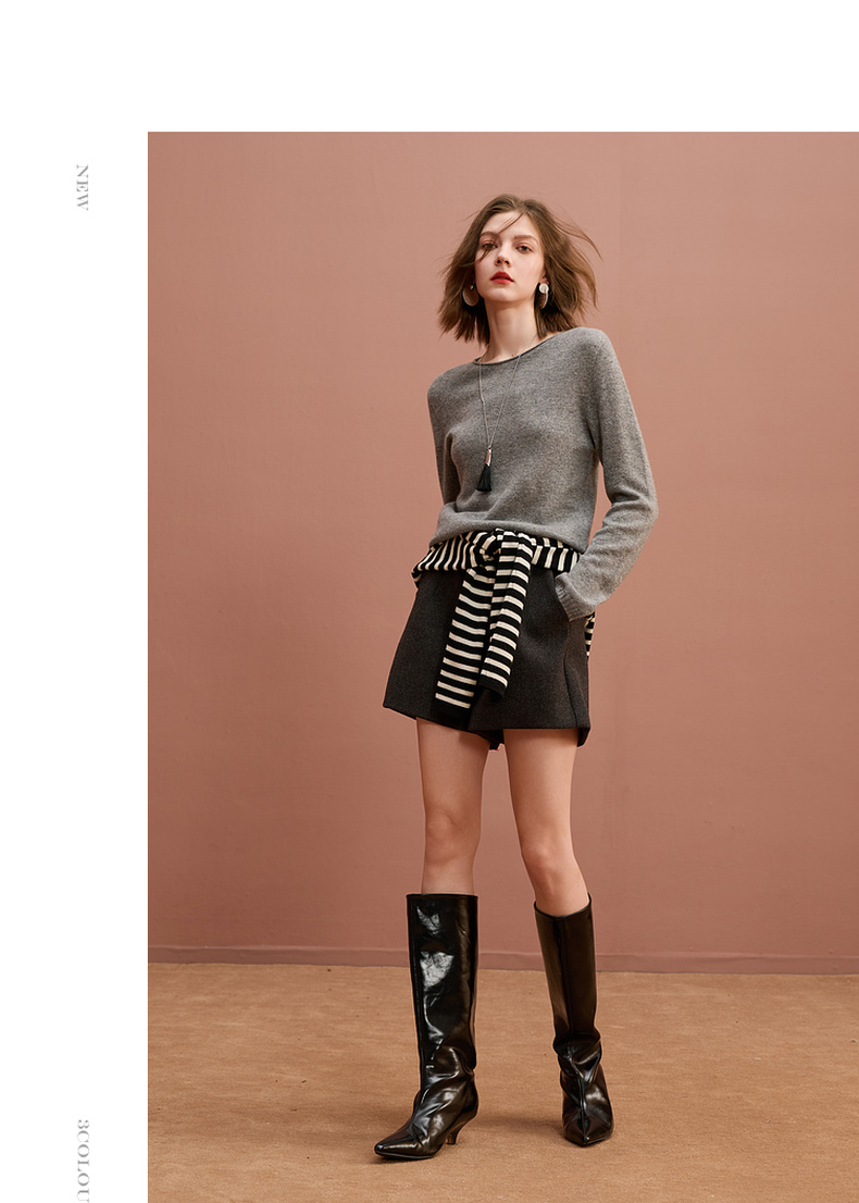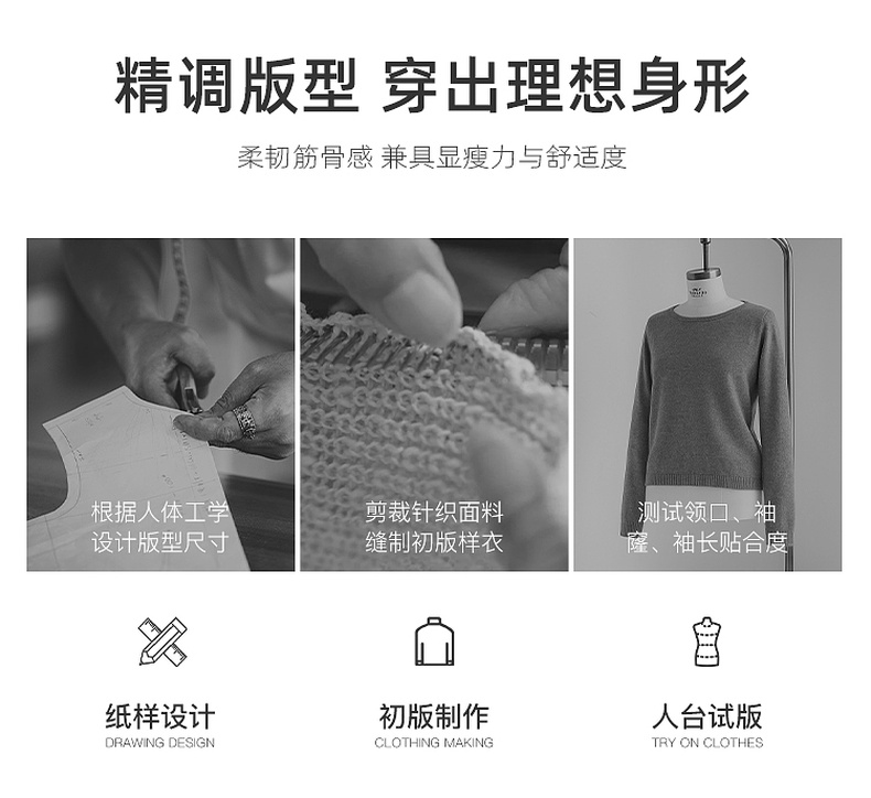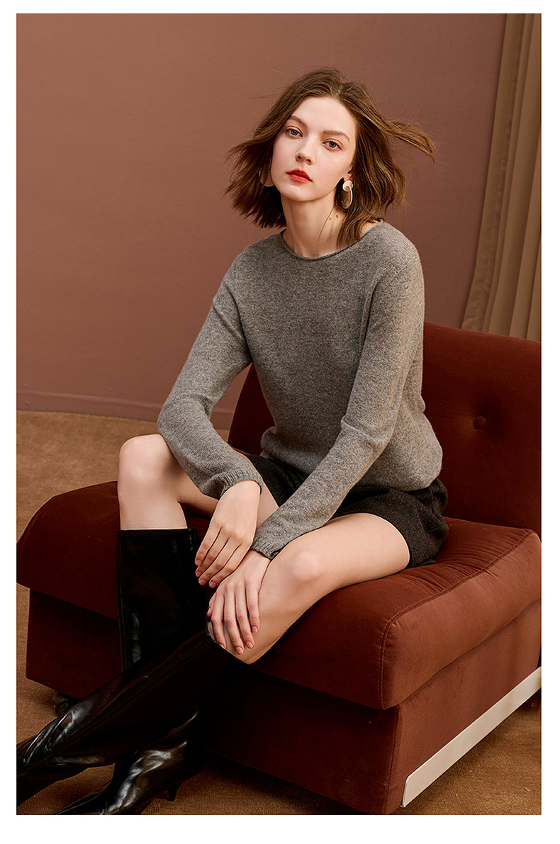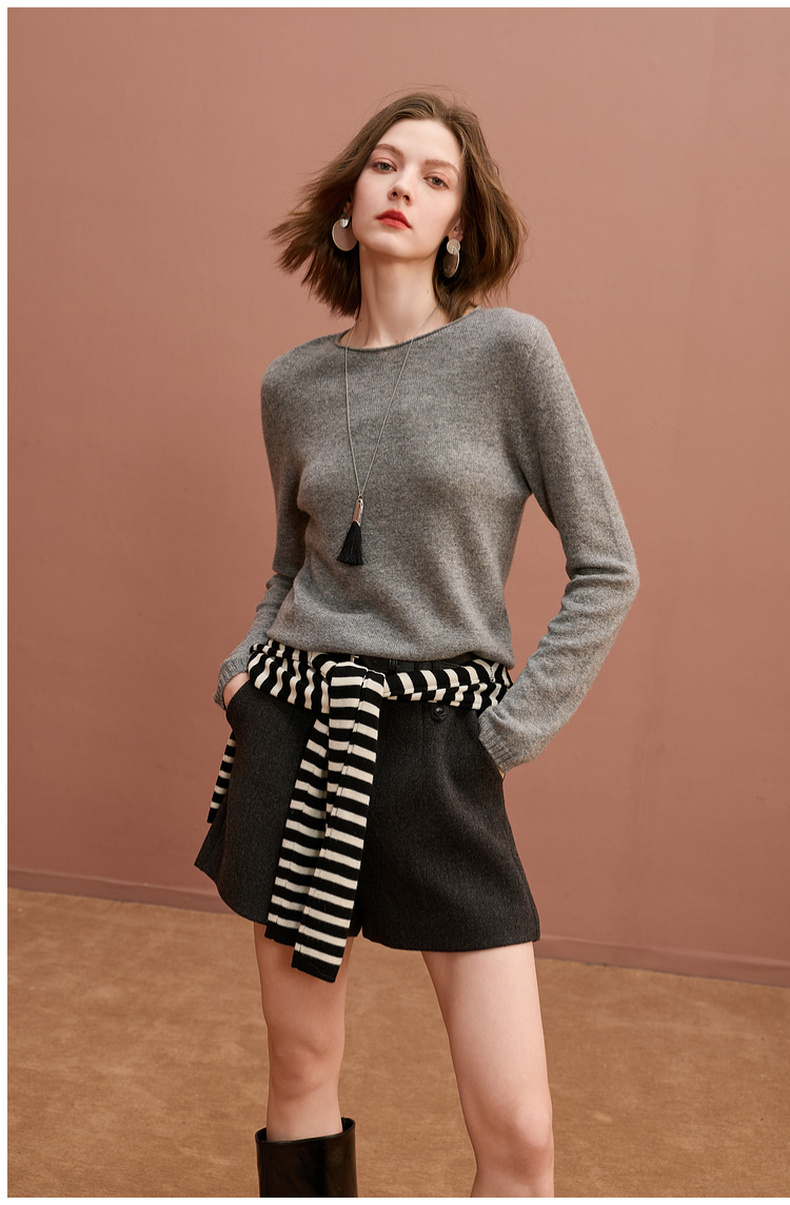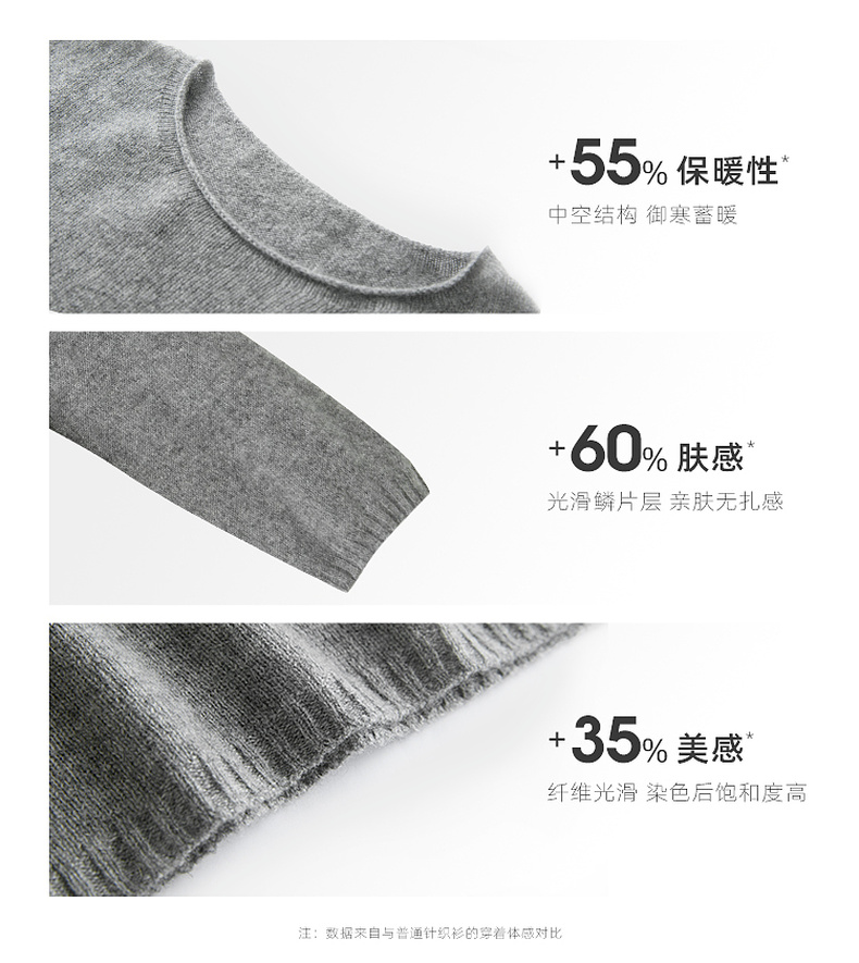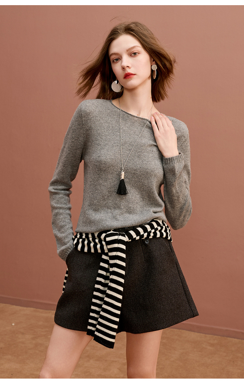 【100羊绒】三彩2025冬季新款圆领针织衫长袖套头打底衫保暖S