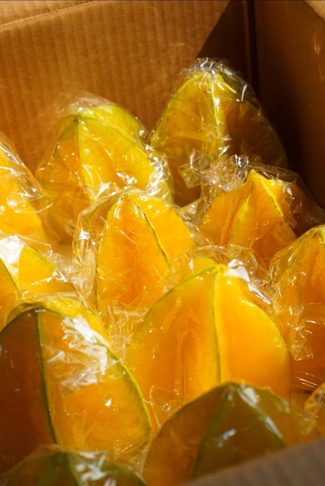 杨桃皮薄如膜、纤维少、果脆汁多、甜酸可口、芳香清甜,可食率高达95%以上。