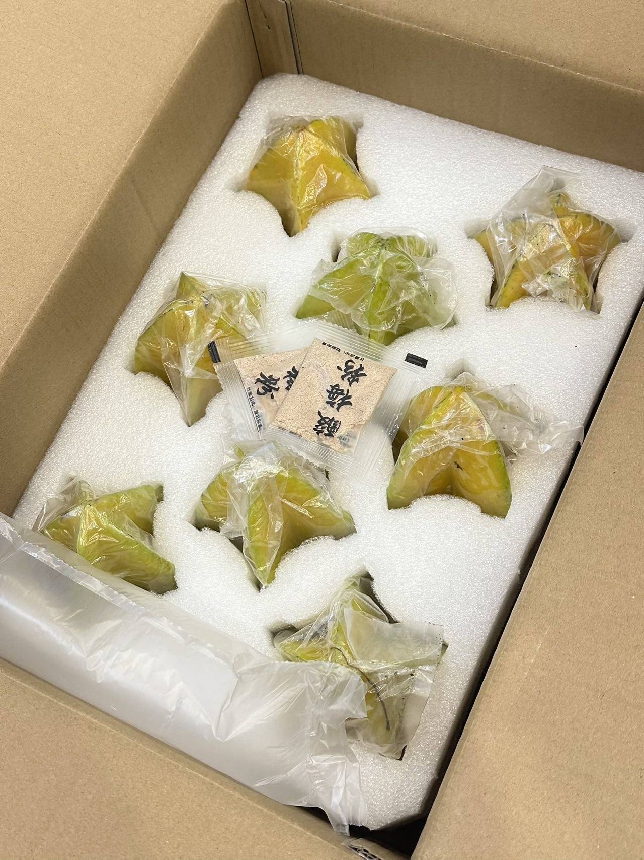 到货先吃颜色黄的,颜色偏绿的再放两天,黄了更甜。