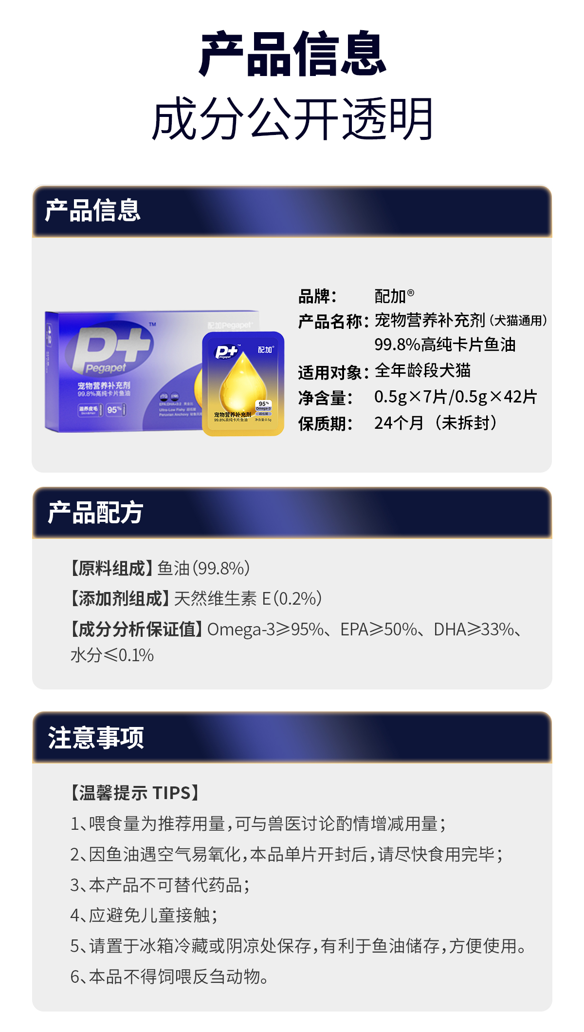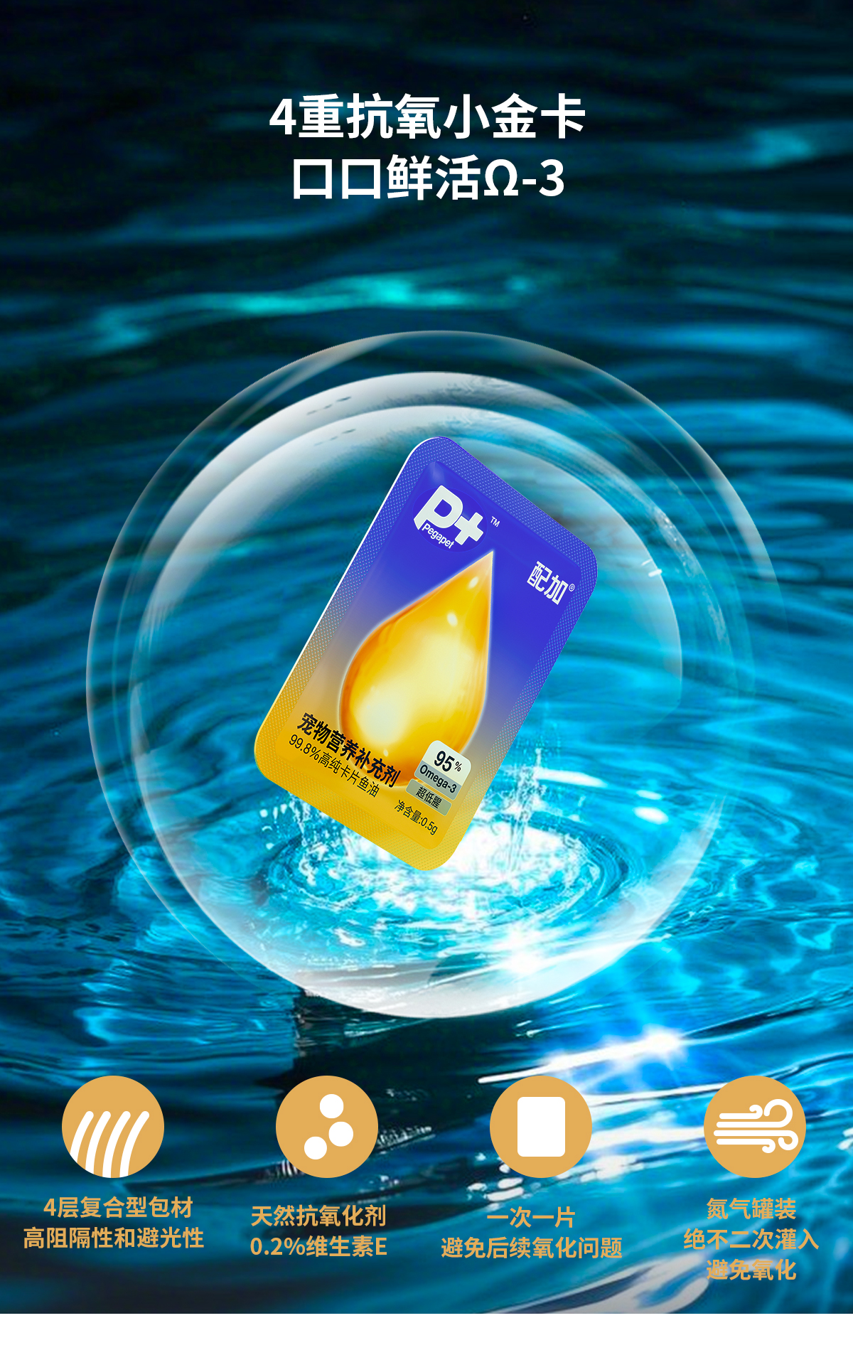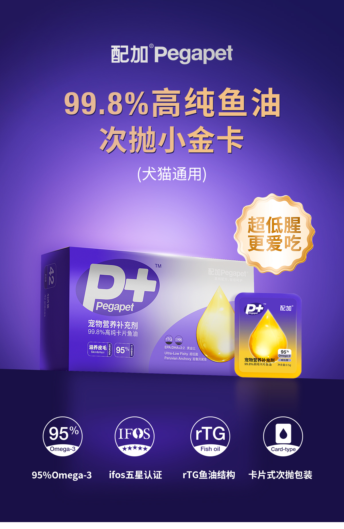 布兰德配加宠物营养补充剂 99.8%高纯卡片鱼油犬猫通用
