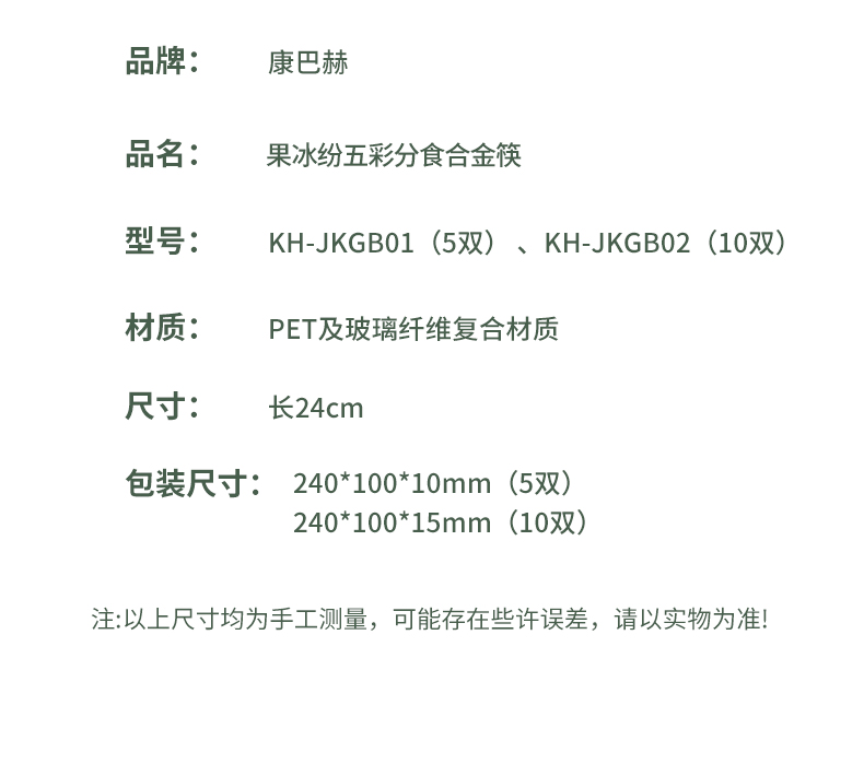 康巴赫果冰纷分食五彩合金筷5双装10双装 KH-JKGB01 KH-JKGB02