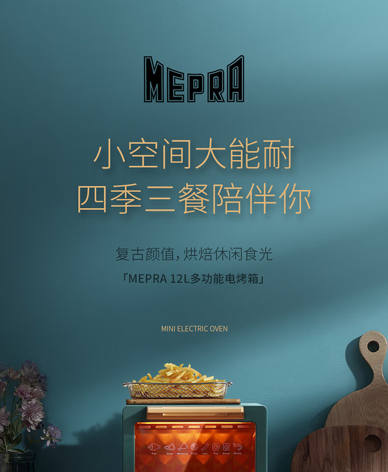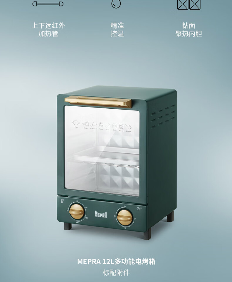 MEPRA 家用多功能迷你小烤箱 电烤箱 小型立式烤箱 12L