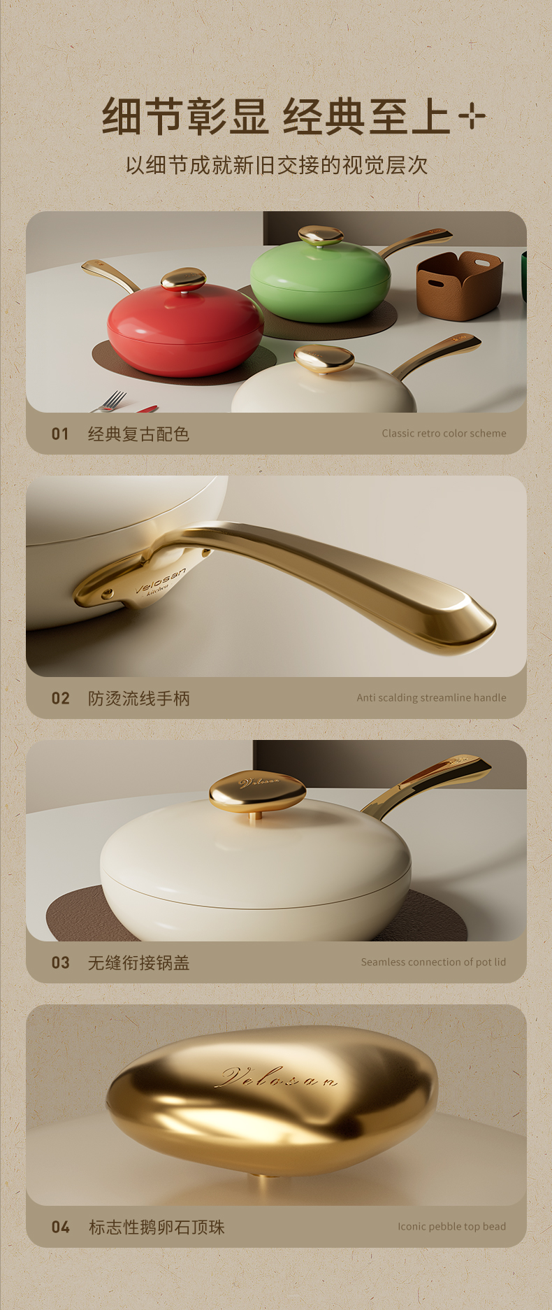 Velosan温仑山鹅卵石0涂层聚财煎锅26cmVP-2EJG02&06-7A26