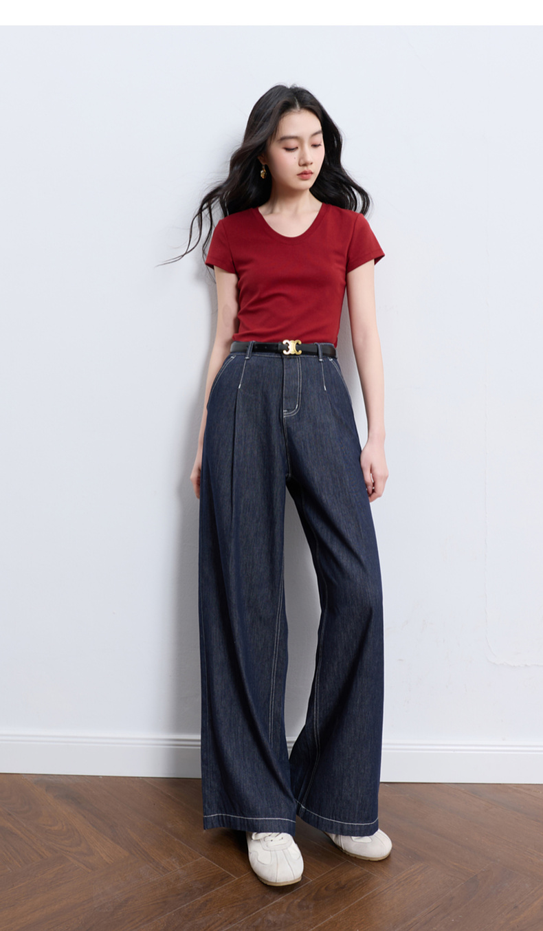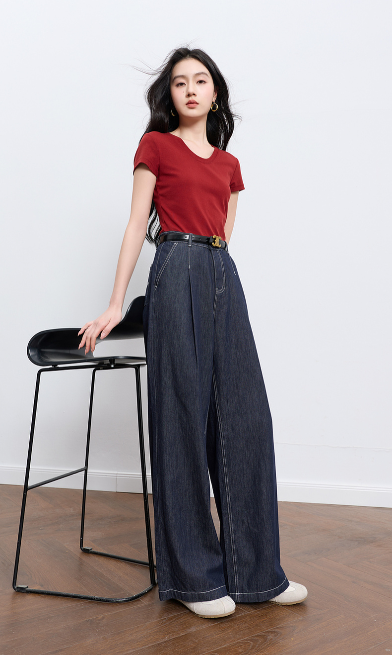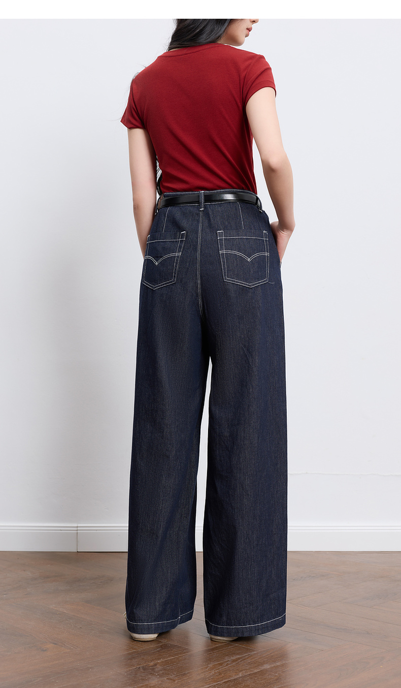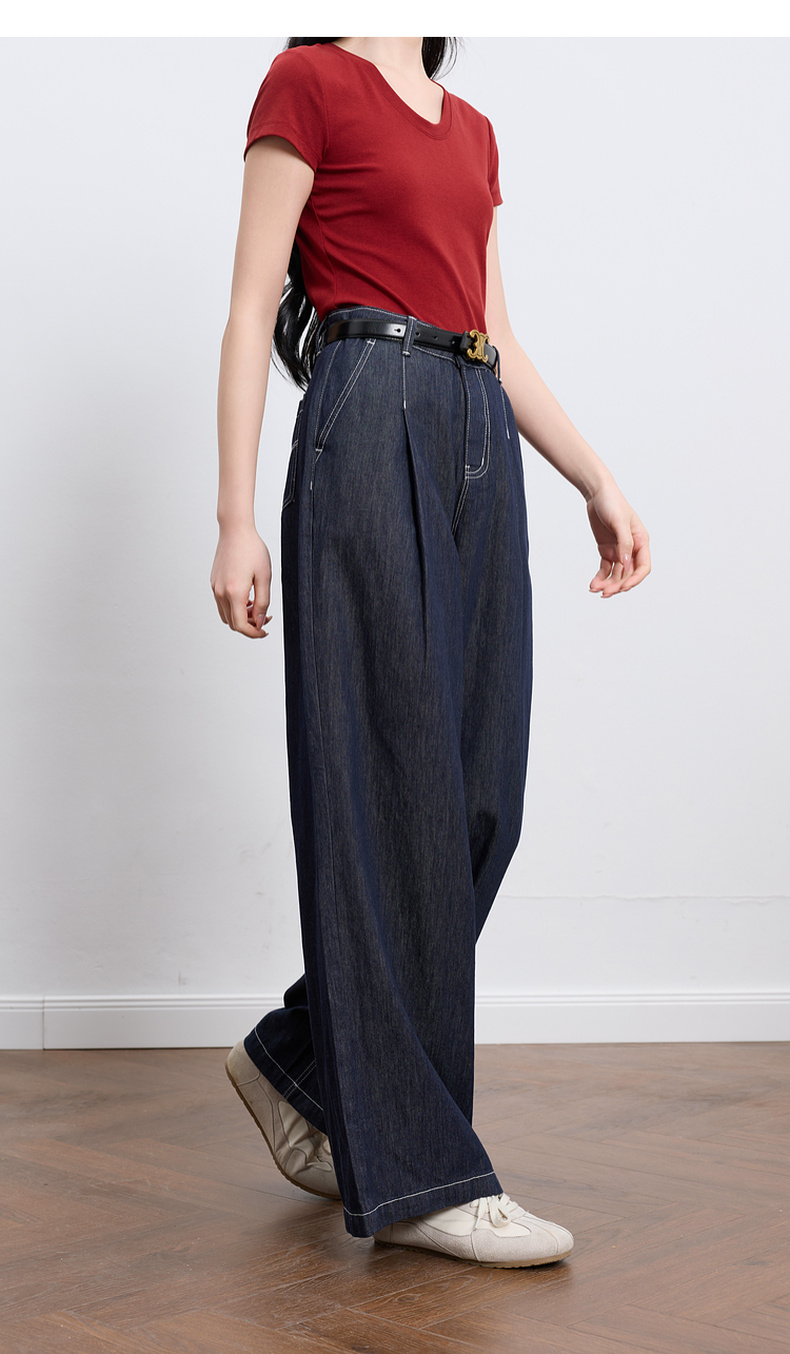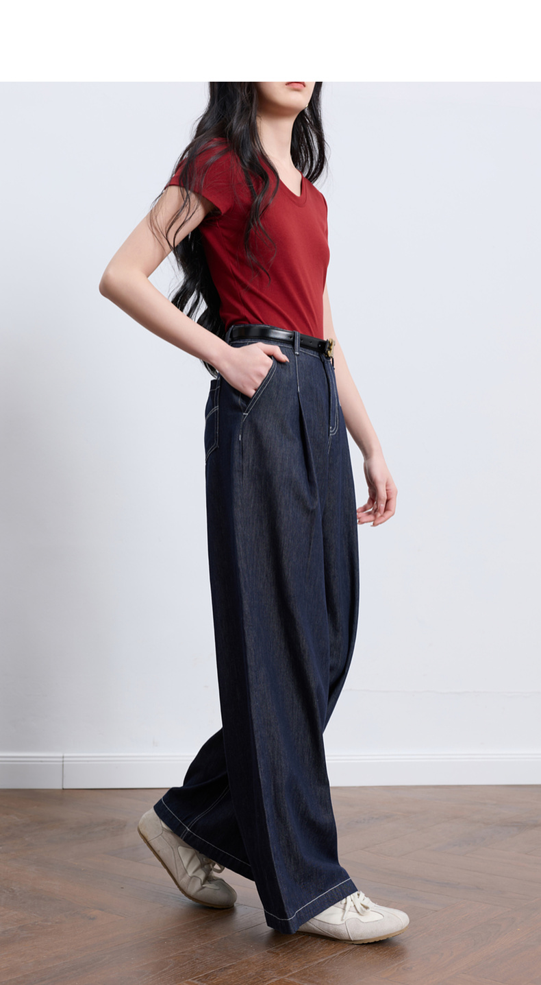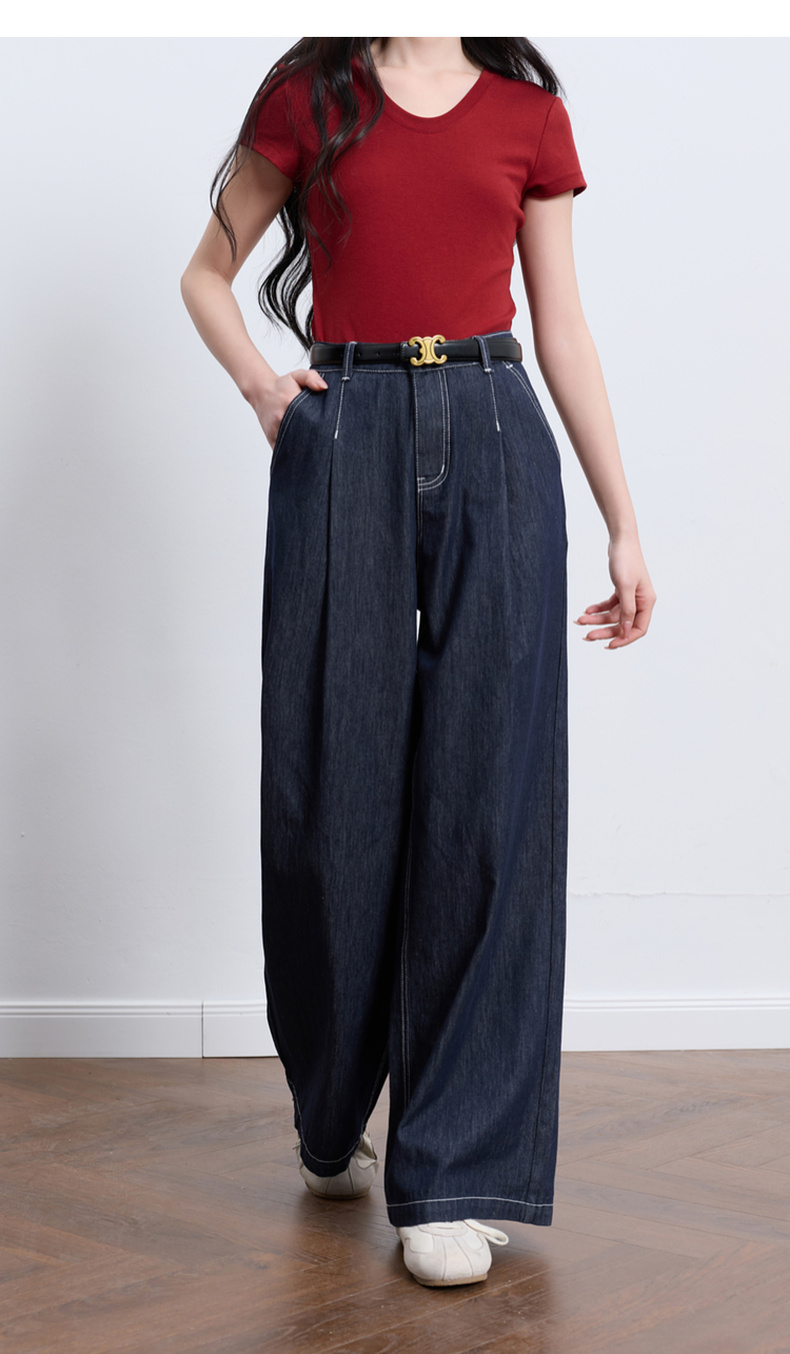 三彩2026春季新款复古休闲裤收腰阔腿裤原色牛仔裤长裤宽松垂感M