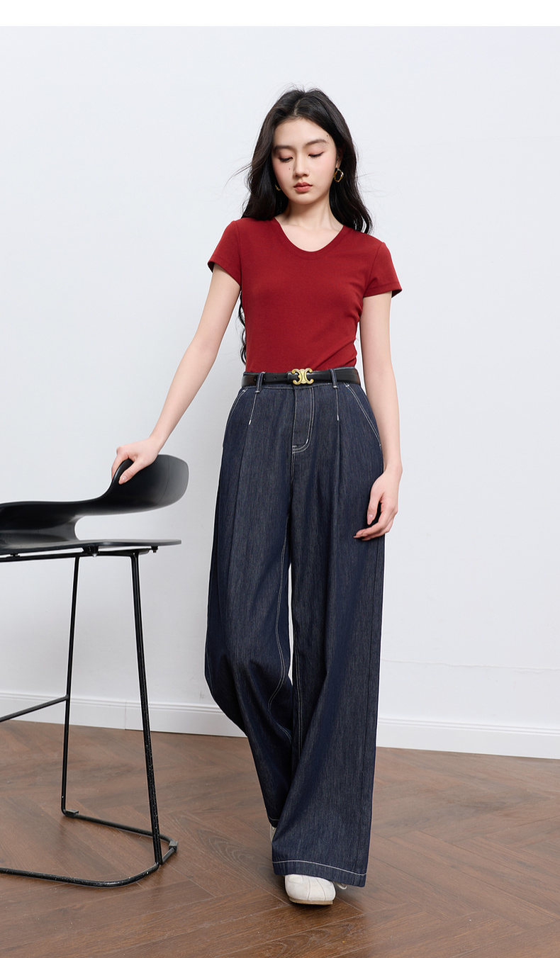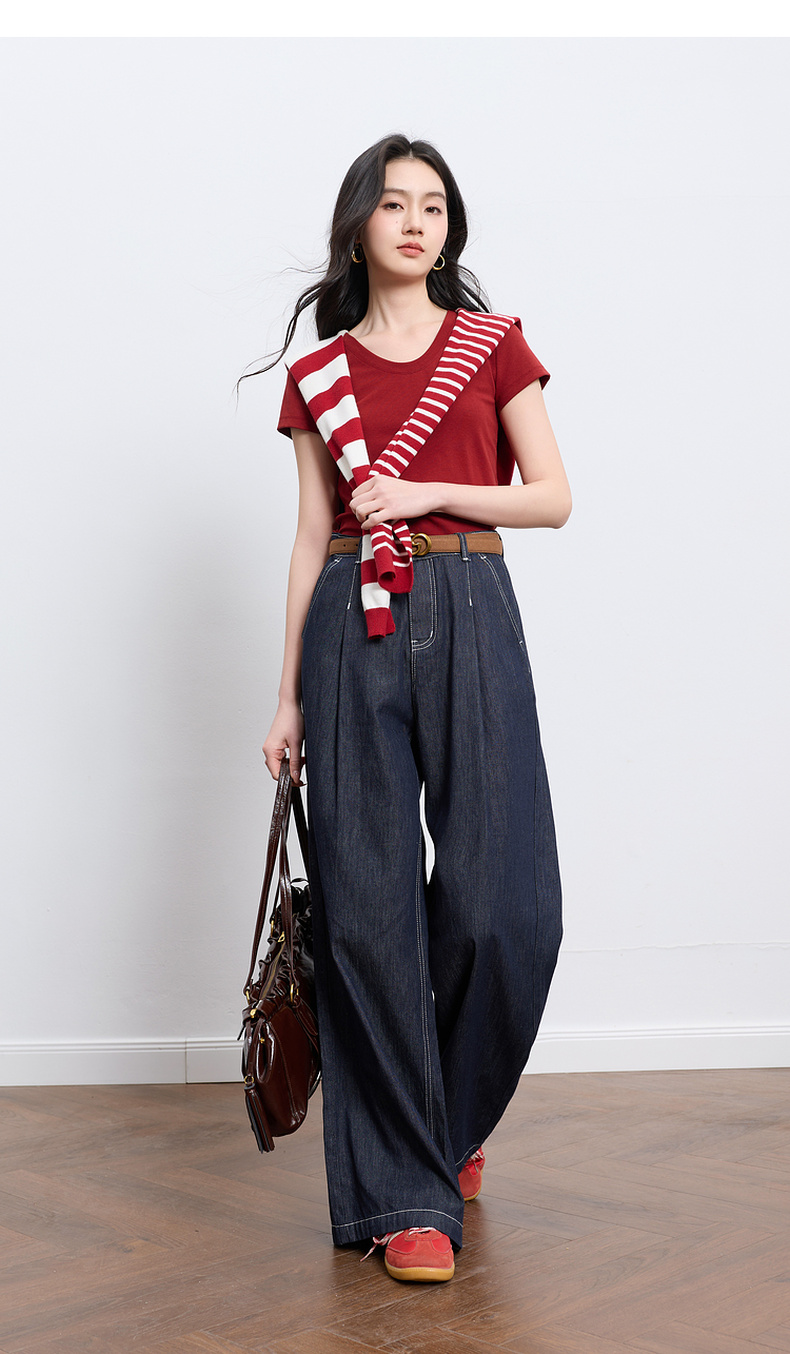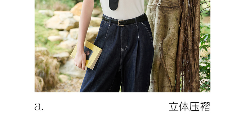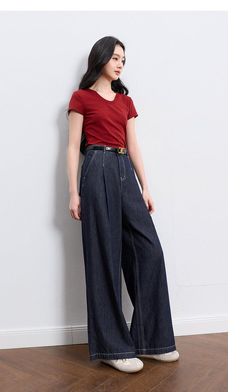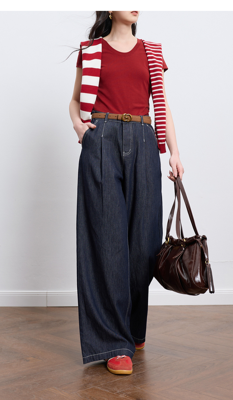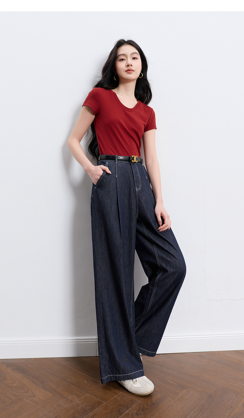 三彩2026春季新款复古休闲裤收腰阔腿裤原色牛仔裤长裤宽松垂感M