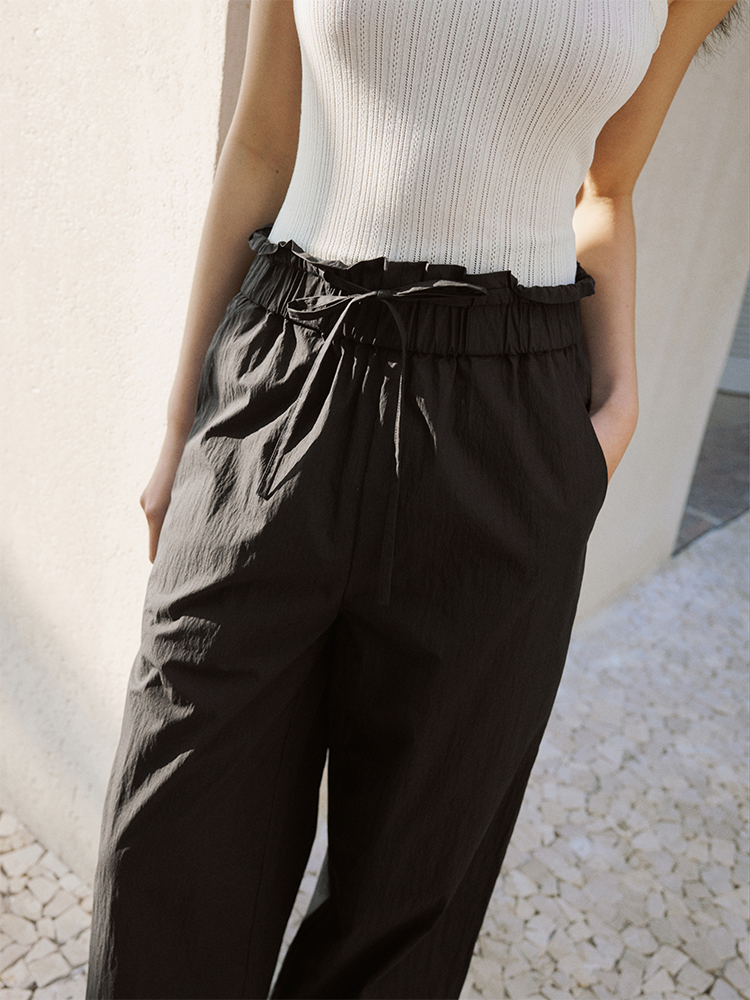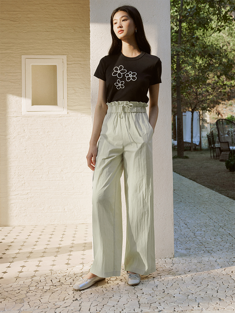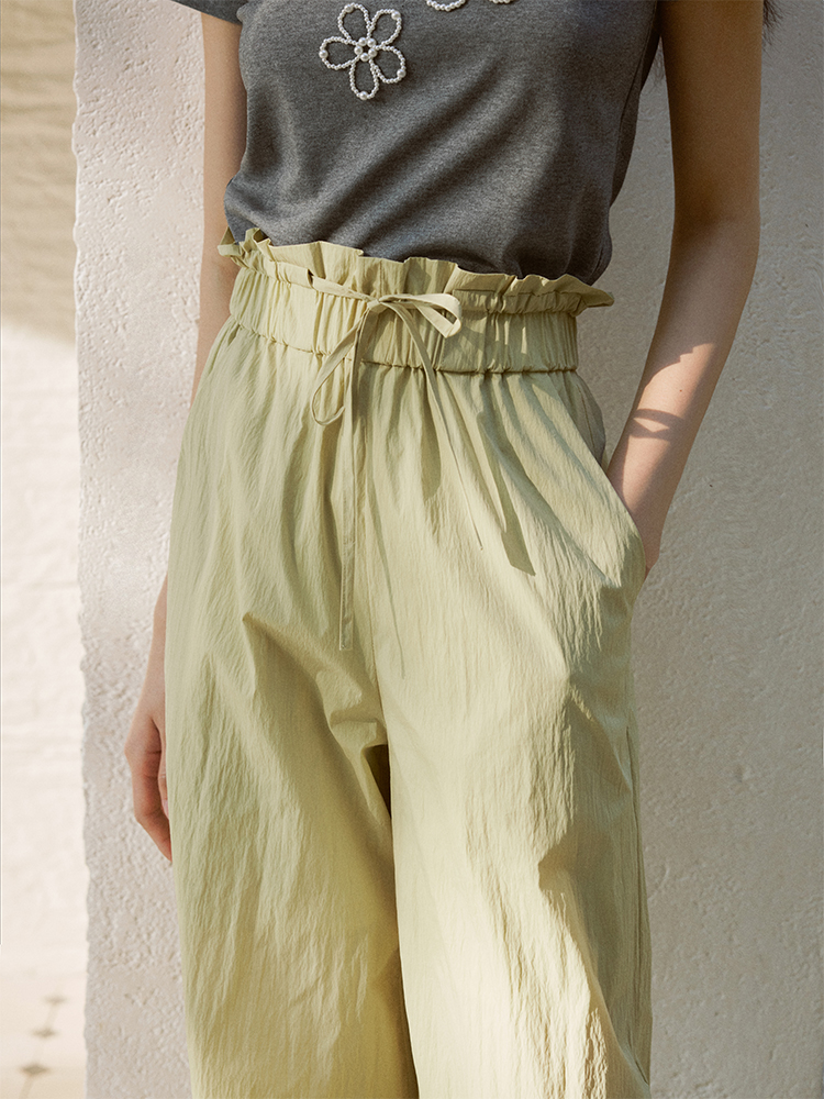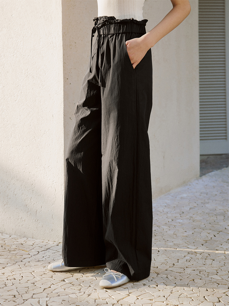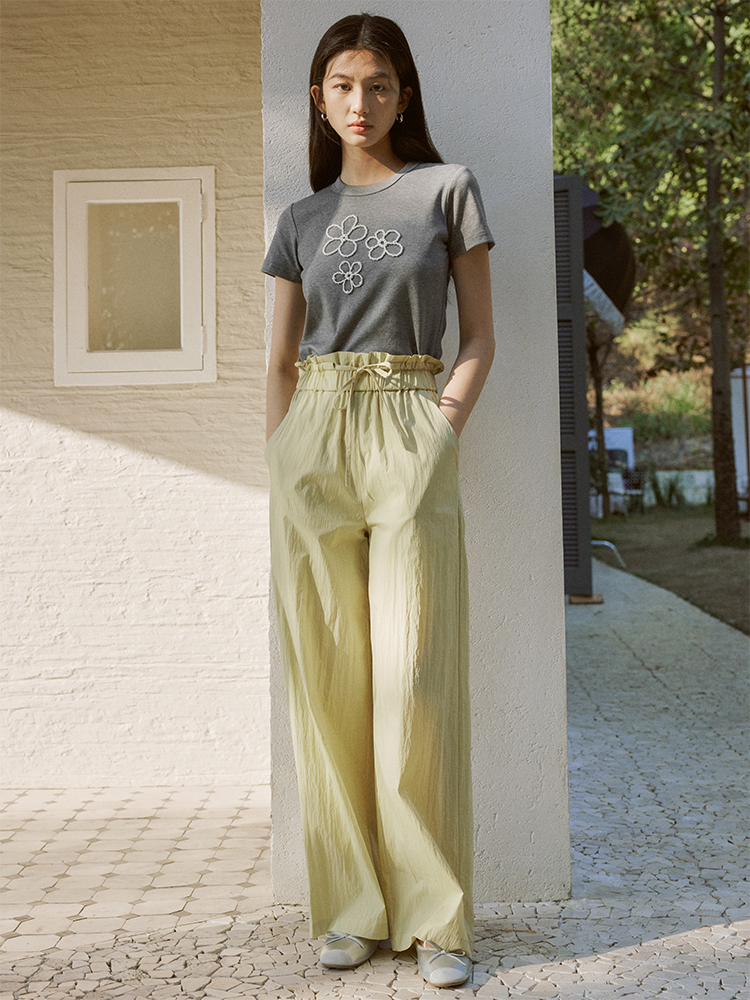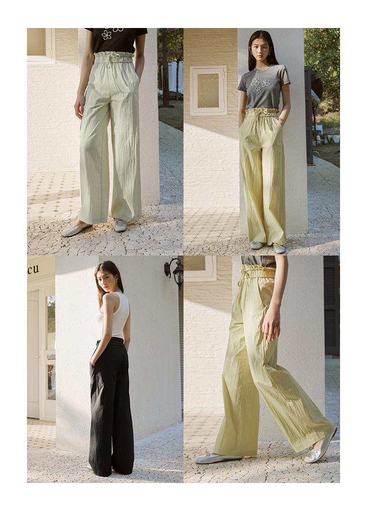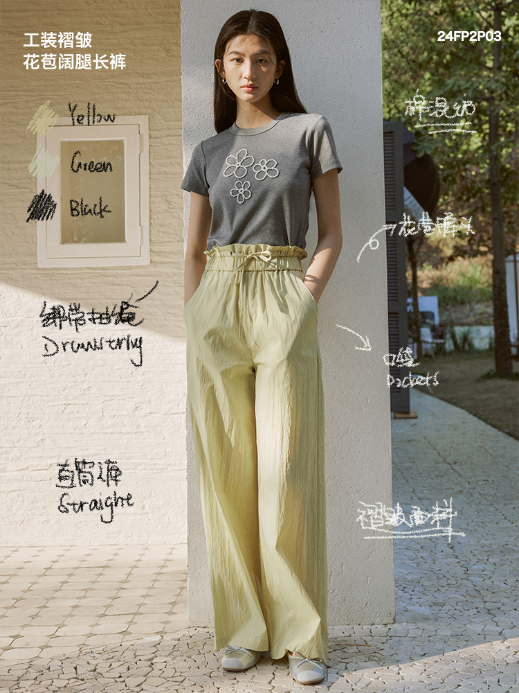 ForPoem 现货 24/SS原创设计工装褶皱花苞腰头阔腿长裤