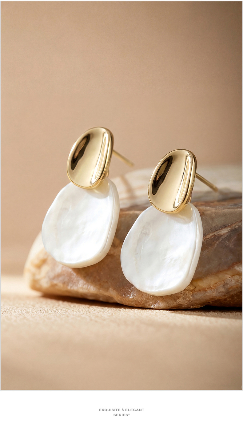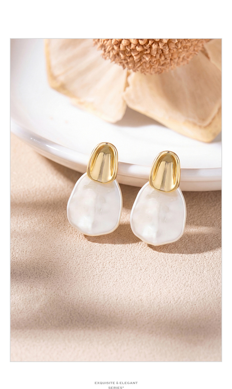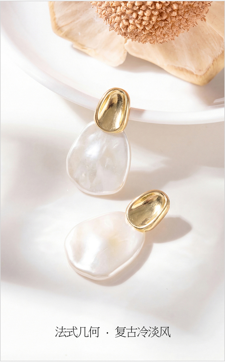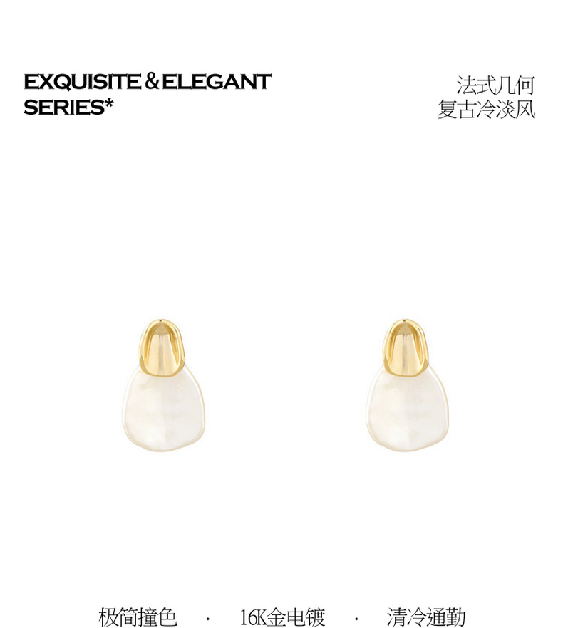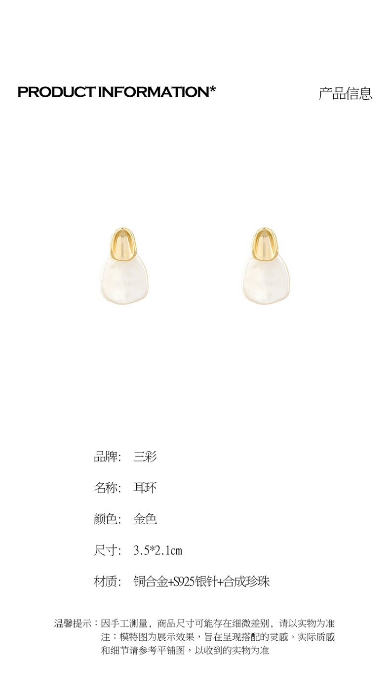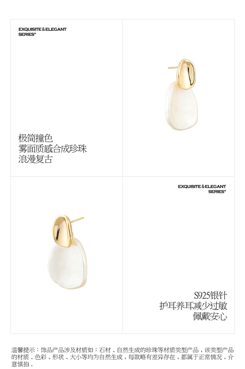 三彩2026新款撞色极简耳环S925银针金属雾面珍珠轻奢小众女