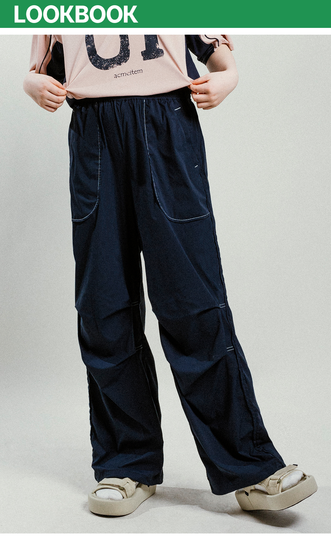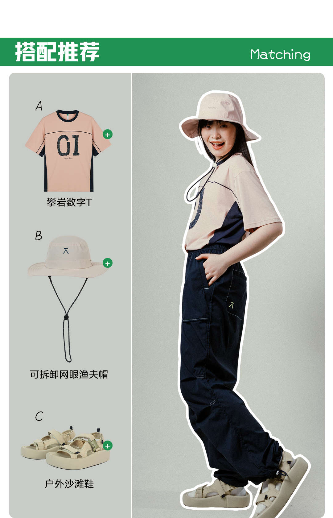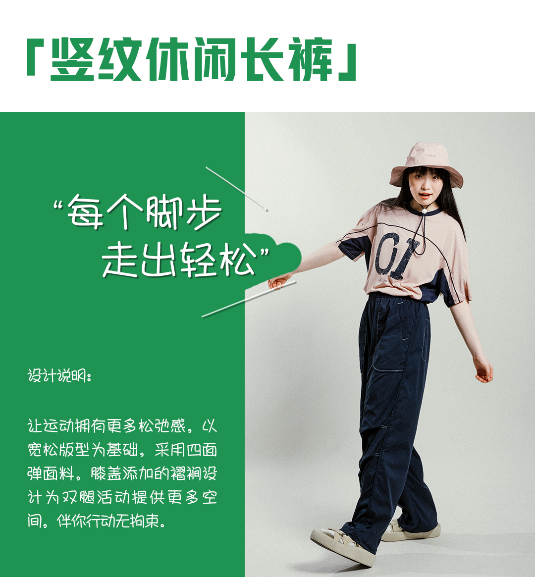 【出游季特惠】ACMEITEM爱棵米-户外防泼水竖纹休闲长裤可调节抗UV宽松裤子男女GAG3021010C