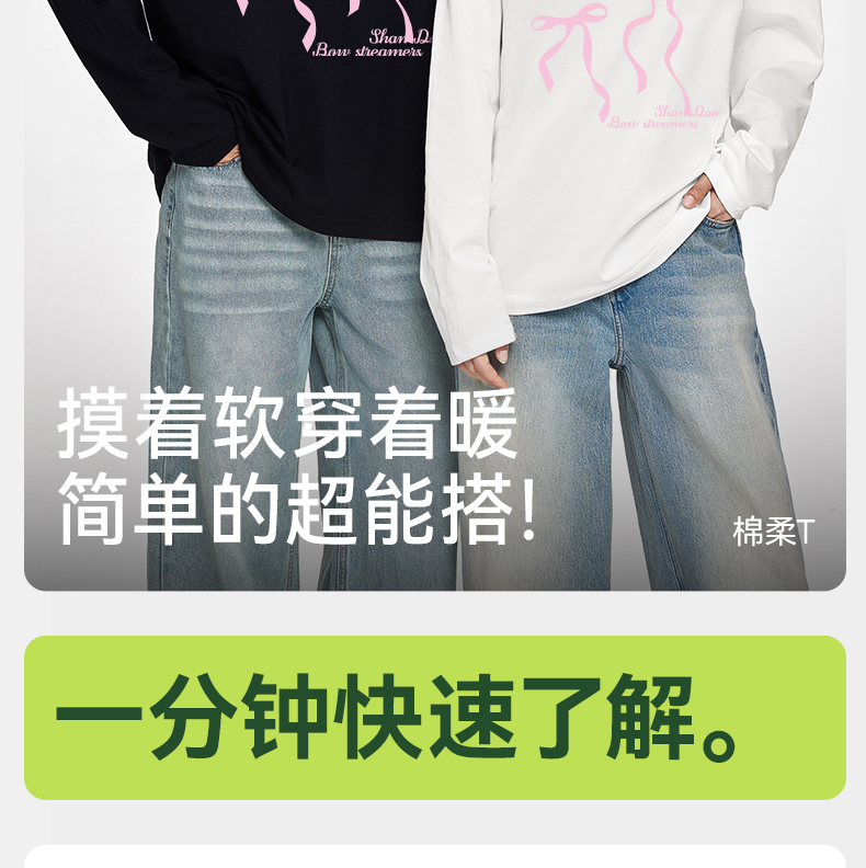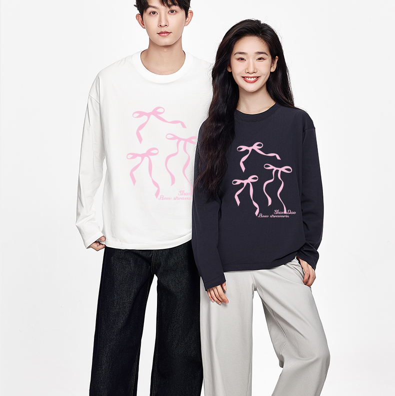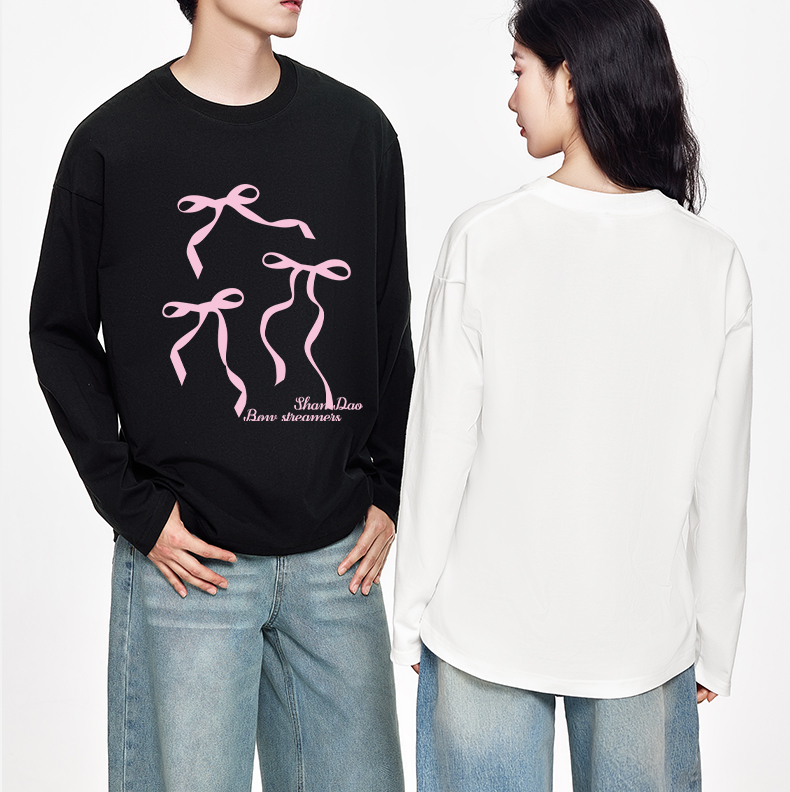 「棉的美学」纯棉蝴蝶结印花长袖T恤宽松休闲慵懒风日常打底上衣