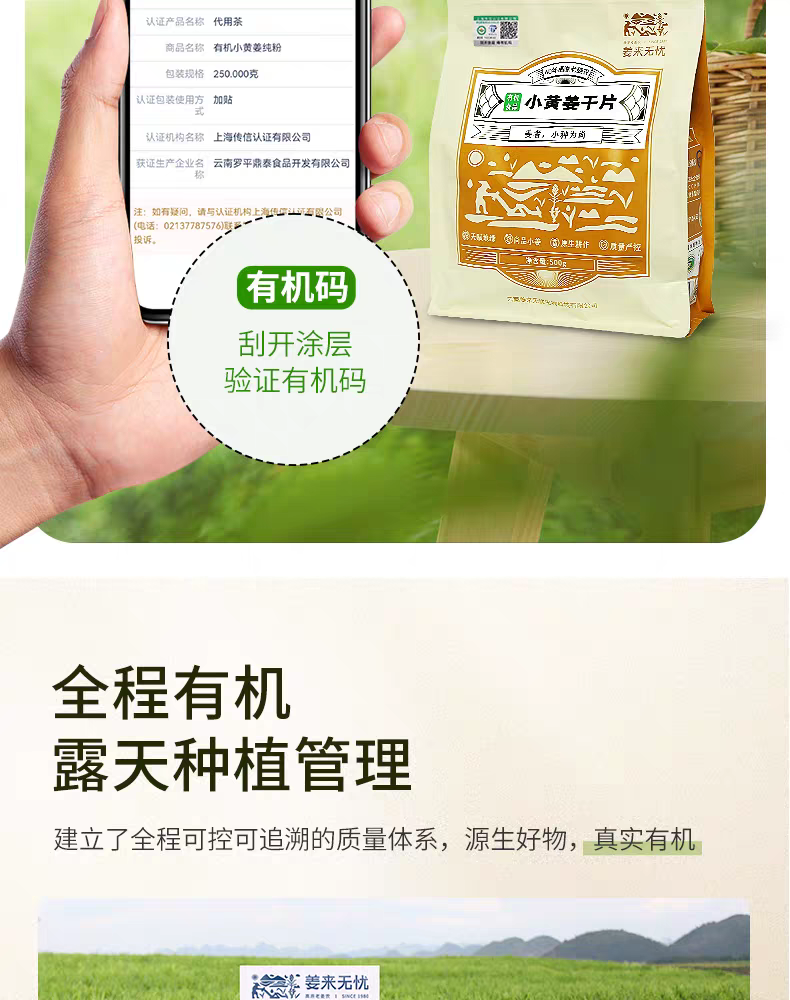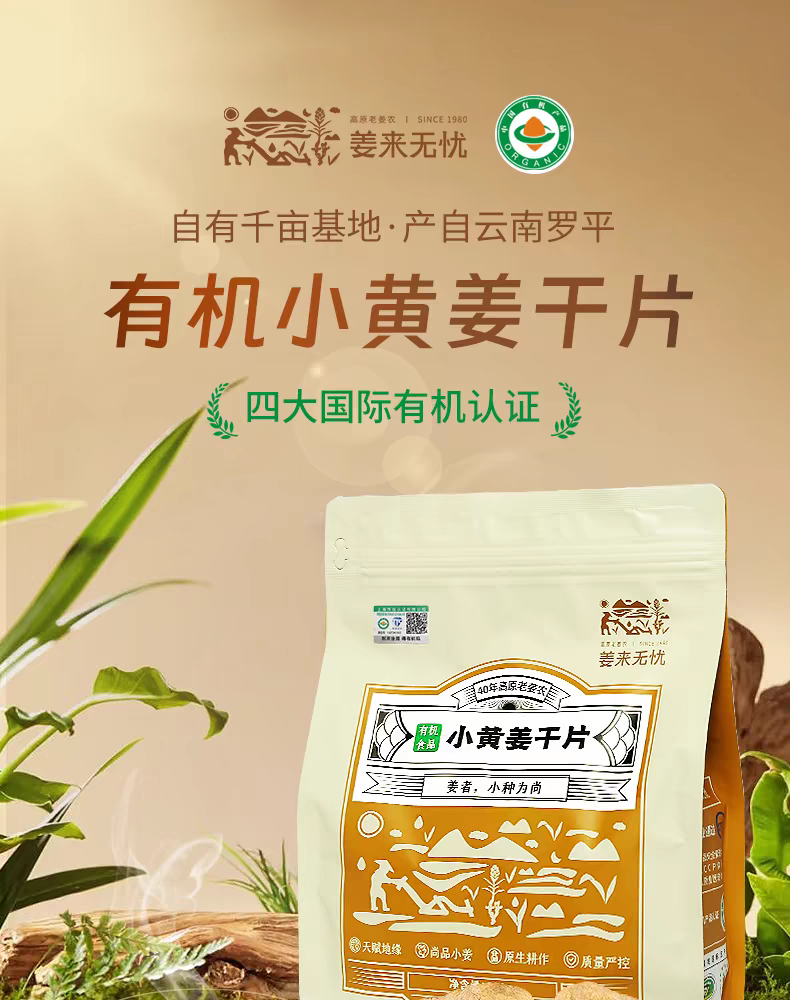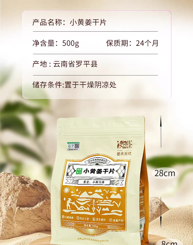【姜香弥漫】姜来无忧 有机小黄姜片 500g/袋 全程有机露天种植管理