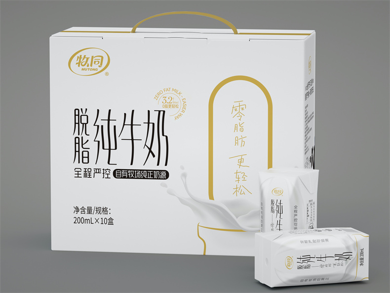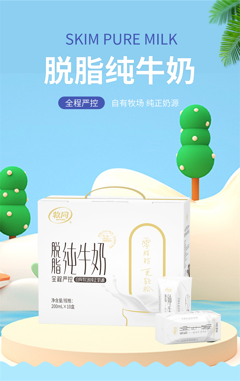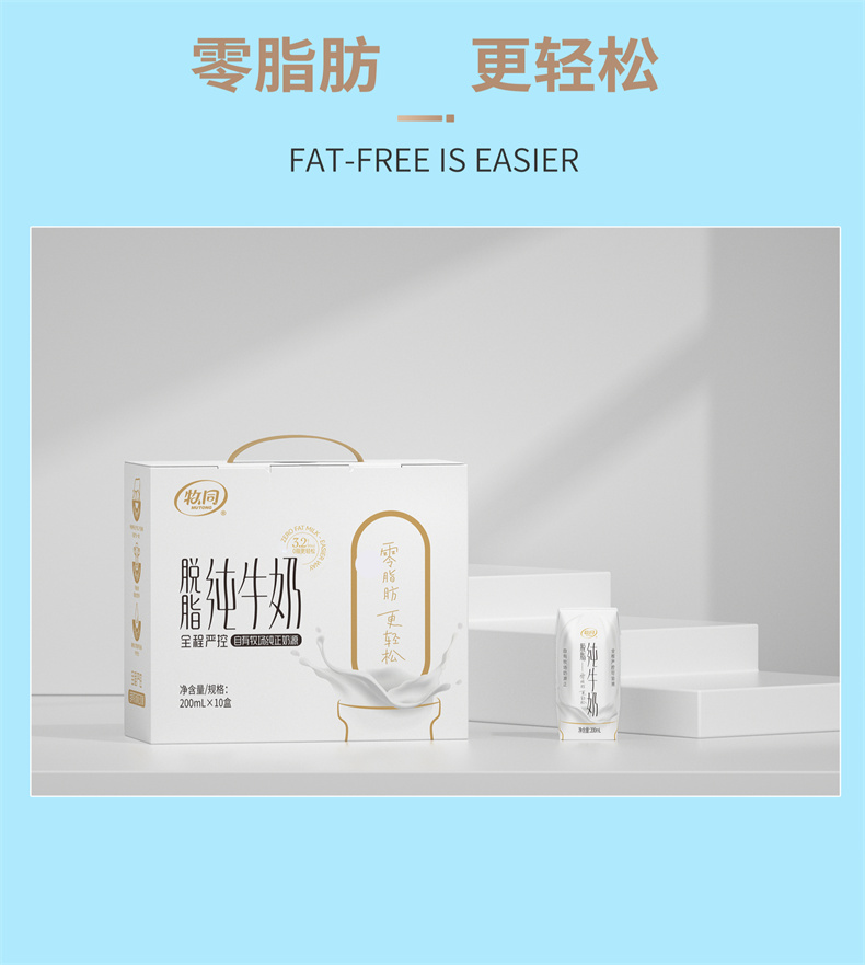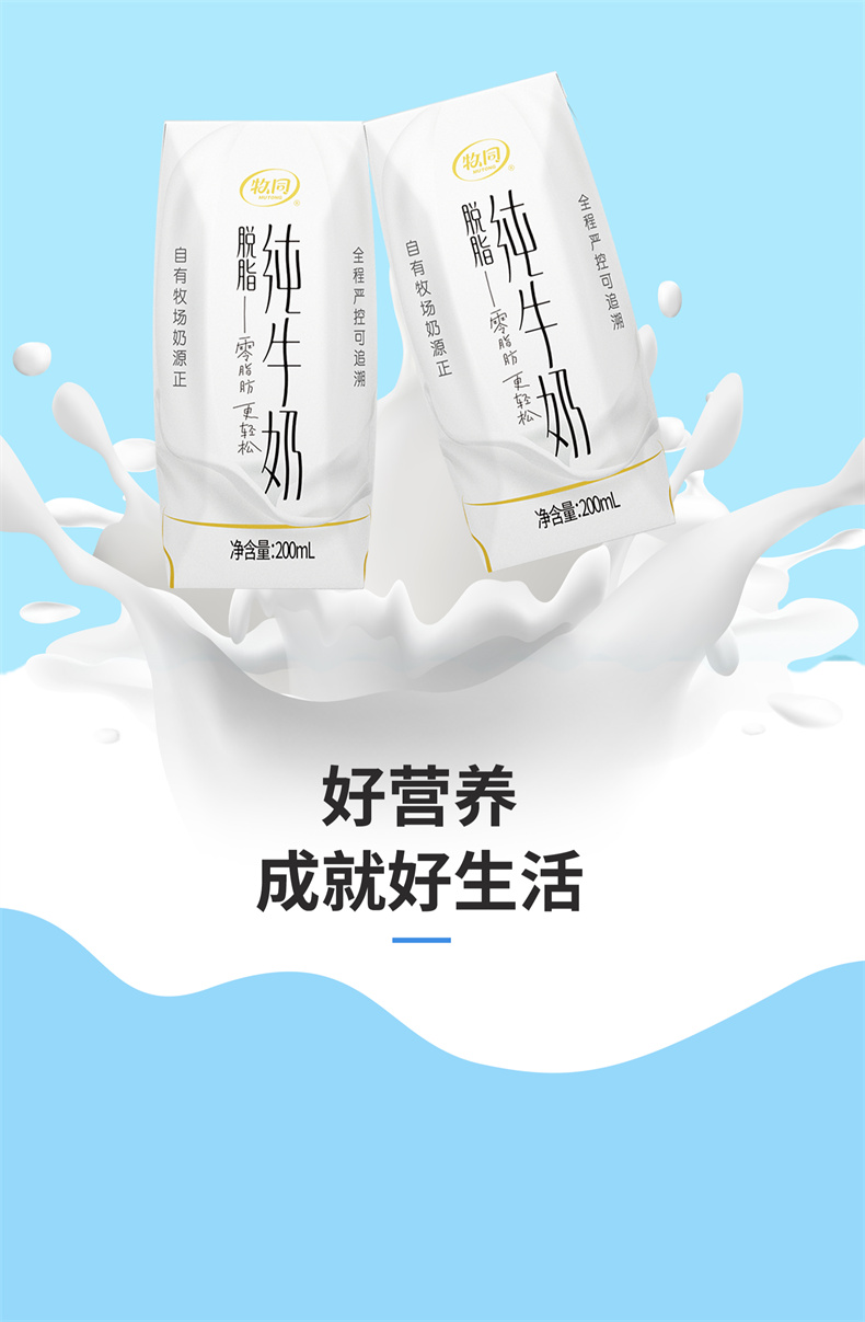 【牧同】脱脂牛奶要蛋白不要脂肪200ml*10盒/箱
