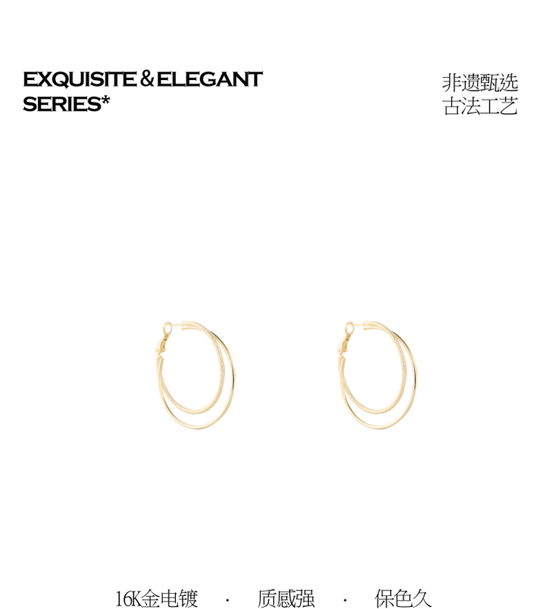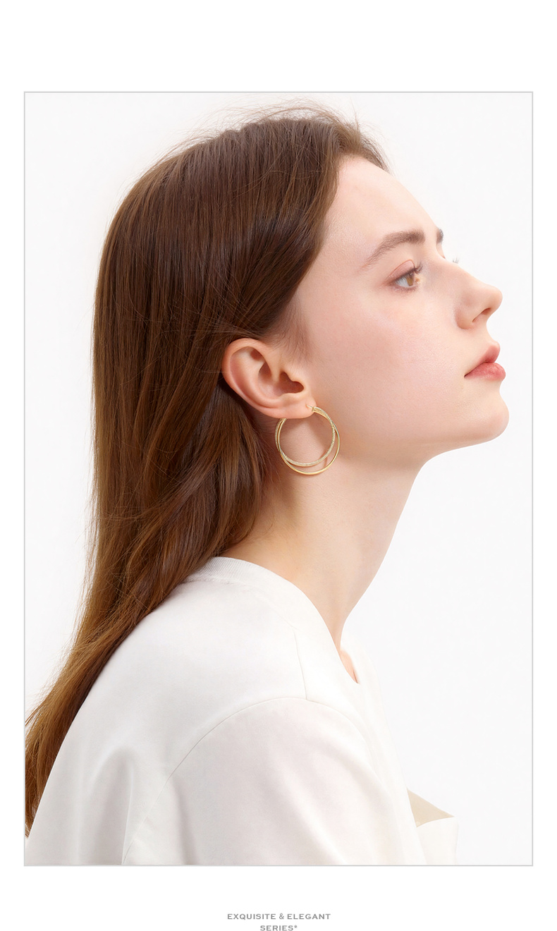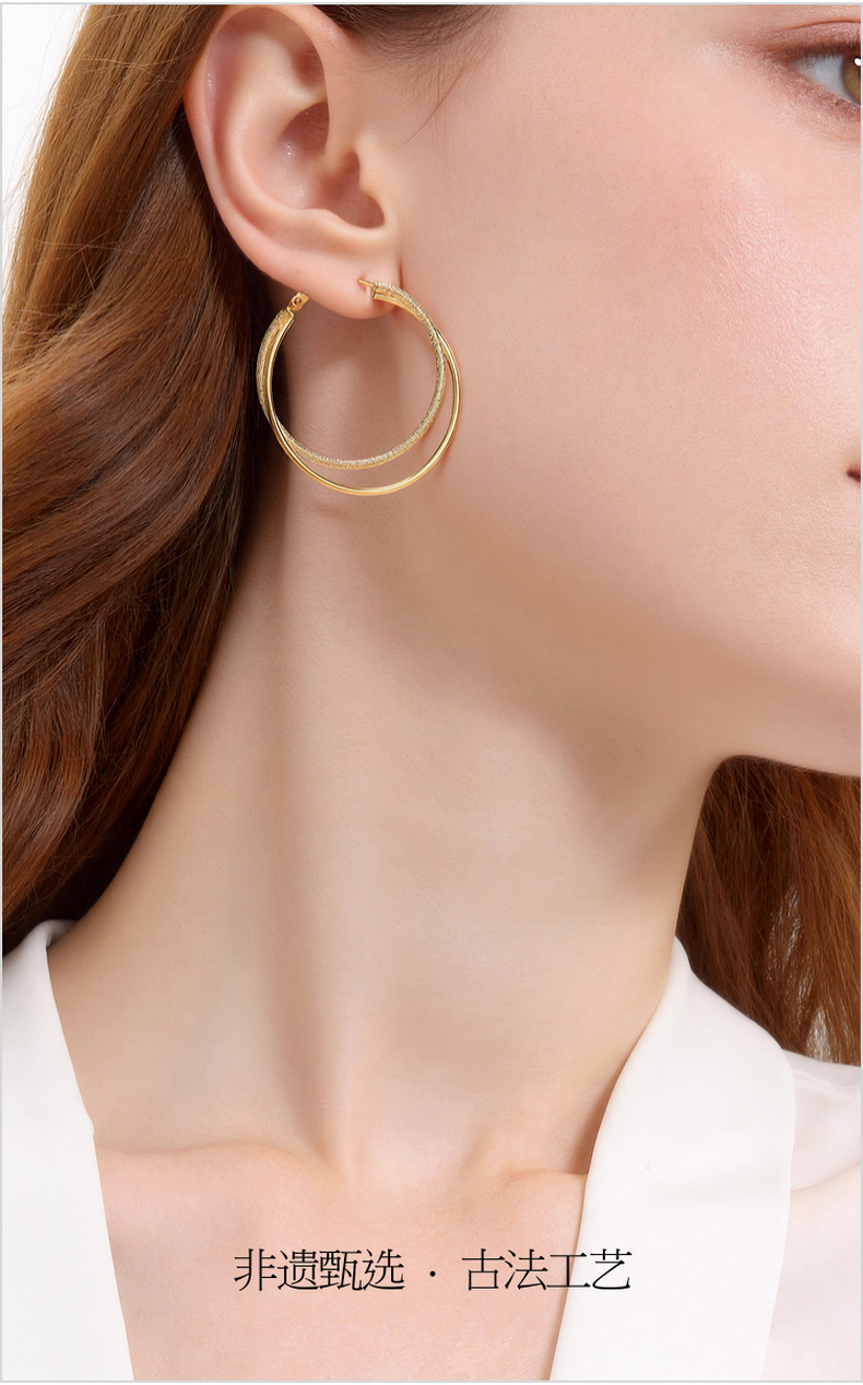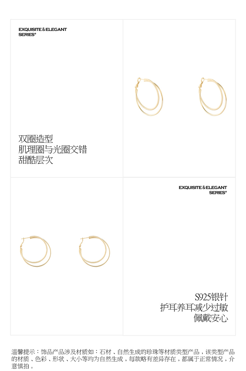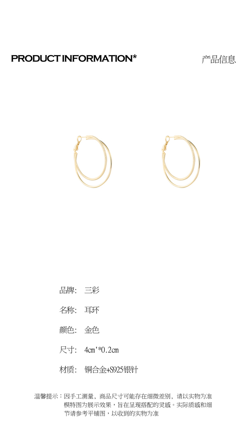 三彩2026新款双圈肌理纹镀金耳环S925银针复古大圈通勤轻熟简约