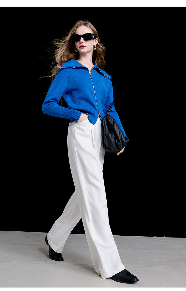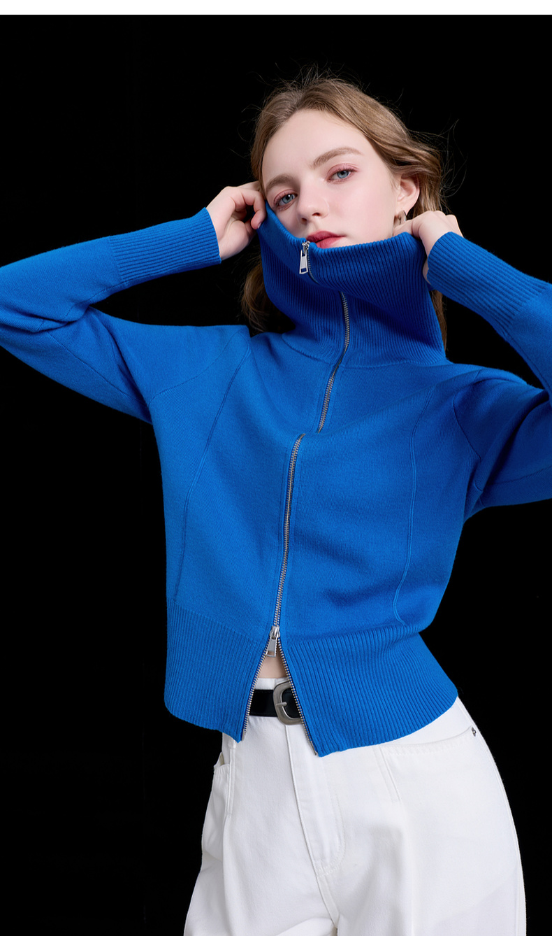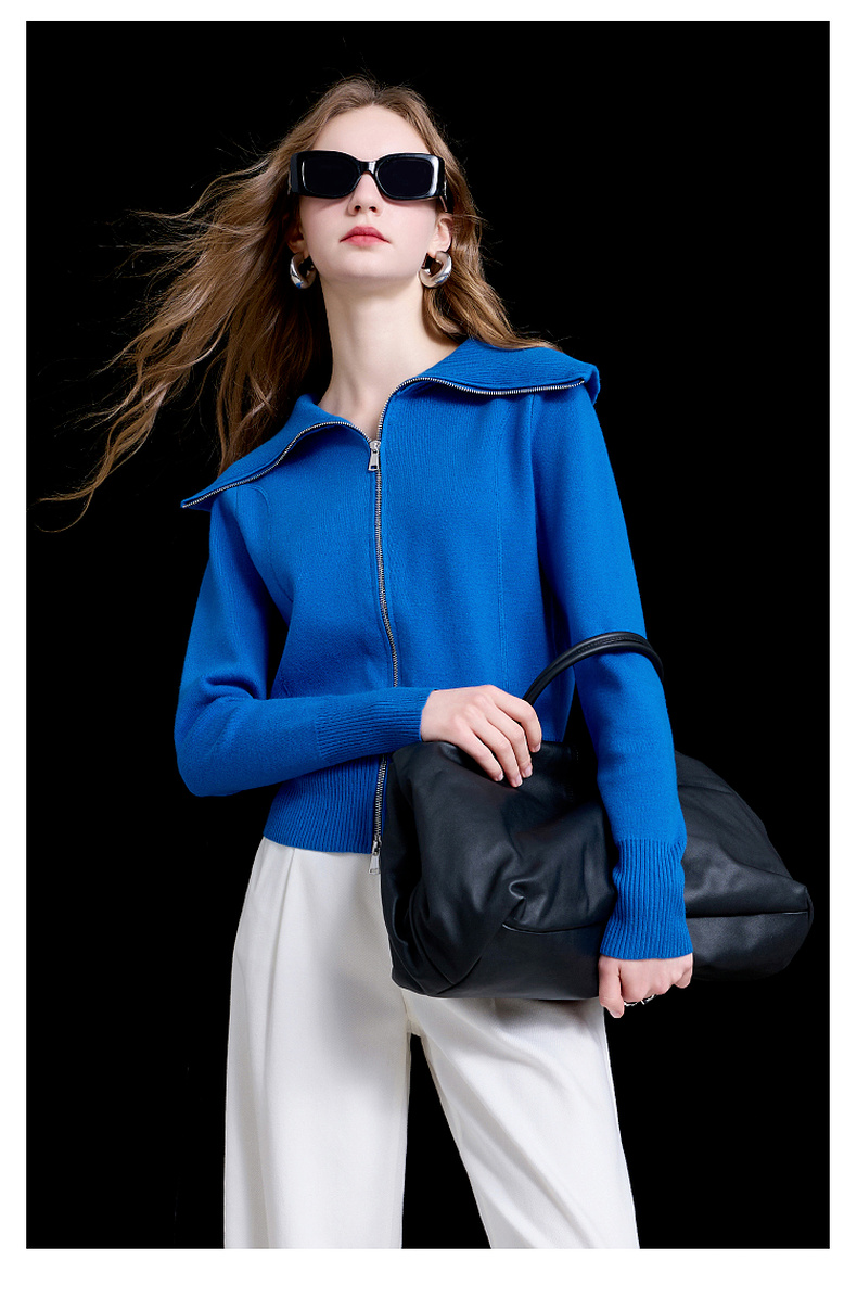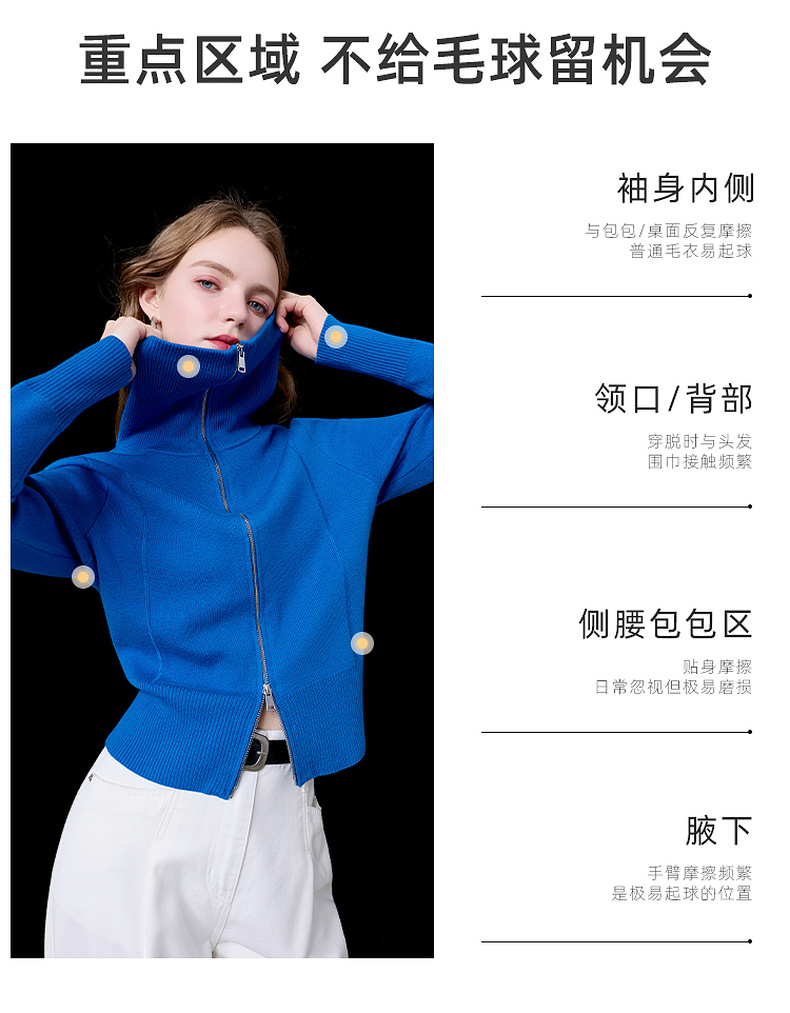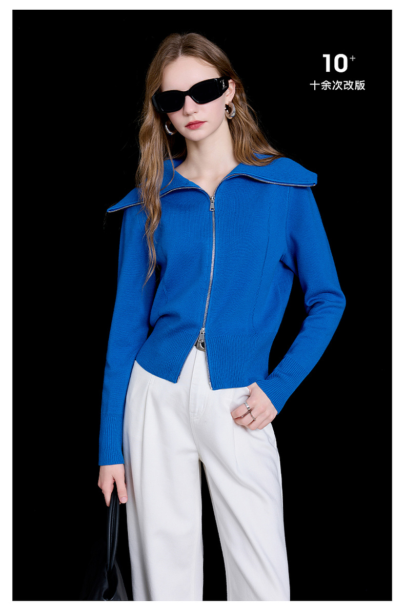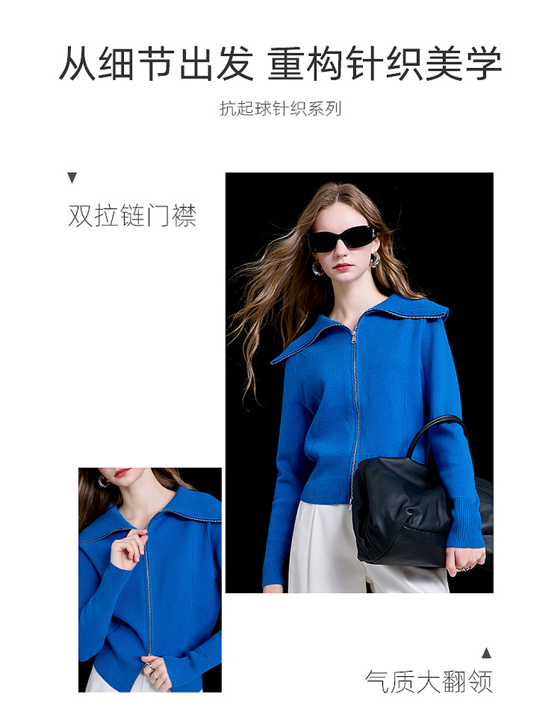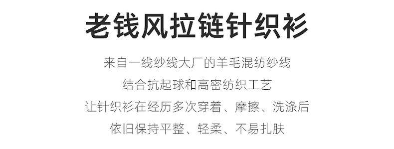 【抗起球】三彩2025冬季新款翻领针织衫长袖拉链开衫上衣毛衫M