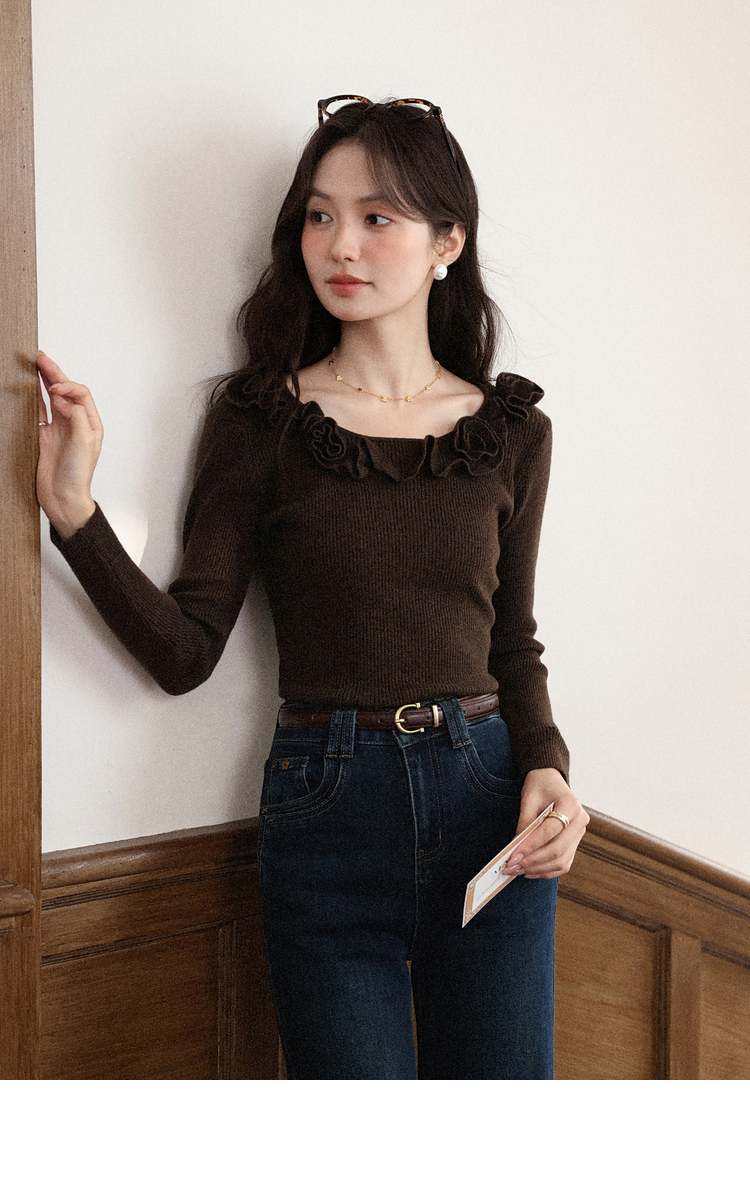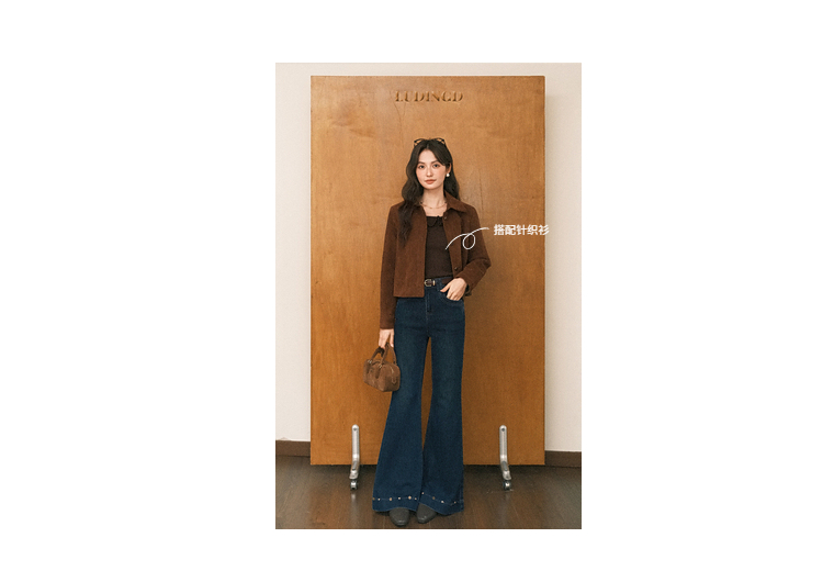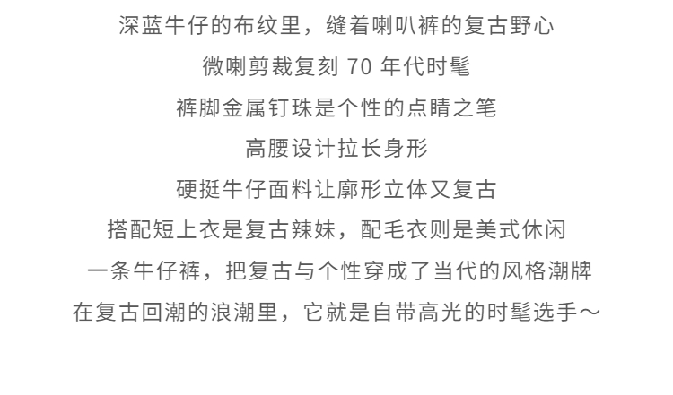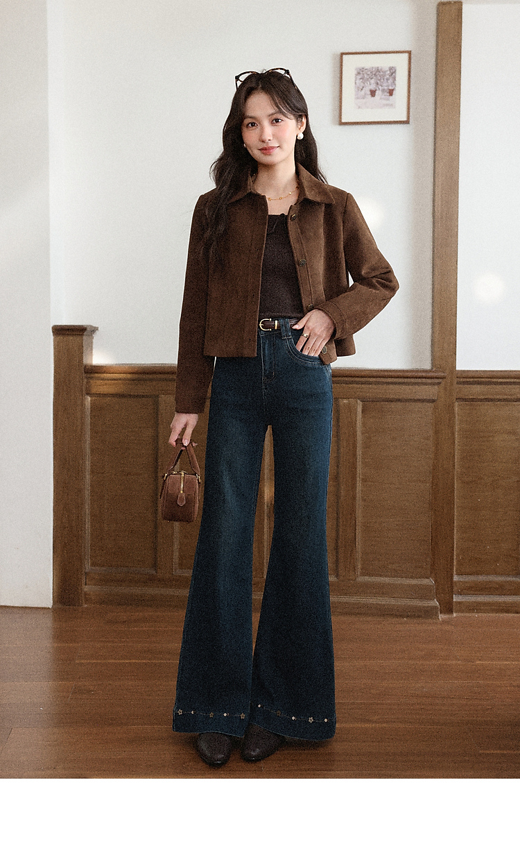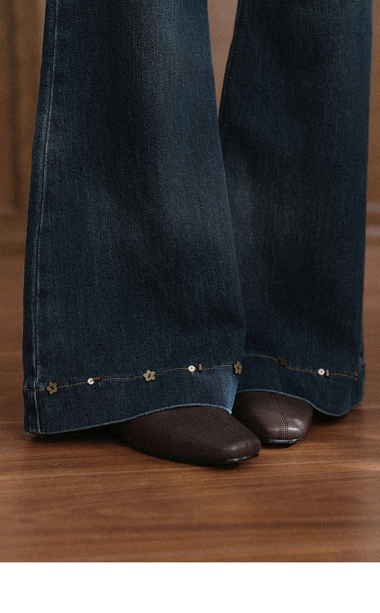 鹿向南「闲暇时光」蓝色显瘦气质微喇牛仔裤女秋新款高腰直筒长裤