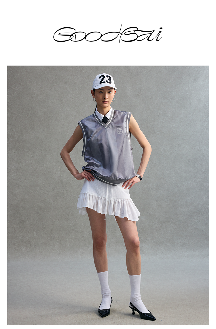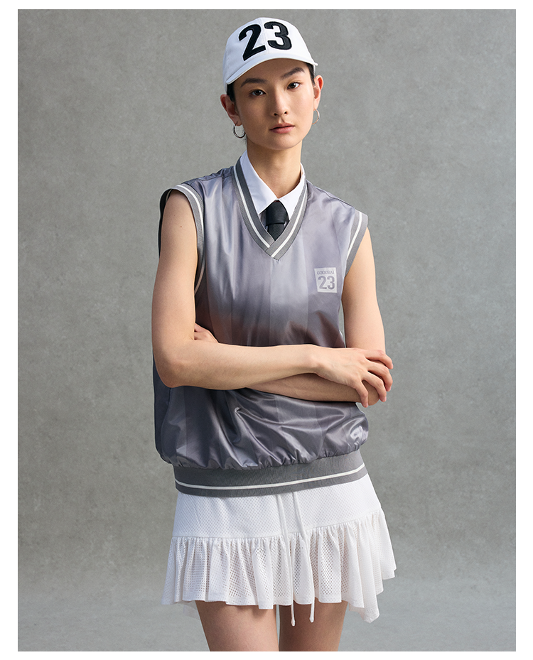 GOODBAI 23编号签名印花V领条纹质感薄背心