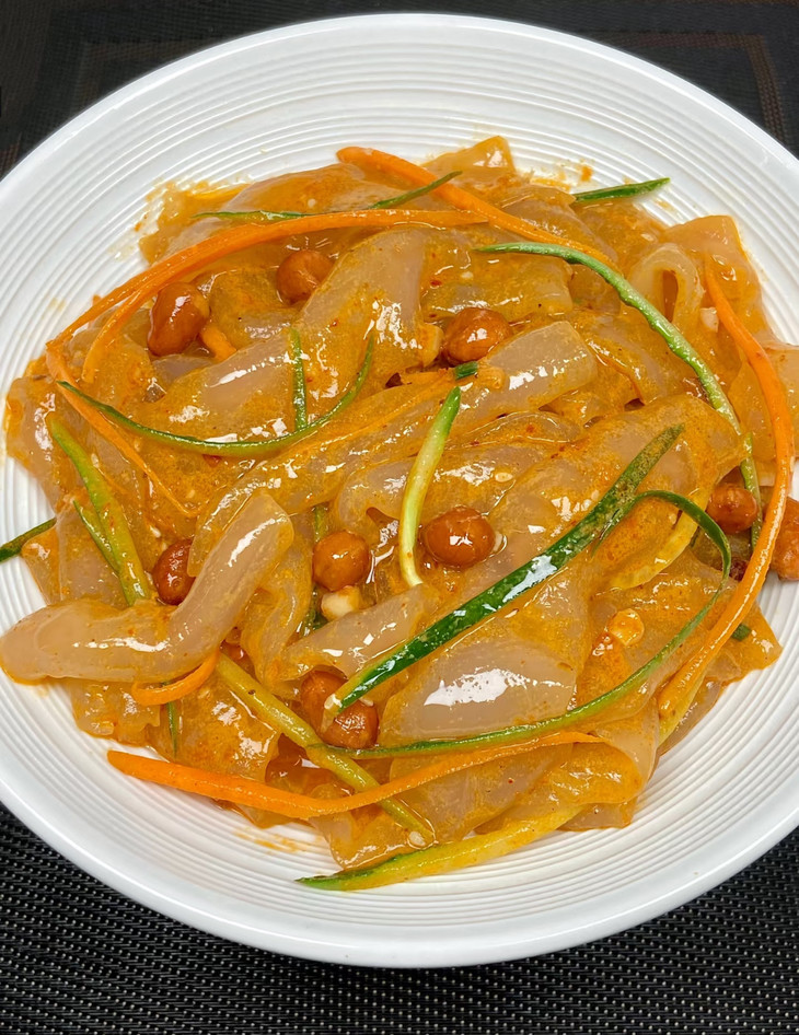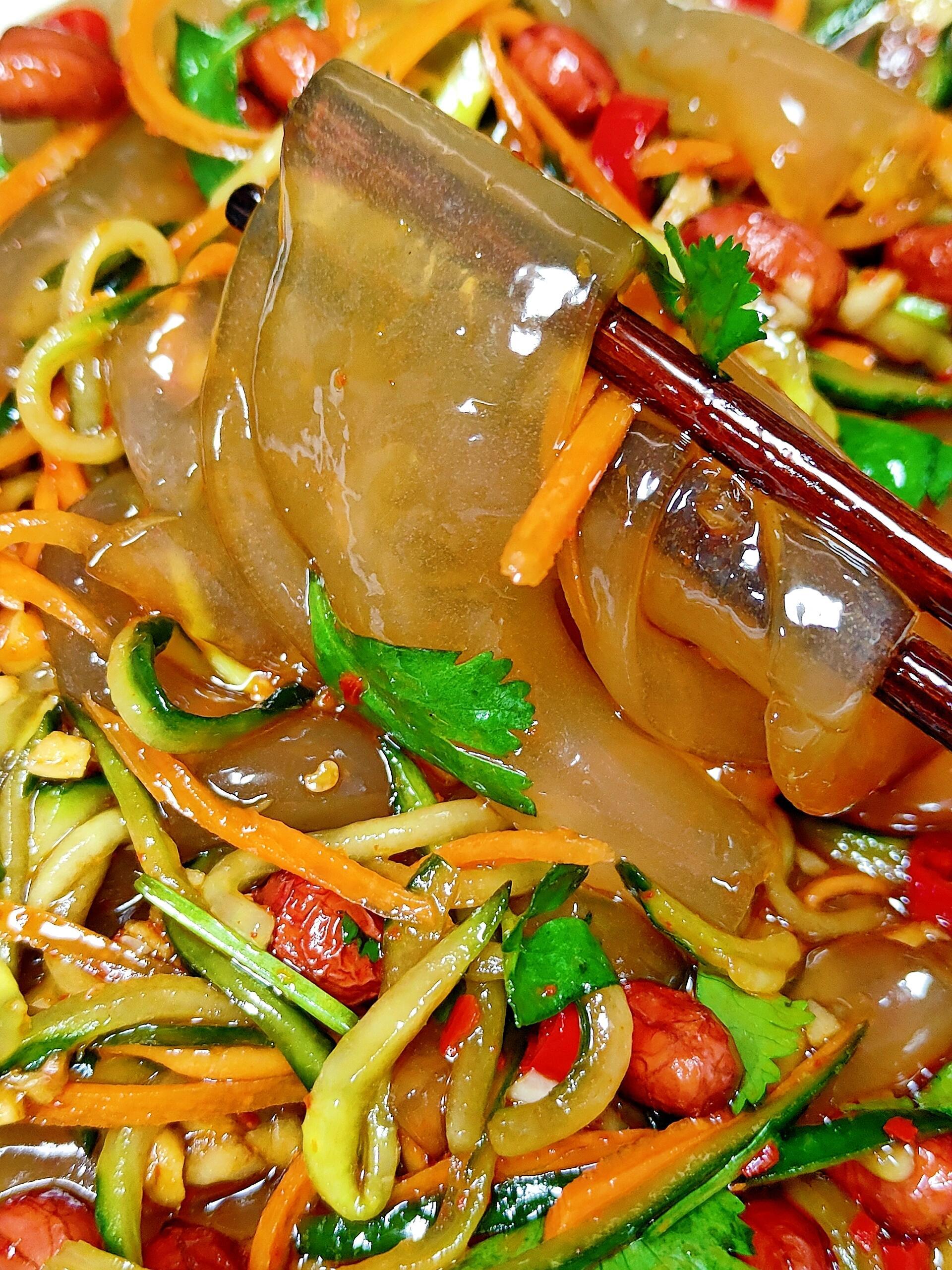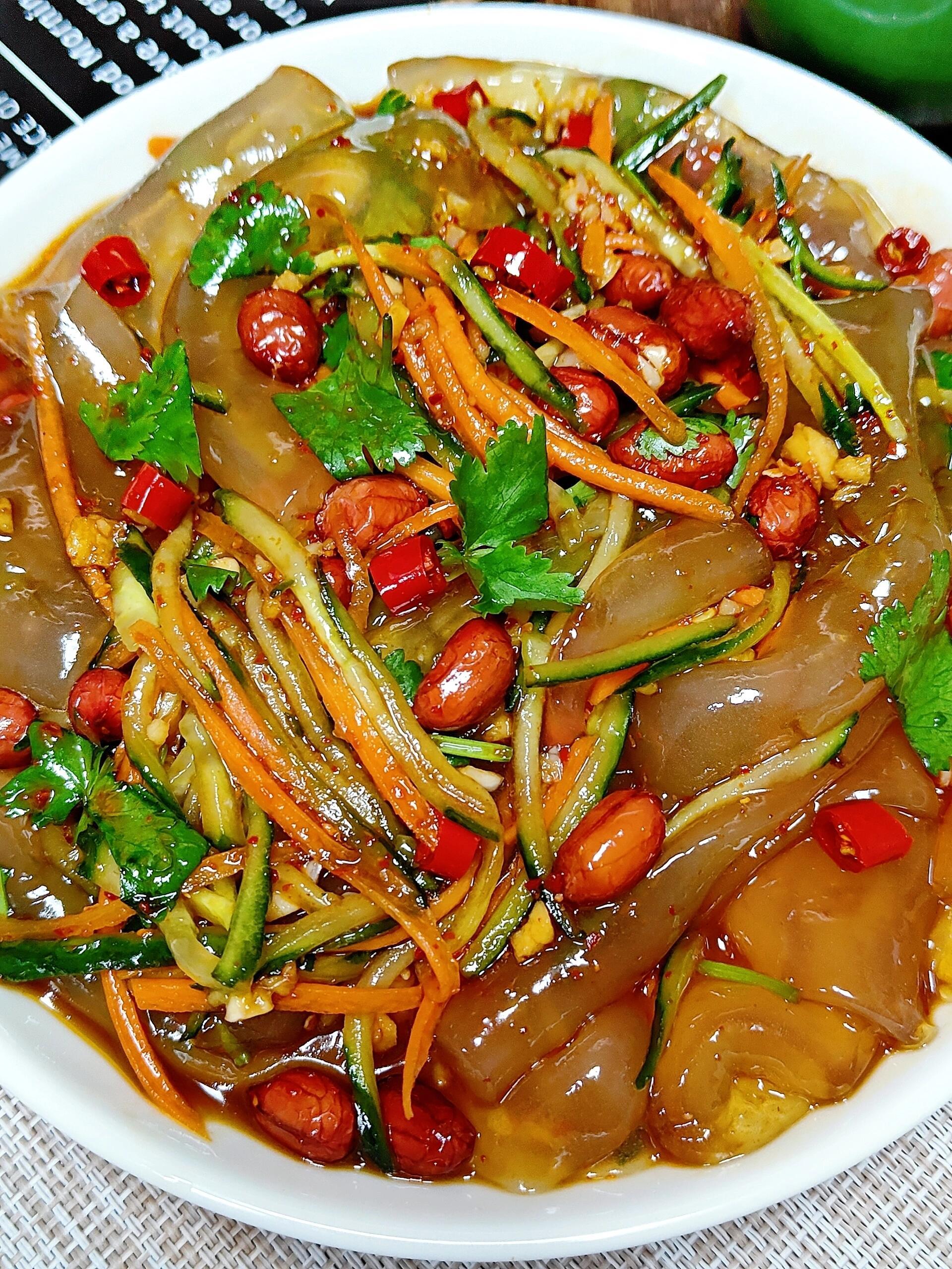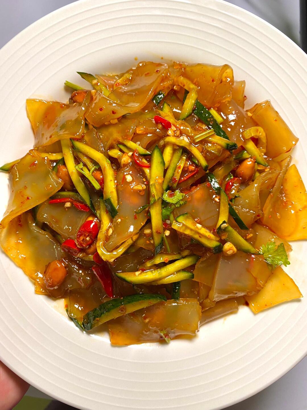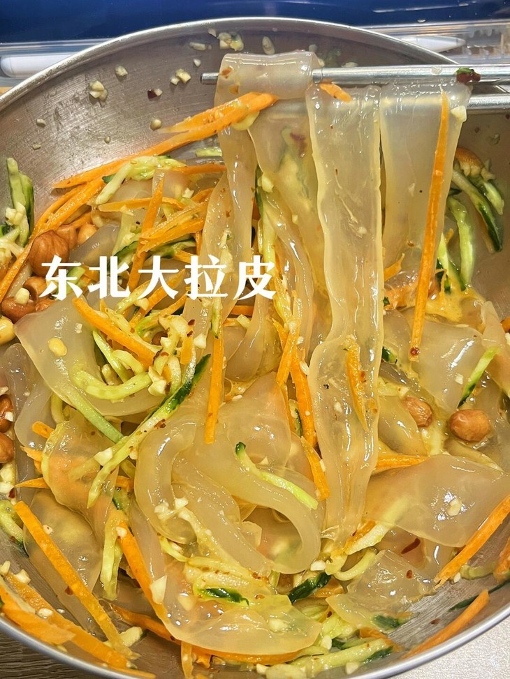 东北水晶大拉皮 不夸张,我吃一个夏天都不腻🤣 夏季经常食欲不振 还不想做饭🍳 那这盘东北大拉皮🌶️ 也是三五分钟就能做好的快手菜 入口劲道爽滑,清爽不腻💦💦 比嗦粉还停不下来~
