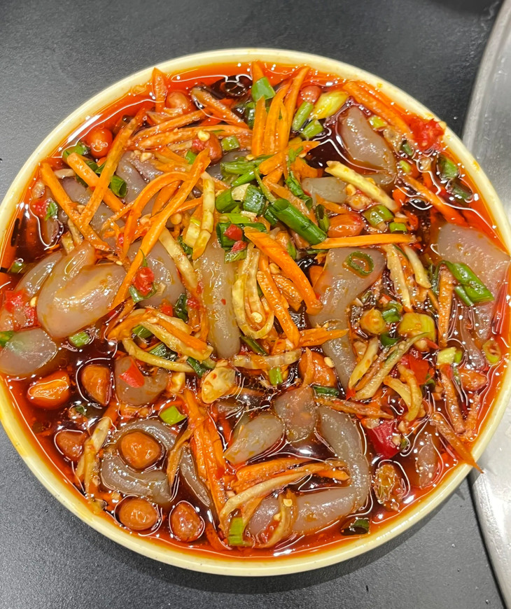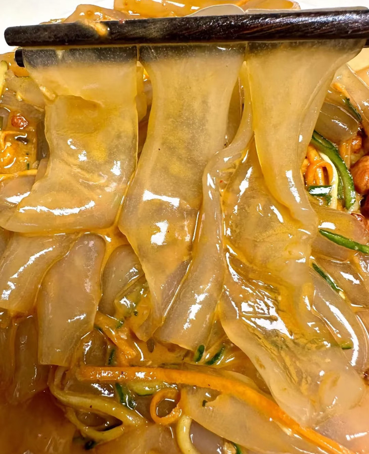 好的大拉皮是白如玉的透明模样,💦💦 吃到嘴里如膏脂一般,很润很Q弹! 而这款就是这样😋 吃到嘴里口感真的巨Q弹 那种治愈系的感觉 真的只有吃过的才知道💕💕