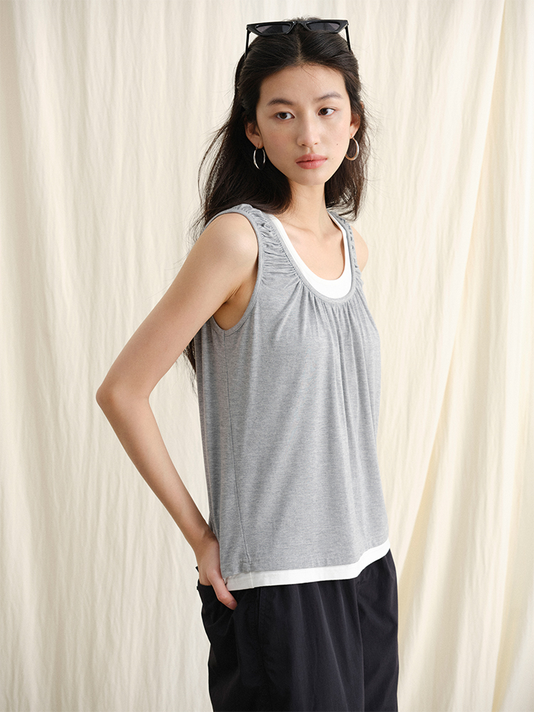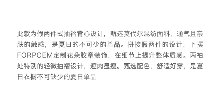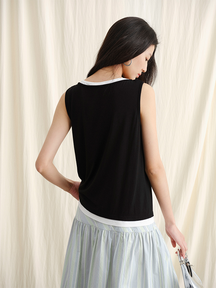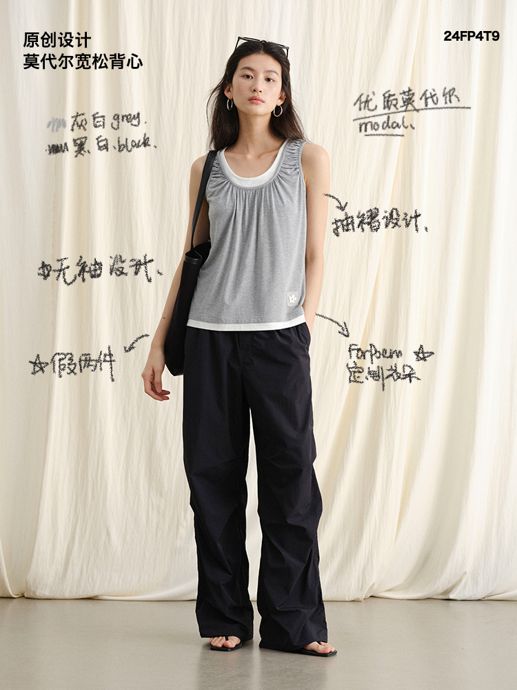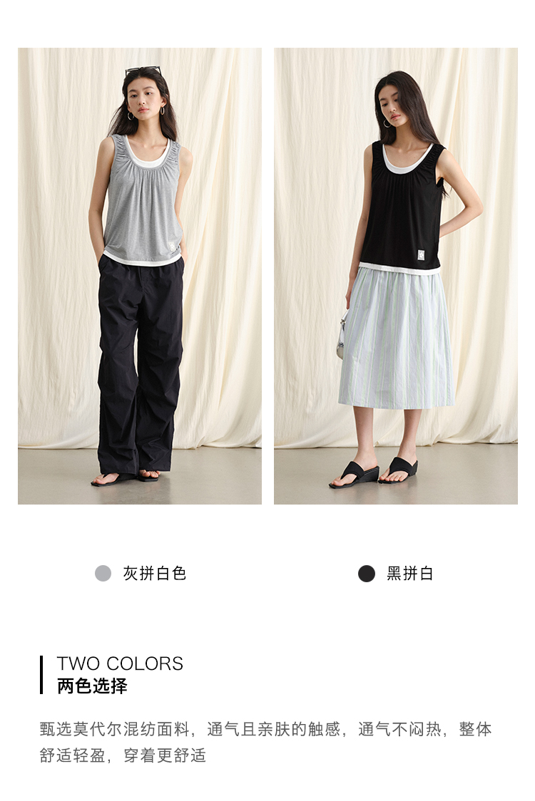 ForPoem 现货 24/SS原创设计休闲简约百搭假两件百搭莫代尔宽松背心