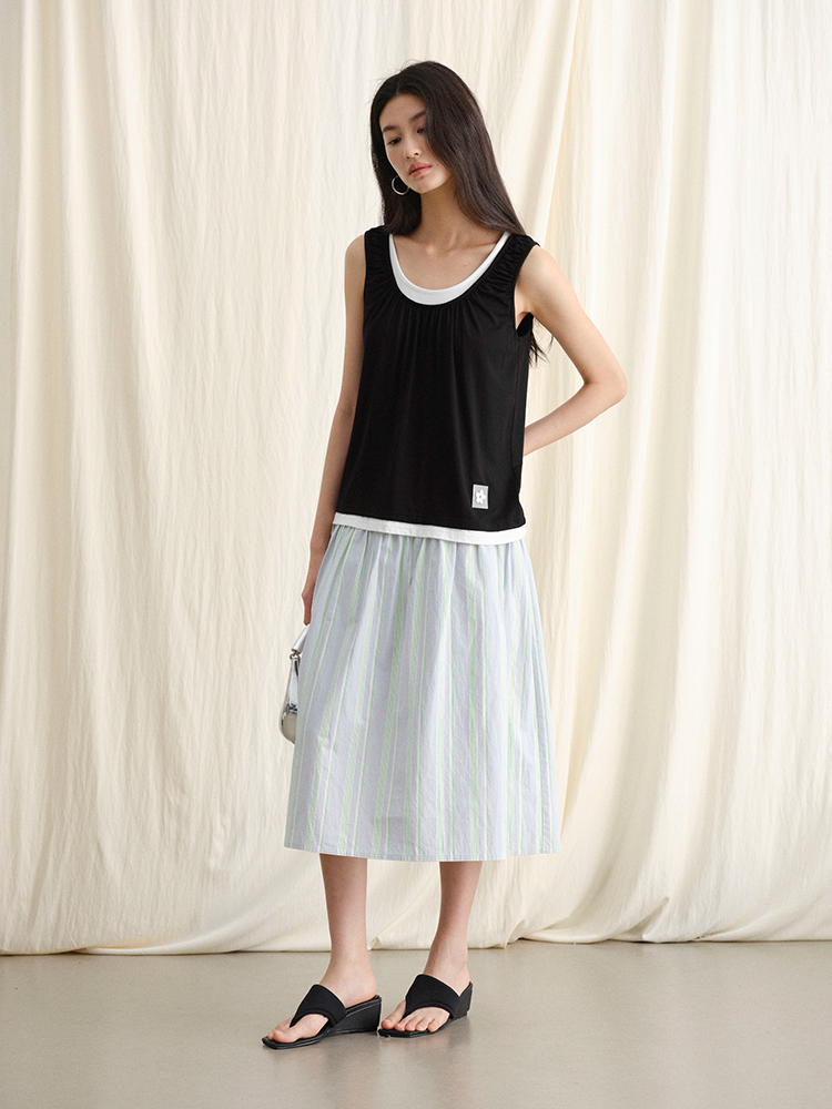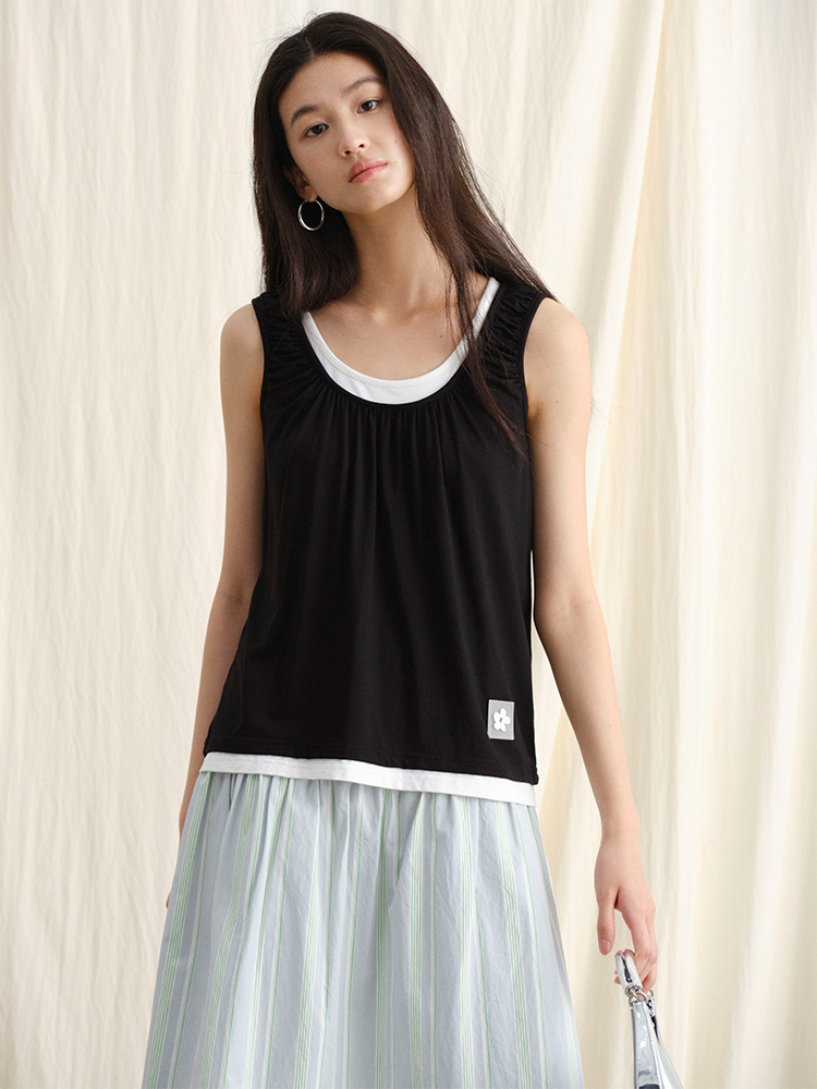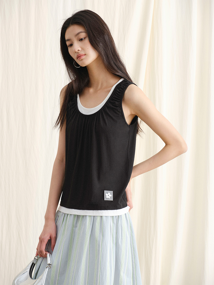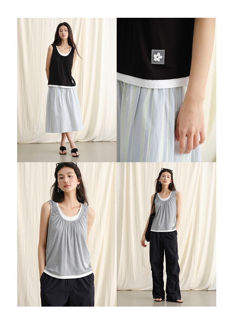 ForPoem 现货 24/SS原创设计休闲简约百搭假两件百搭莫代尔宽松背心