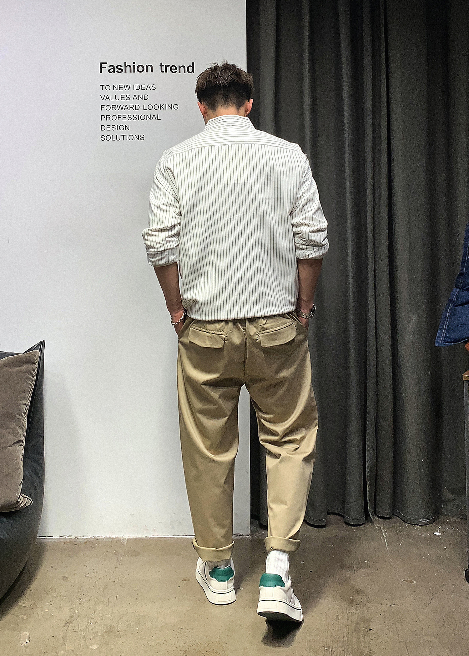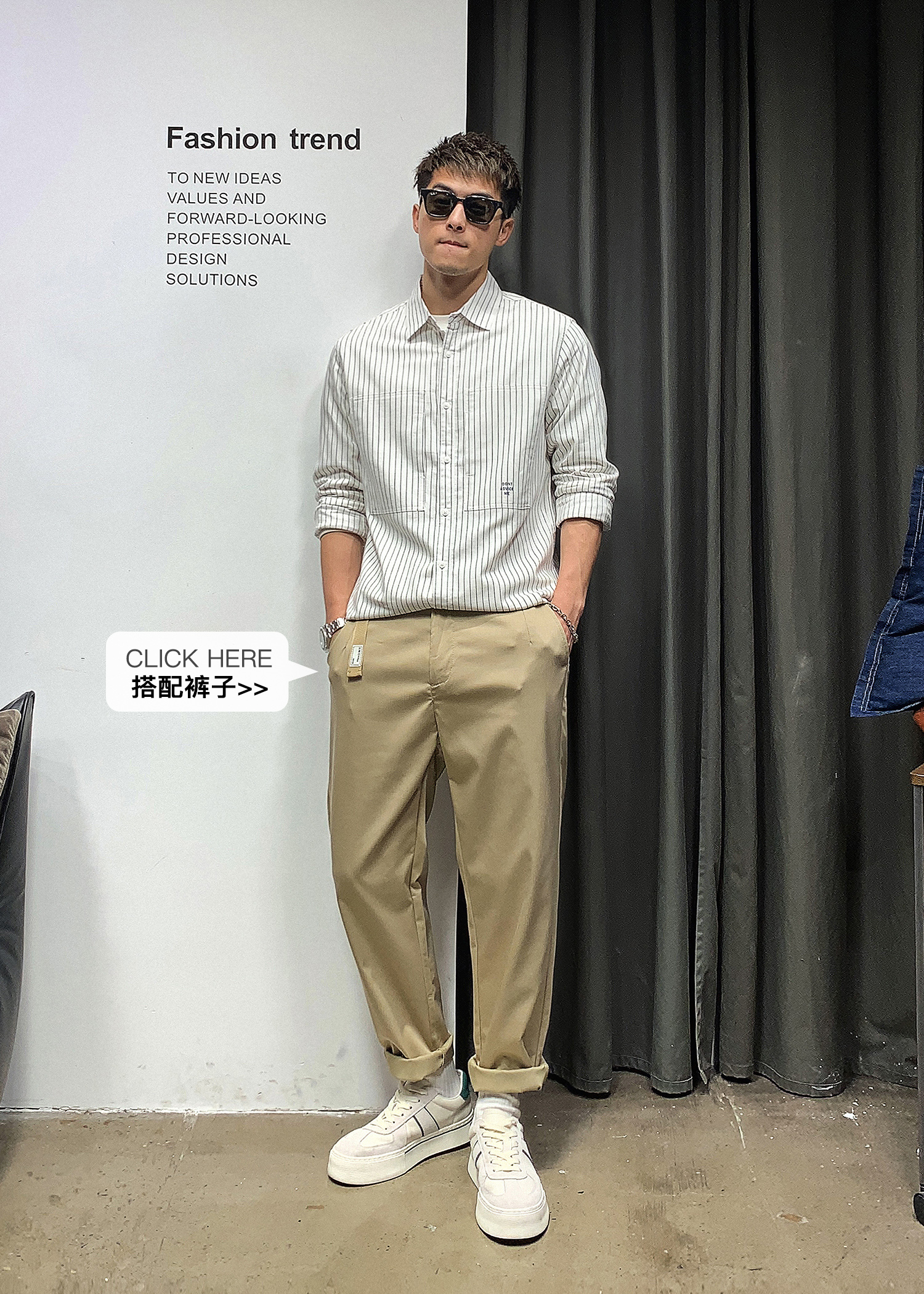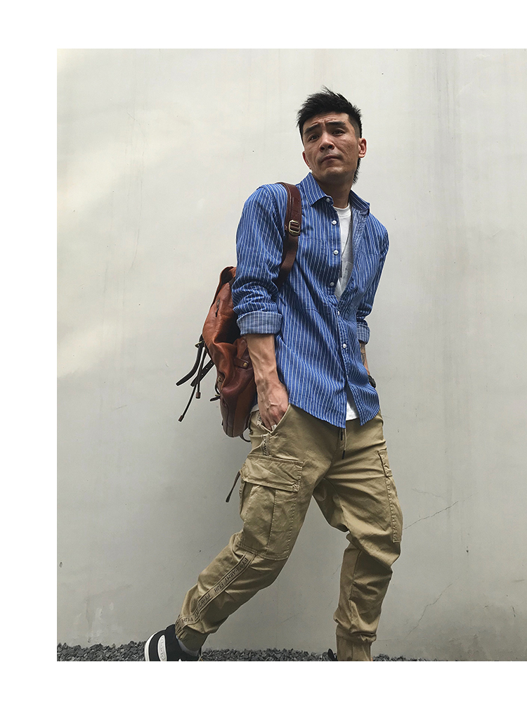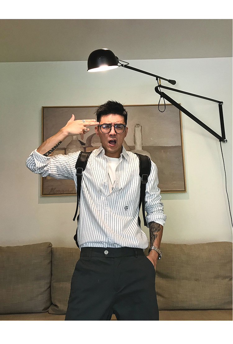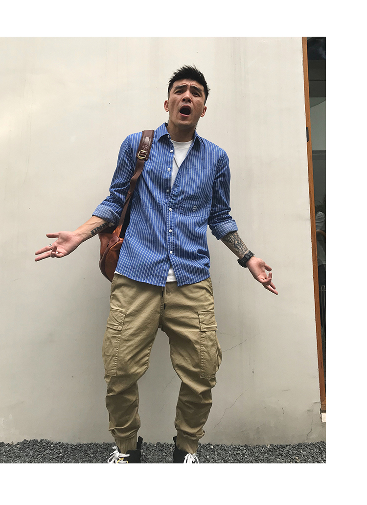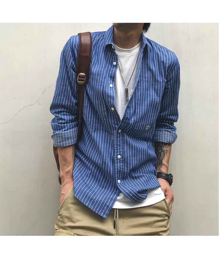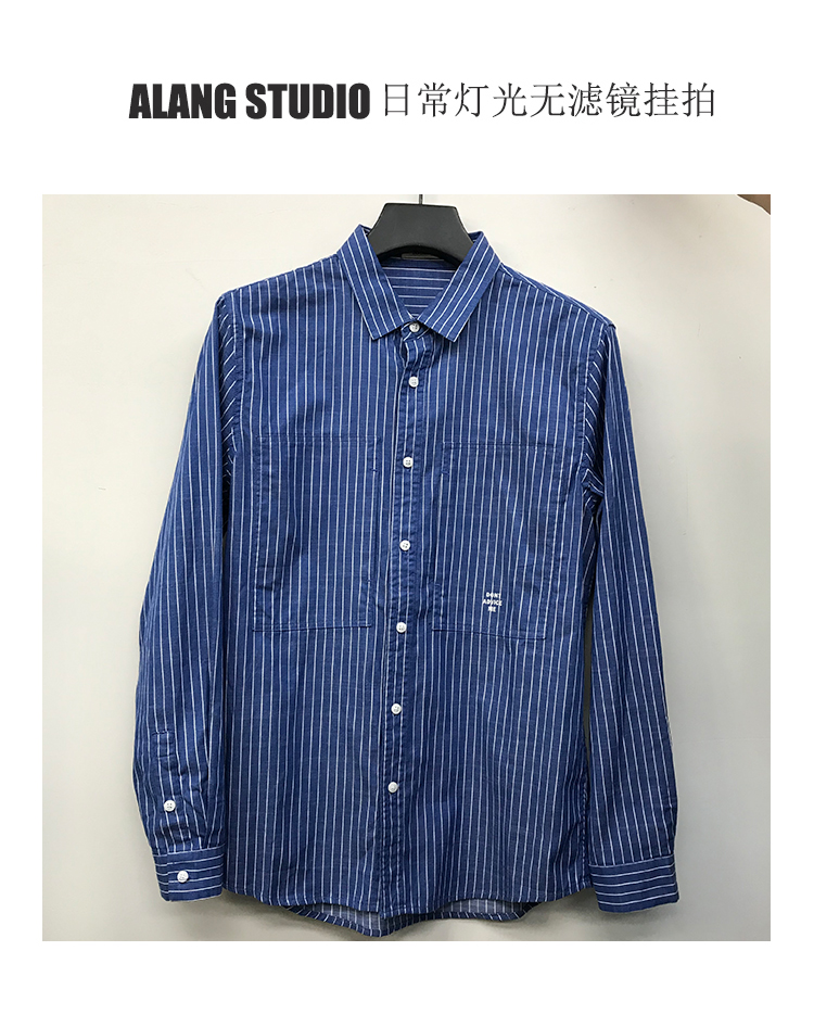 徐太浪韩版潮流帅气潮男长袖衬衫春秋潮牌条纹休闲男装白衬衣外套