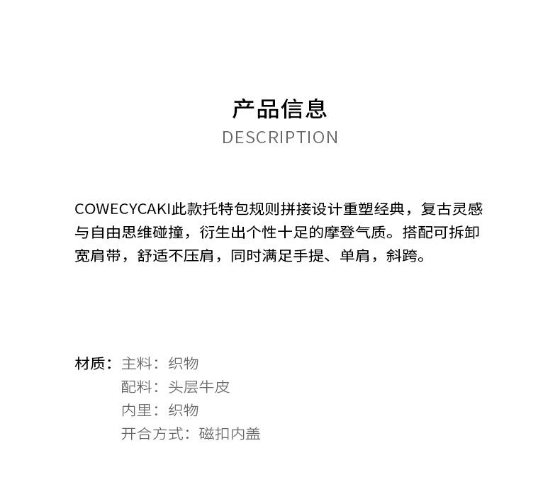 Cowec Ycaki 【赠渔夫帽】时尚百搭经典拼色手提托特包