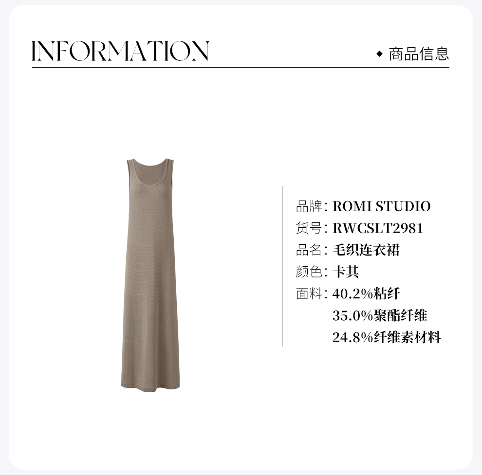 ROMI STUDIO环保和纸纱宽松剪裁 U领无袖针织连衣裙RWCSLT2981