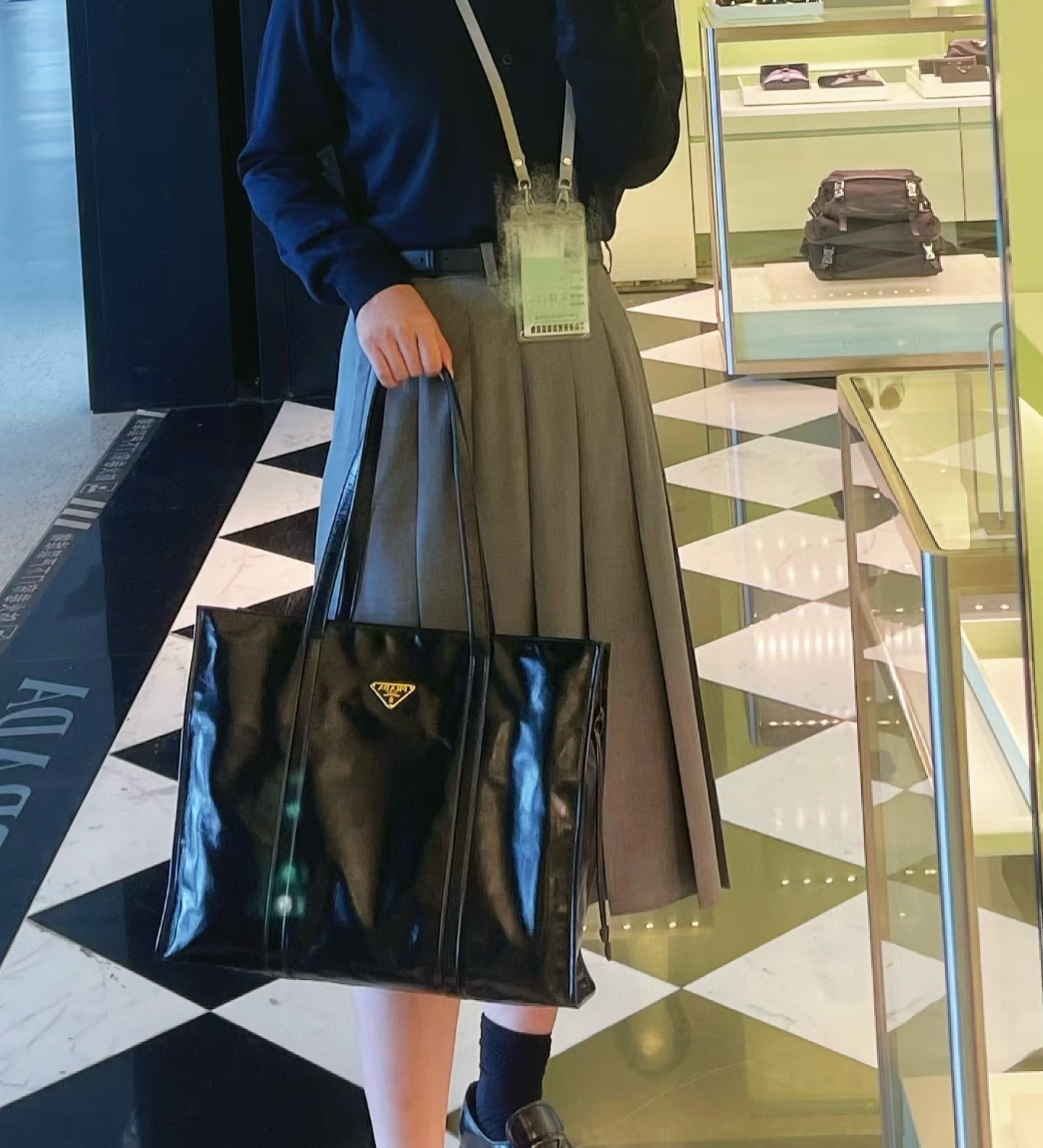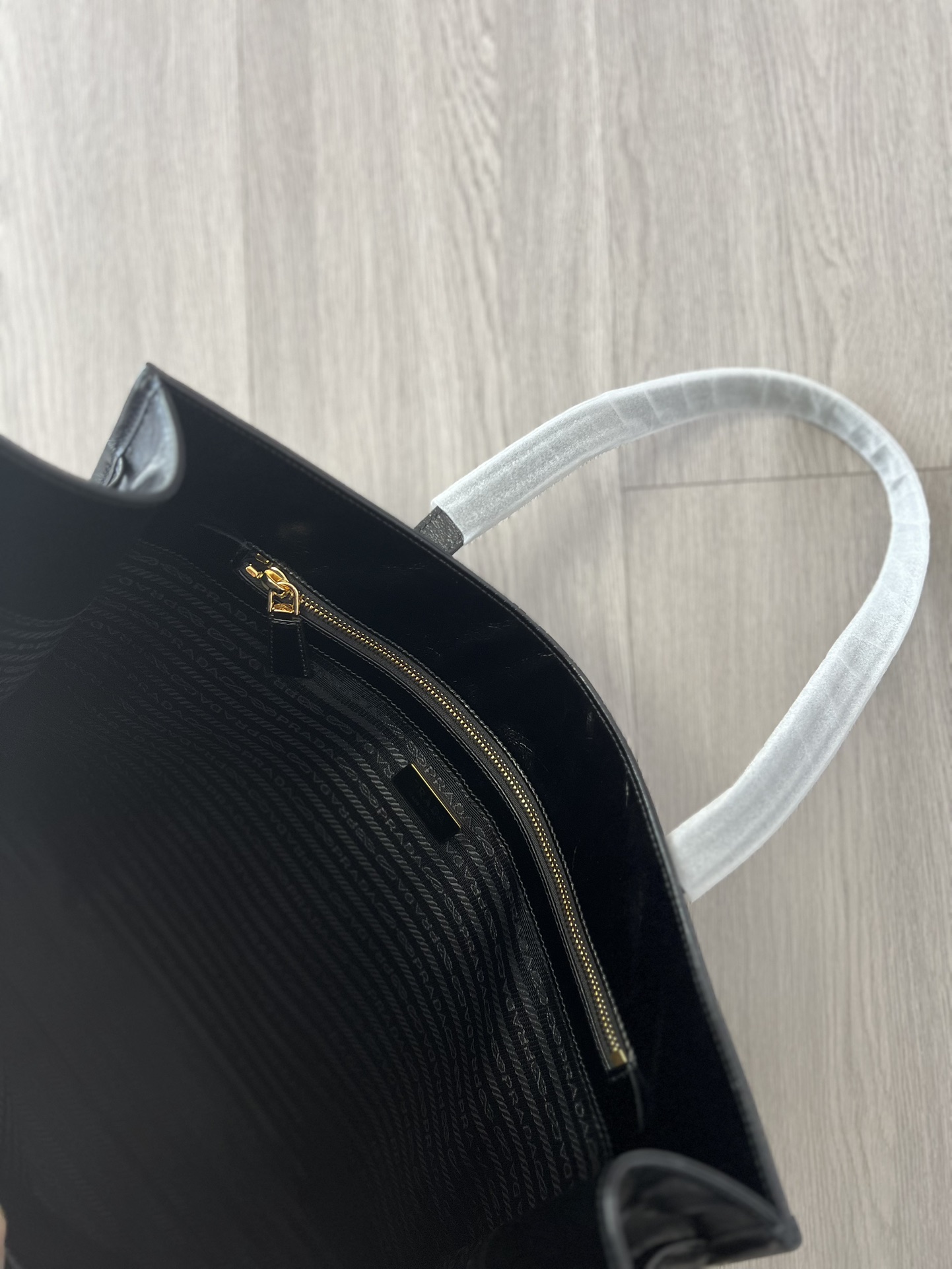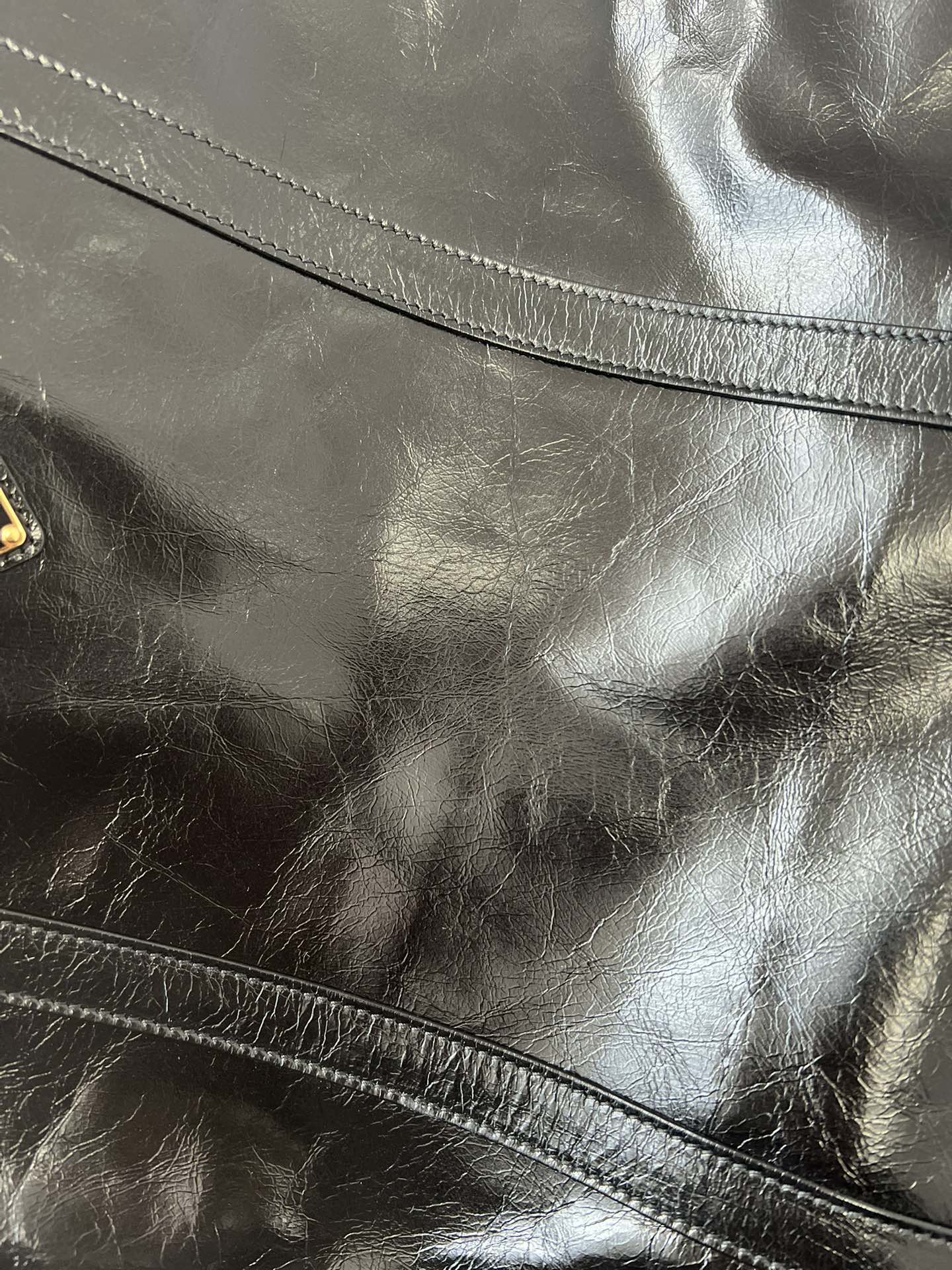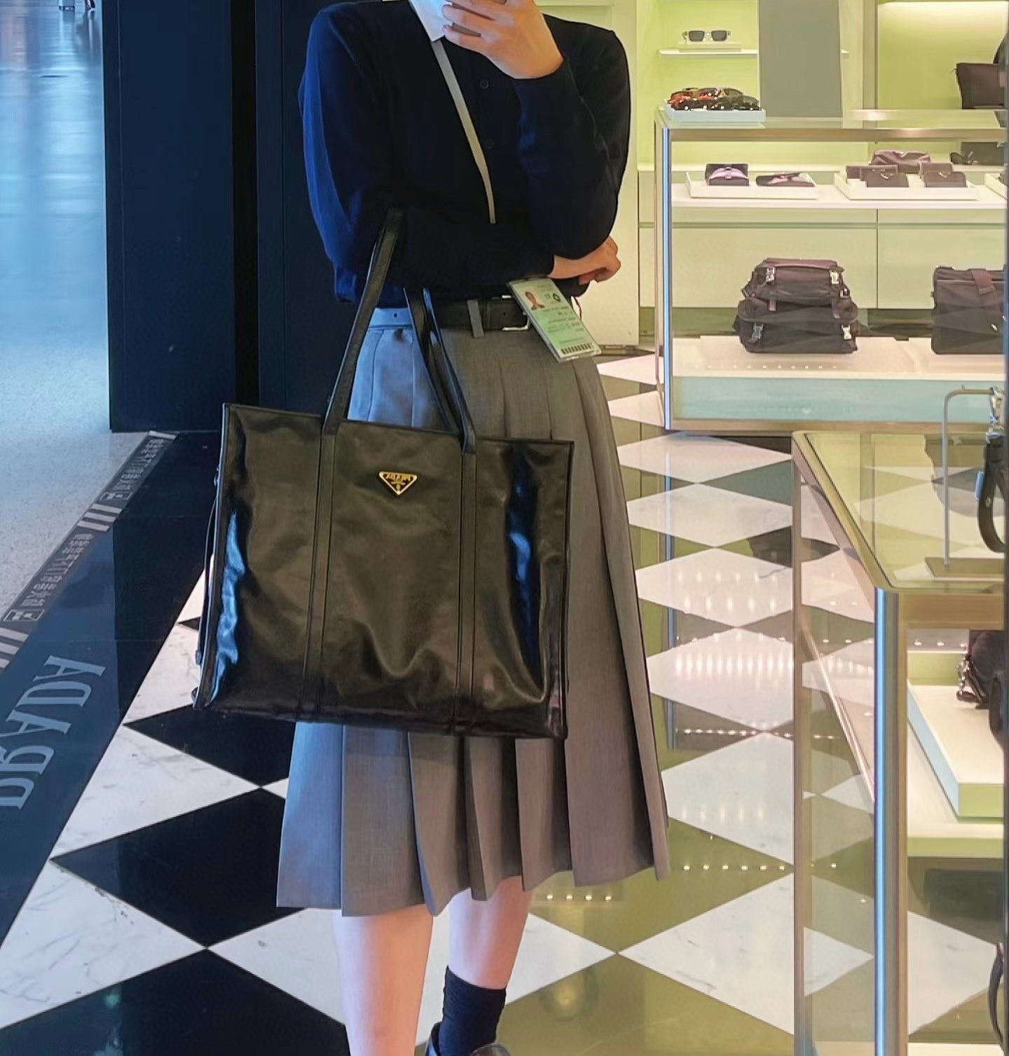 这独特的牛油蜡皮材质真的绝绝子!质感超棒,纹理细腻且富有光泽,摸起来柔软又不失韧性,打工人的通勤包就是要能随意蹂躏呀,这款托特包没有太多的设计,反而越简单越高级,越有Prada的调性无论是时尚出街的必备单品,如手机、钱包、化妆品,还是工作所需的文件、笔记本电脑 都ok