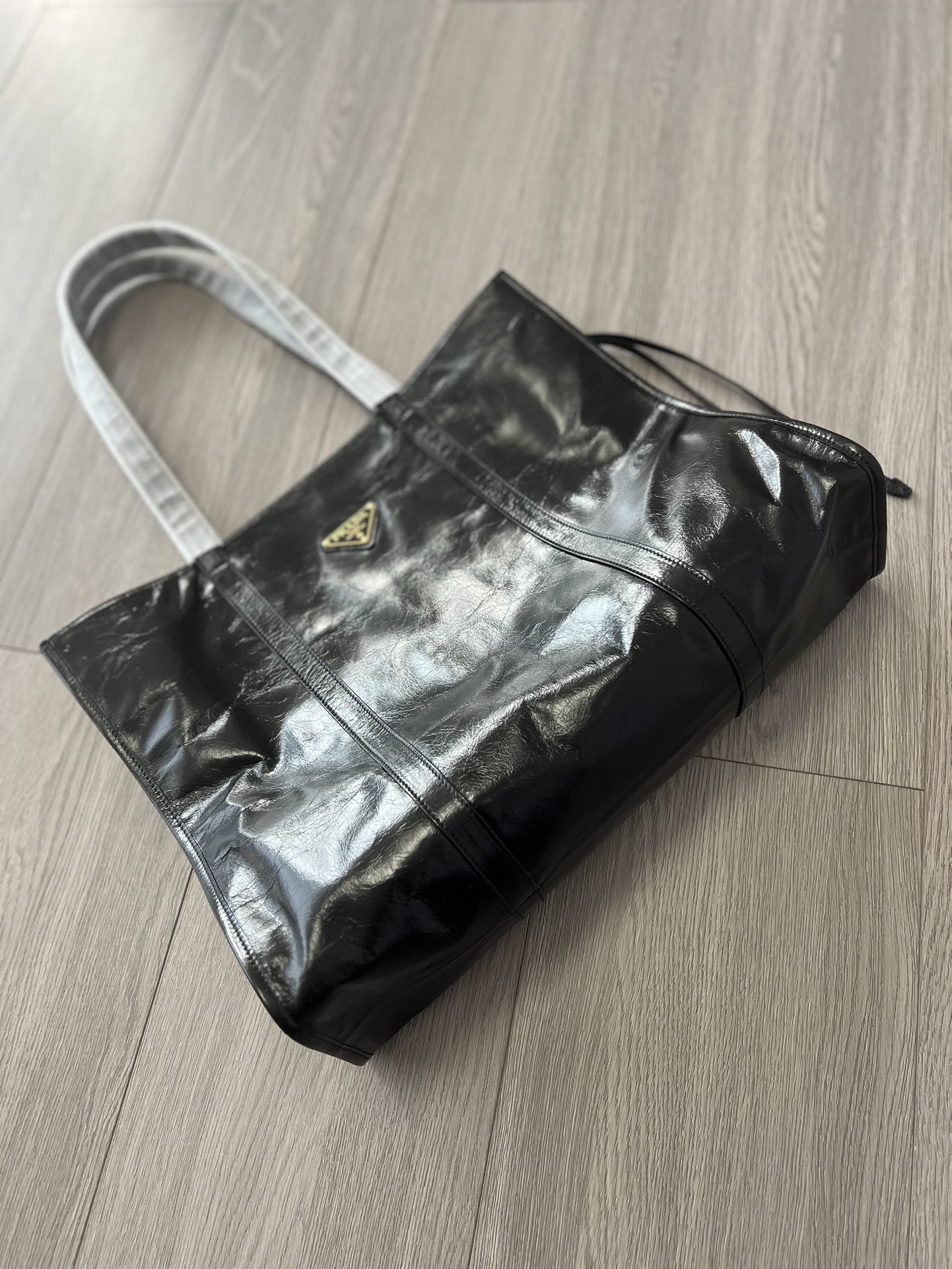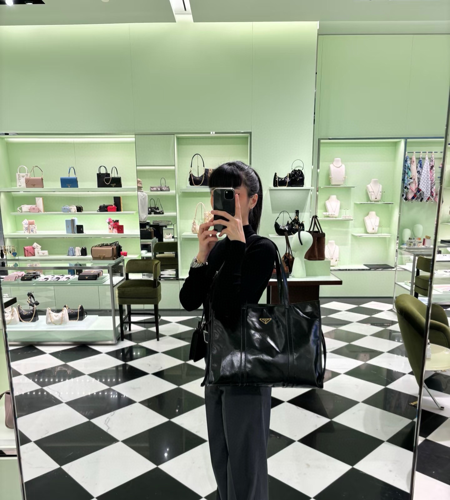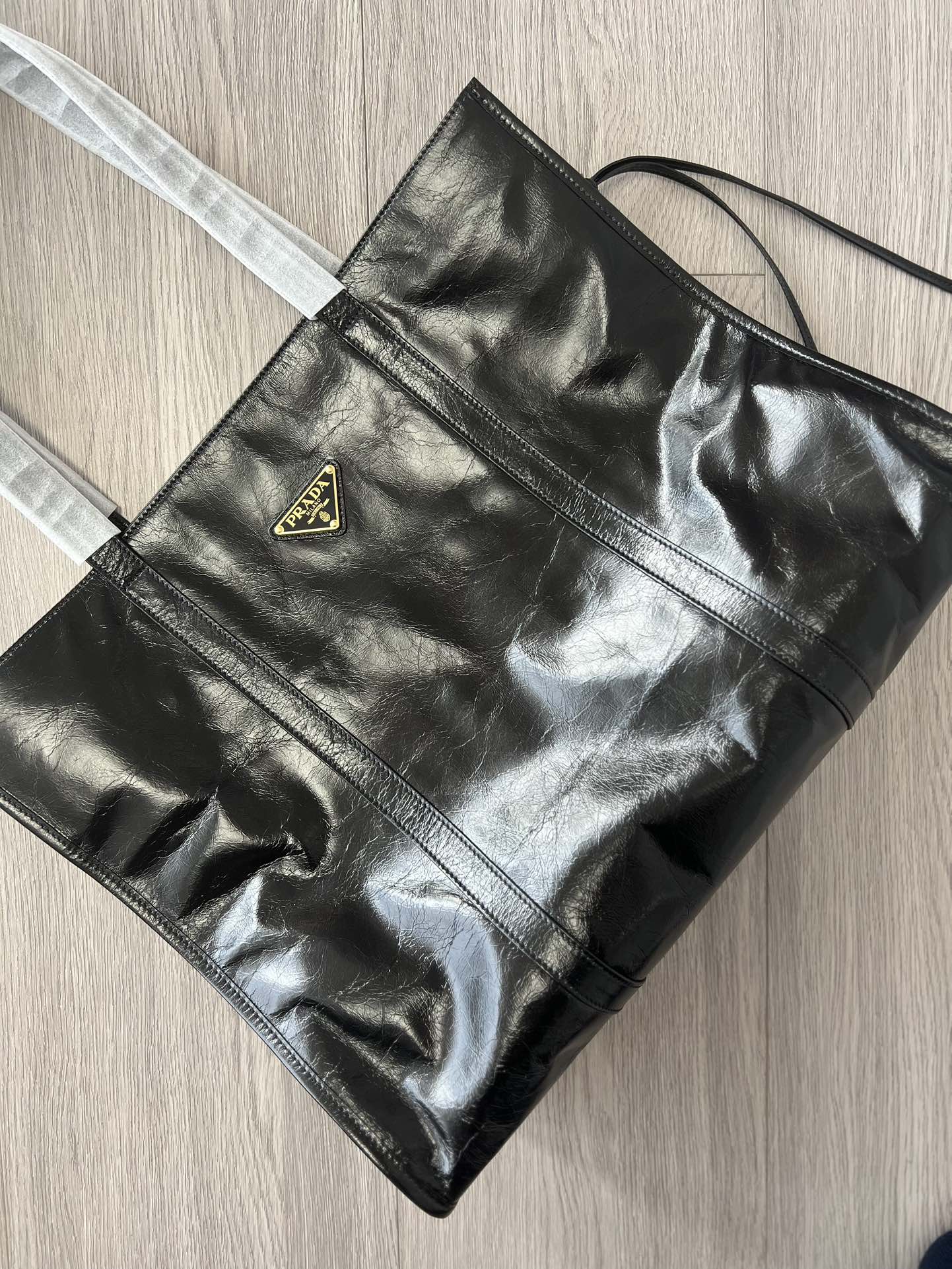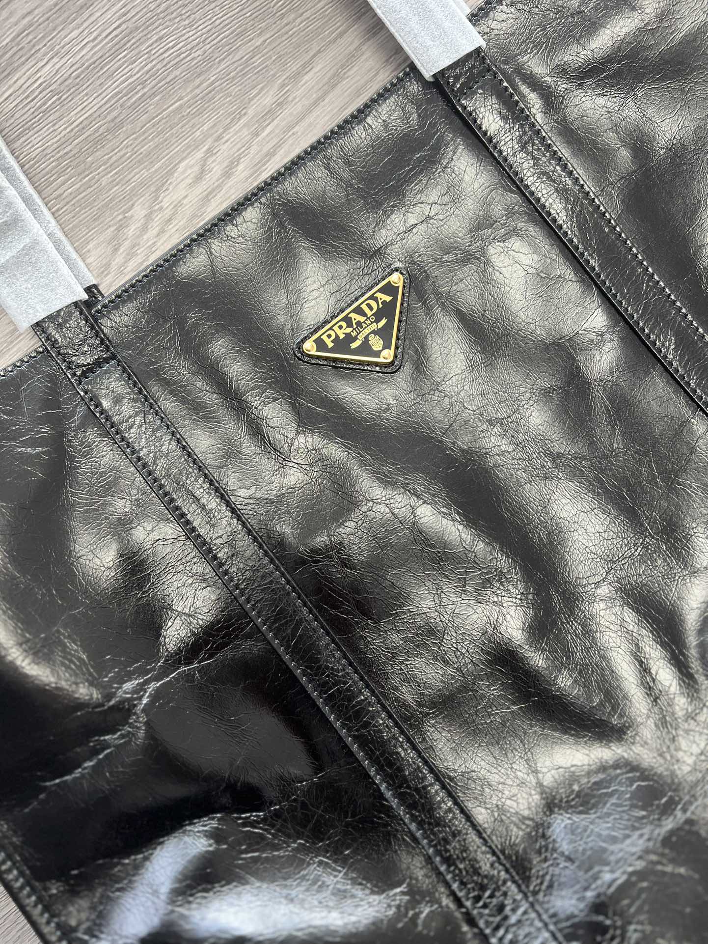 这独特的牛油蜡皮材质真的绝绝子!质感超棒,纹理细腻且富有光泽,摸起来柔软又不失韧性,打工人的通勤包就是要能随意蹂躏呀,这款托特包没有太多的设计,反而越简单越高级,越有Prada的调性无论是时尚出街的必备单品,如手机、钱包、化妆品,还是工作所需的文件、笔记本电脑 都ok