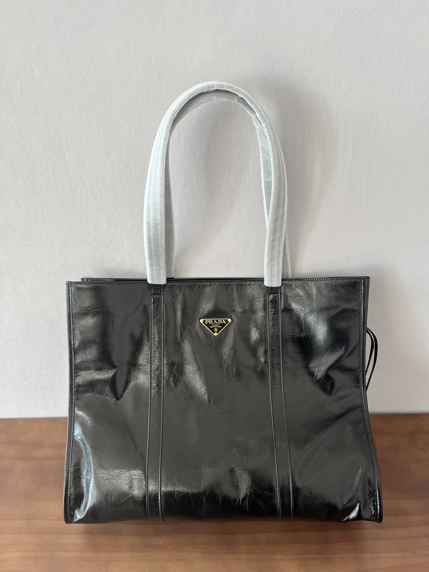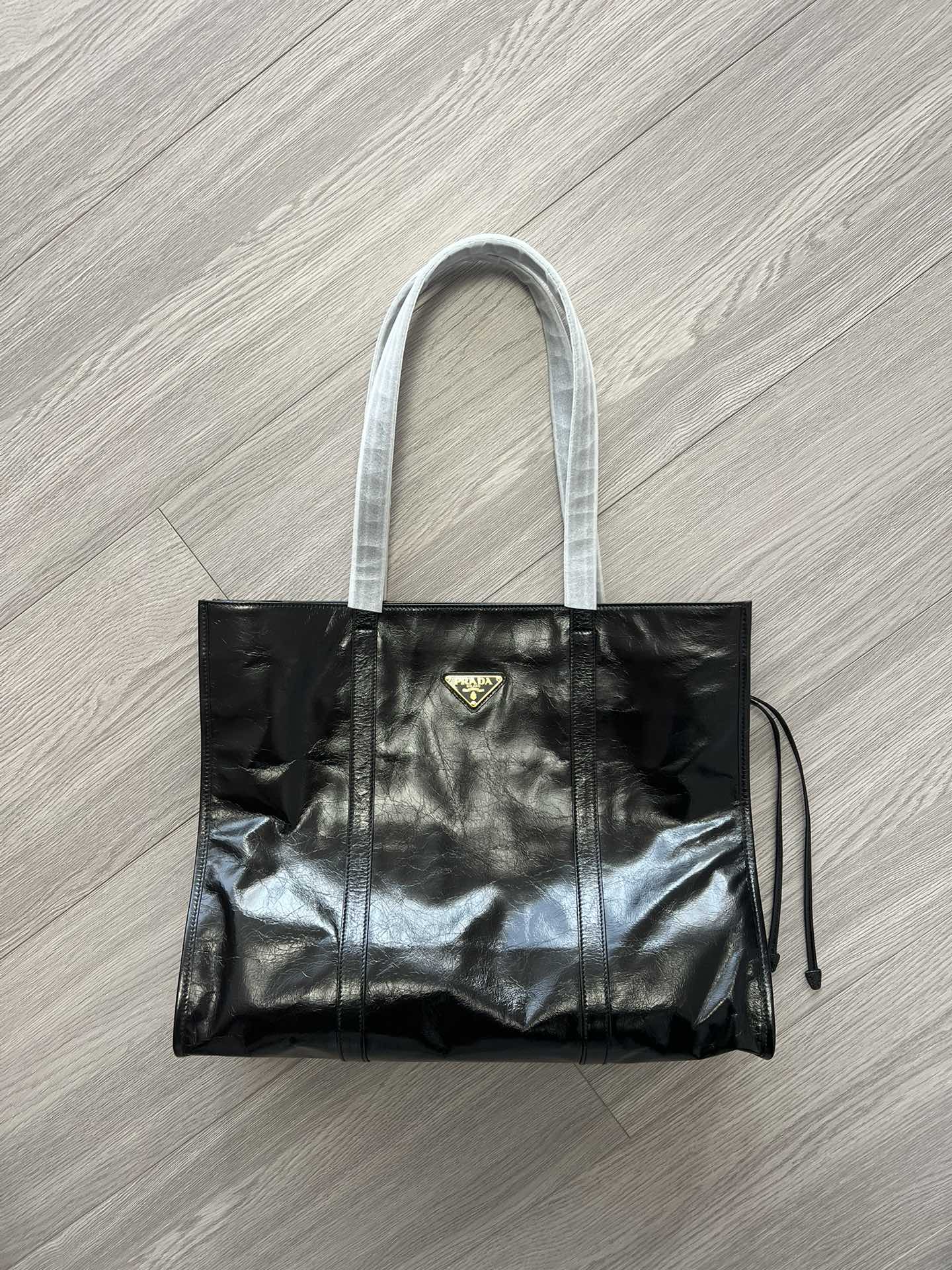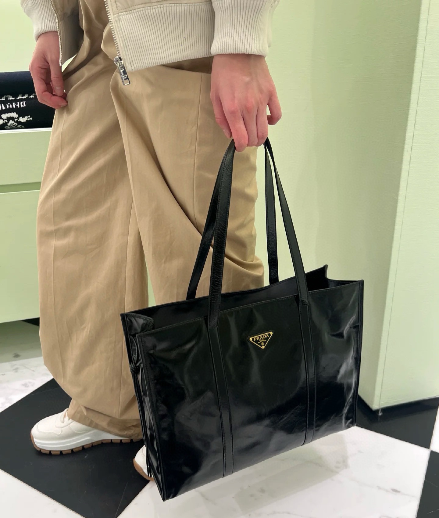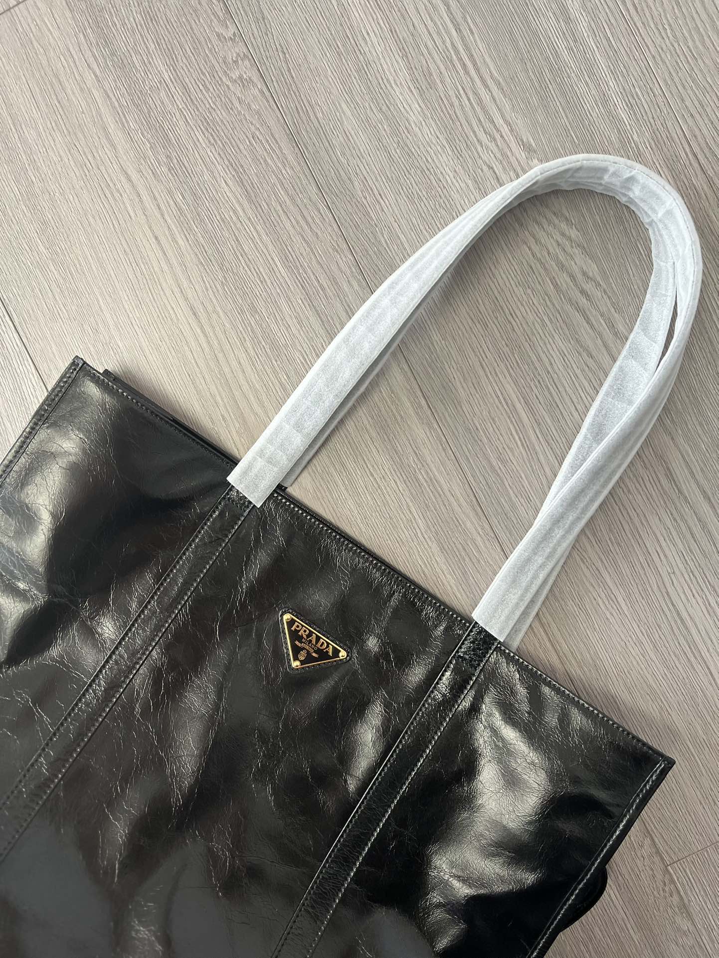 这独特的牛油蜡皮材质真的绝绝子!质感超棒,纹理细腻且富有光泽,摸起来柔软又不失韧性,打工人的通勤包就是要能随意蹂躏呀,这款托特包没有太多的设计,反而越简单越高级,越有Prada的调性无论是时尚出街的必备单品,如手机、钱包、化妆品,还是工作所需的文件、笔记本电脑 都ok