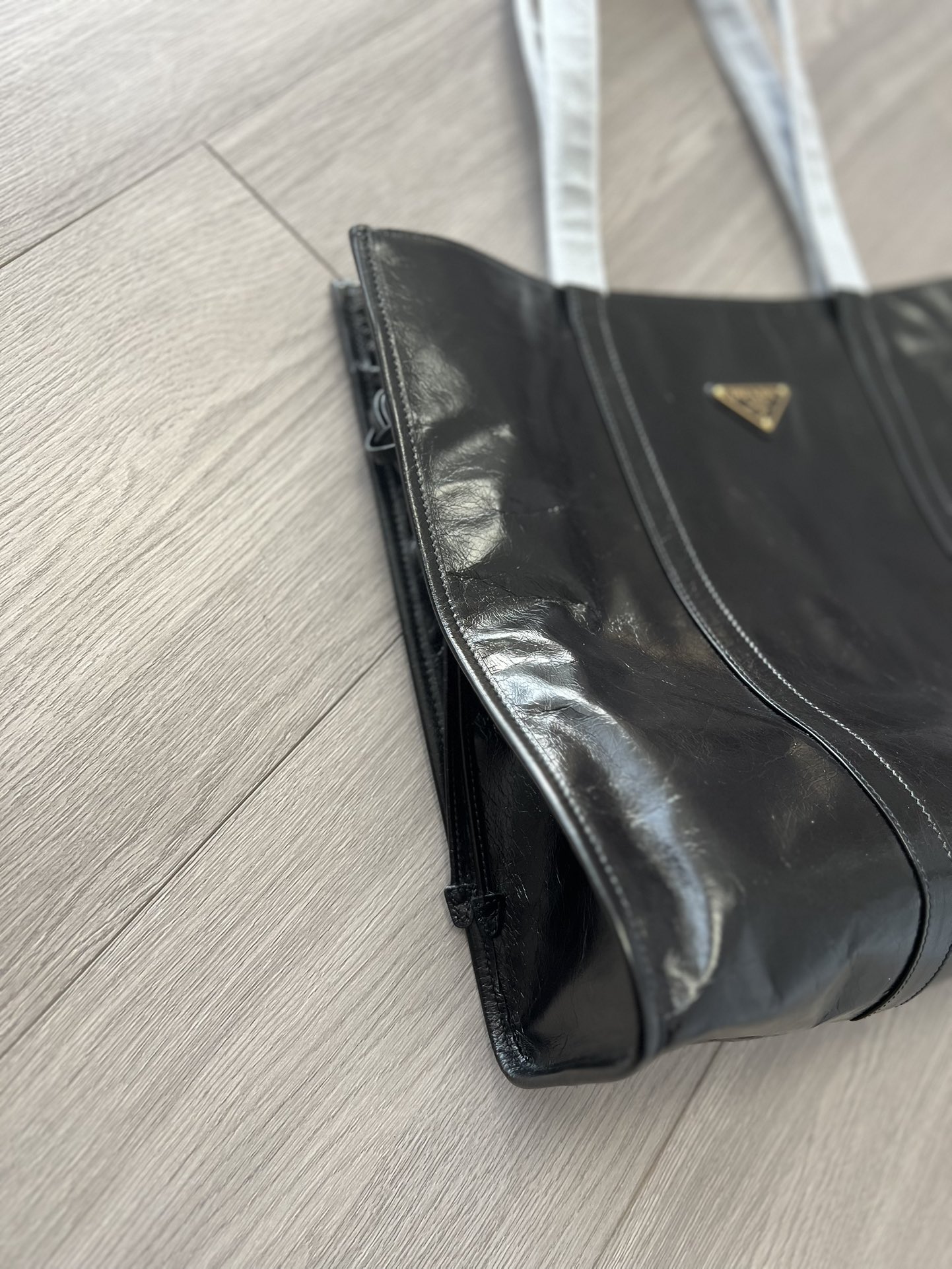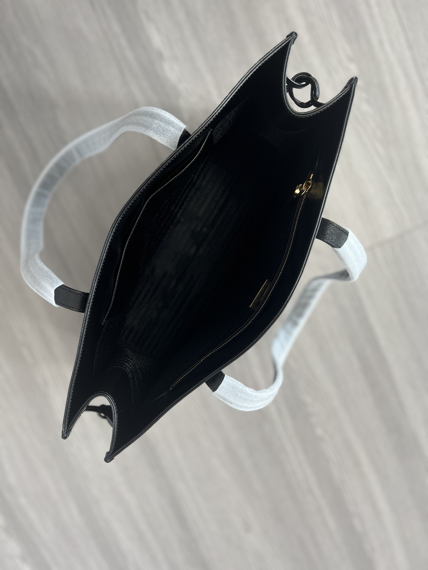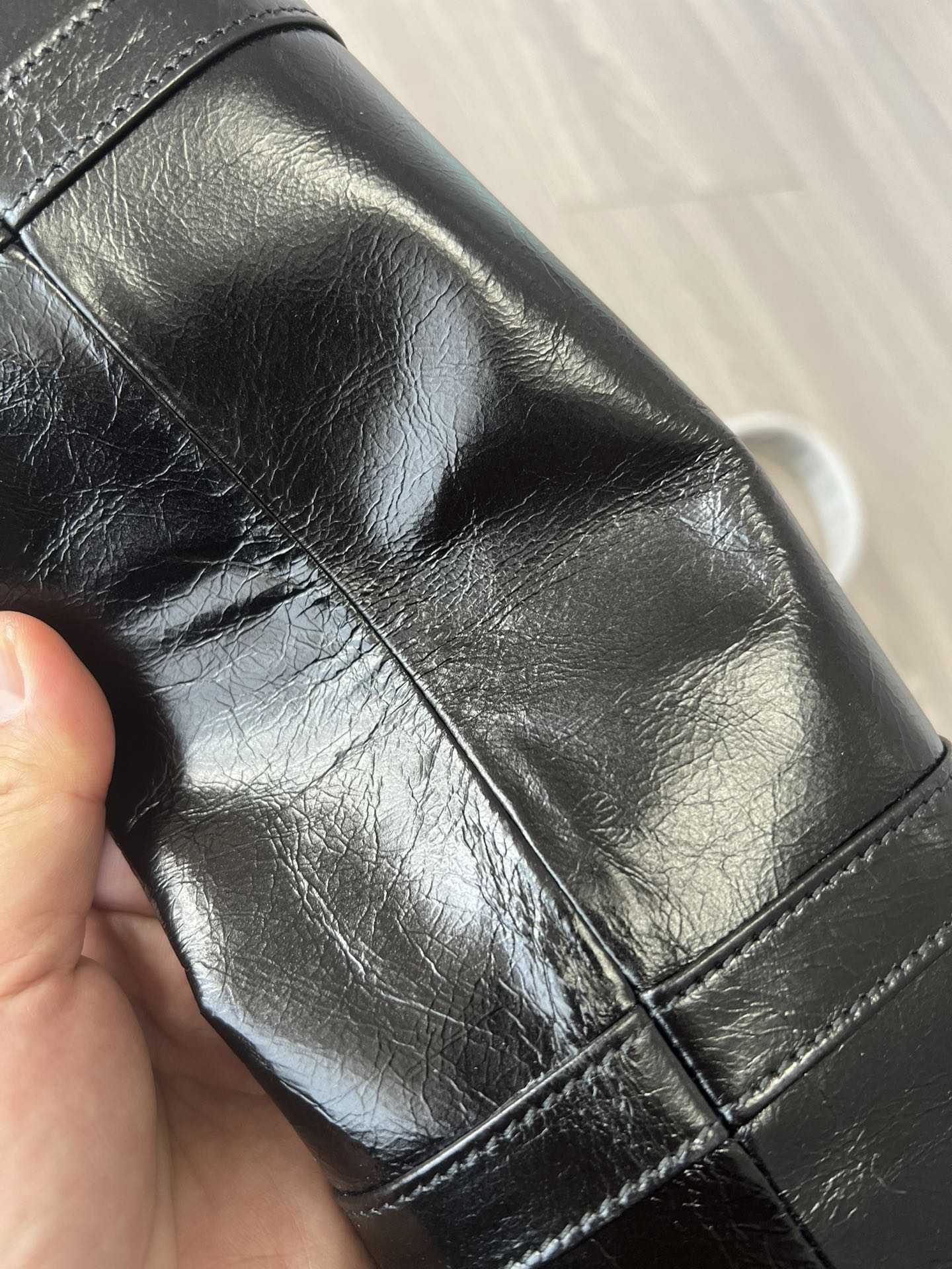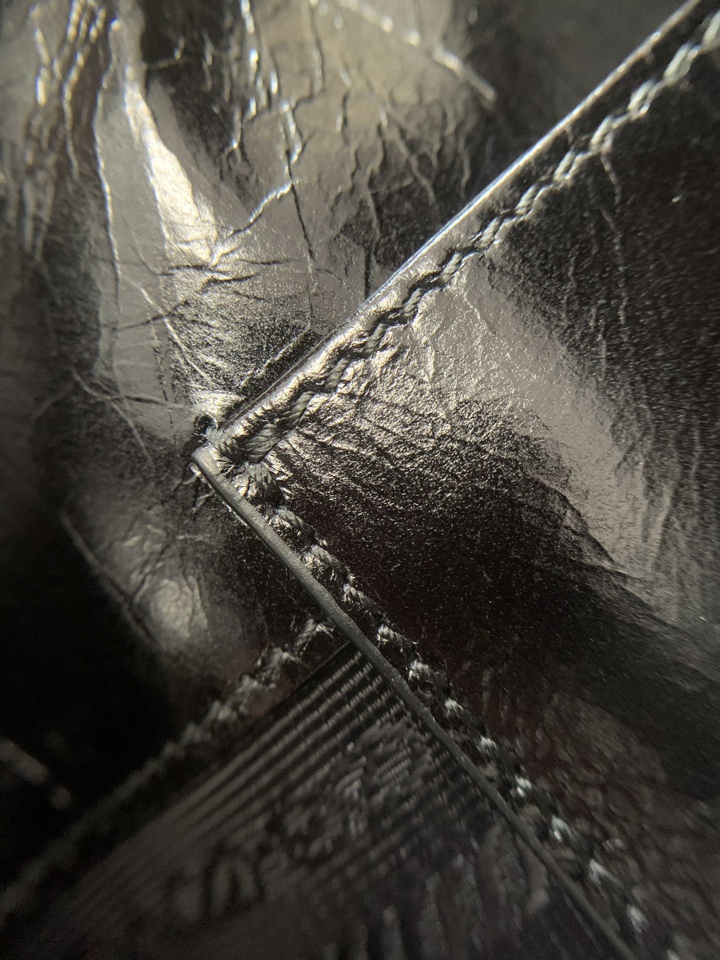 这独特的牛油蜡皮材质真的绝绝子!质感超棒,纹理细腻且富有光泽,摸起来柔软又不失韧性,打工人的通勤包就是要能随意蹂躏呀,这款托特包没有太多的设计,反而越简单越高级,越有Prada的调性无论是时尚出街的必备单品,如手机、钱包、化妆品,还是工作所需的文件、笔记本电脑 都ok