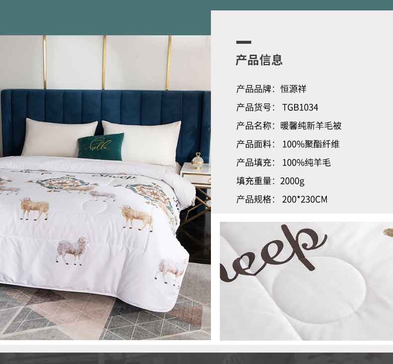 恒源祥(HYX) 恒源祥礼业TGB1034全涤纯羊毛被暖馨纯新羊毛被 暖馨 200*230