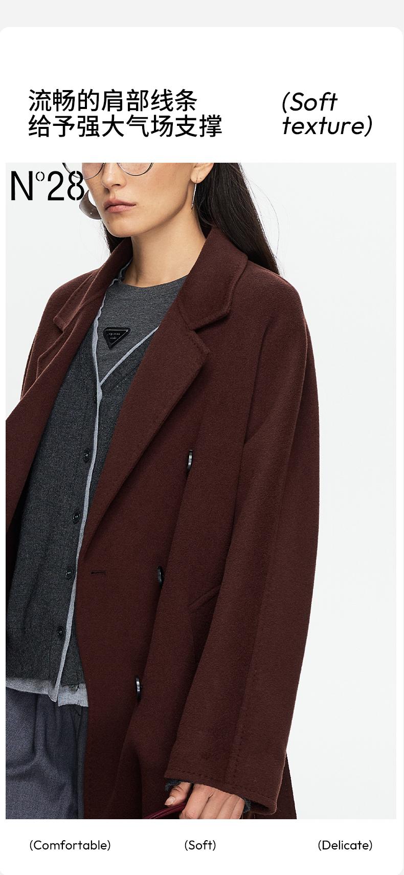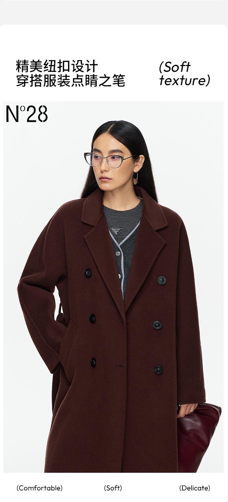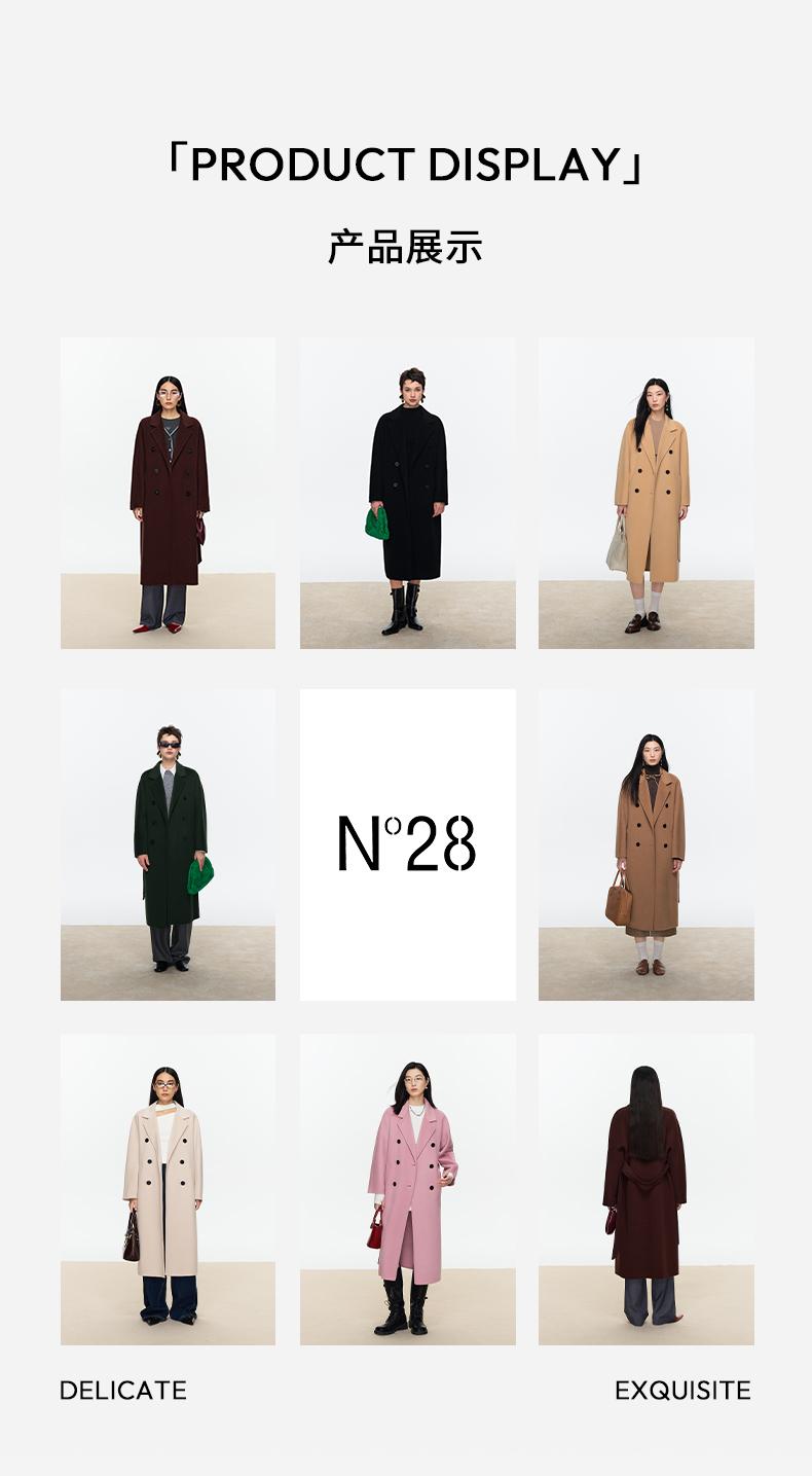 N°28 经典801大衣 秋冬系带显瘦长款毛呢外套 8352D801/8855A1D801-1