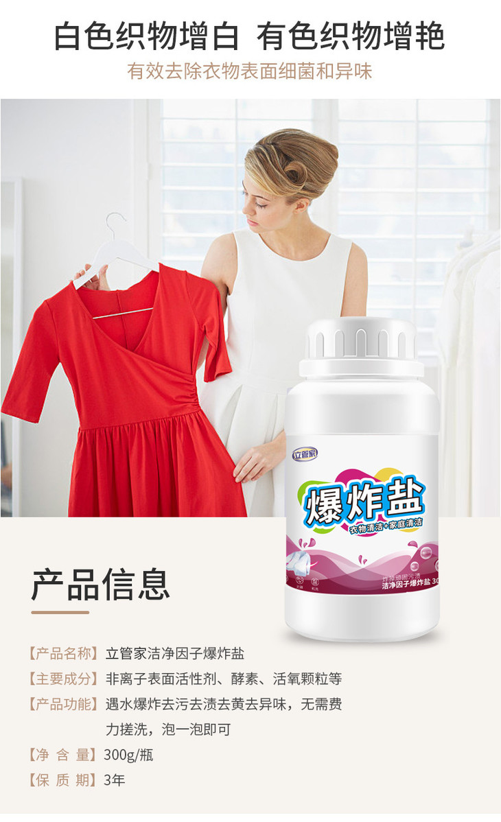 立管家 爆炸盐 300g 去污去渍去黄增白彩漂速洁 洗衣服奶渍 彩漂剂清洁工具